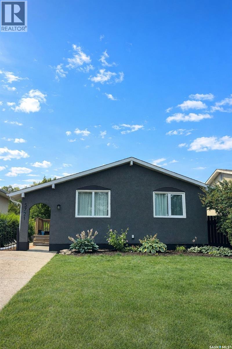 Welcome to 5721 2nd Avenue N, located in the quiet, family-friendly neighbourhood of Normanview. This home offers the perfect balance of peaceful living and convenient access to nearby amenities. From the moment you arrive, you will appreciate the recently updated exterior, featuring modern grey tones, architectural shingles, ample parking, and a large, well-maintained lawn. The south-facing backyard is generously sized and includes attractive rock gardens, seating areas, and rear alley access with potential for a future detached garage. Inside, the home has been fully updated and thoughtfully designed. The main floor features a spacious living room with a large picture window that fills the space with natural light, flowing seamlessly into the beautifully updated kitchen. The kitchen offers an impressive amount of cabinetry and counter space, along with a large pantry to keep everything organized. Down the hall, you will find a comfortable primary bedroom with large closets and a front-facing window. Two additional bedrooms on this level are ideal for family or guests. The main floor is completed by an updated bathroom with convenient built-in storage. The fully developed basement adds even more living space, featuring two legal bedrooms with egress windows and ample closet space. A generous recreation room provides the perfect setting for movie nights or a children’s play area. The laundry room includes built-in cabinetry and connects to the utility and storage area, offering excellent functionality and additional storage. This home has been carefully updated and efficiently laid out to maximize comfort, style, and everyday convenience. Value added items include: HE Furnace, central air, recently painted exterior, shed, architechtural shingles, fridge, stove, washer, dryer, fresh paint, PVC windows, and more! As per the Seller’s direction, all offers will be presented on 03/23/2026 7:00PM. (id:44393)
