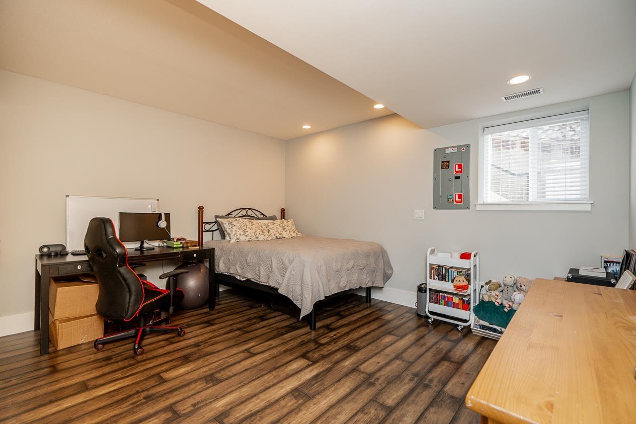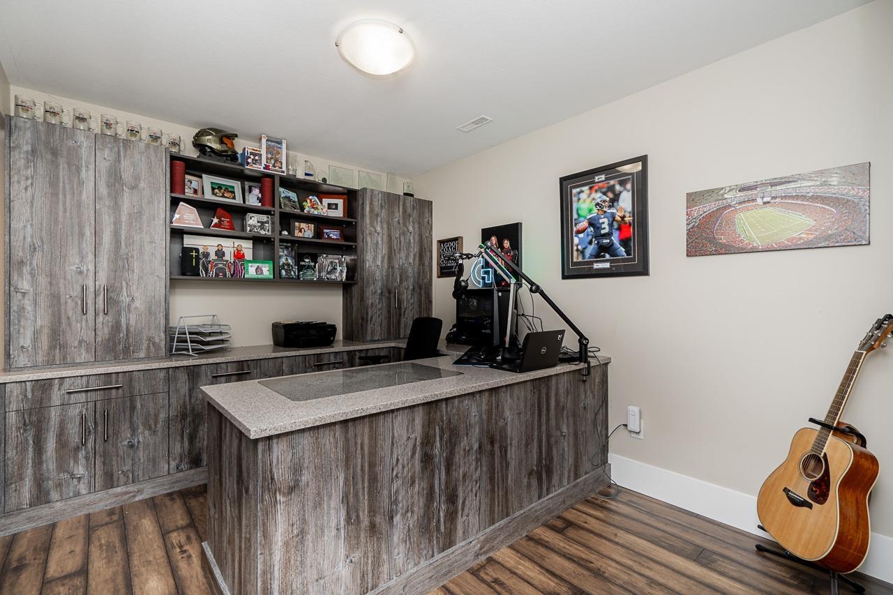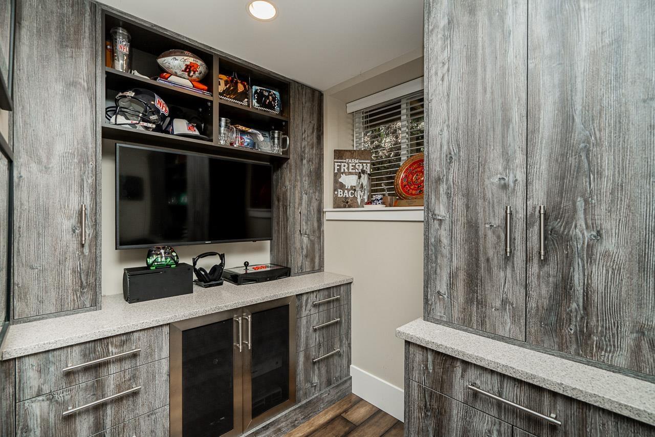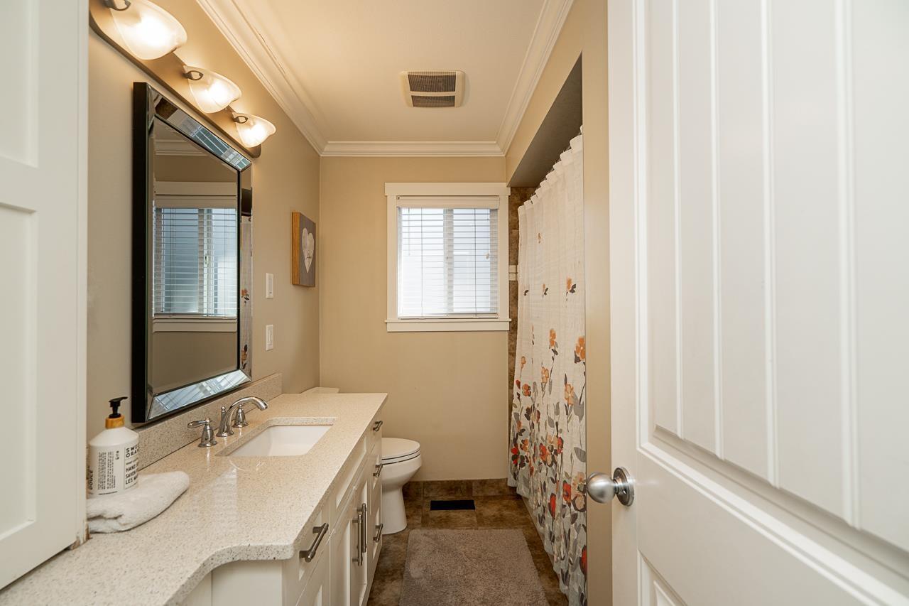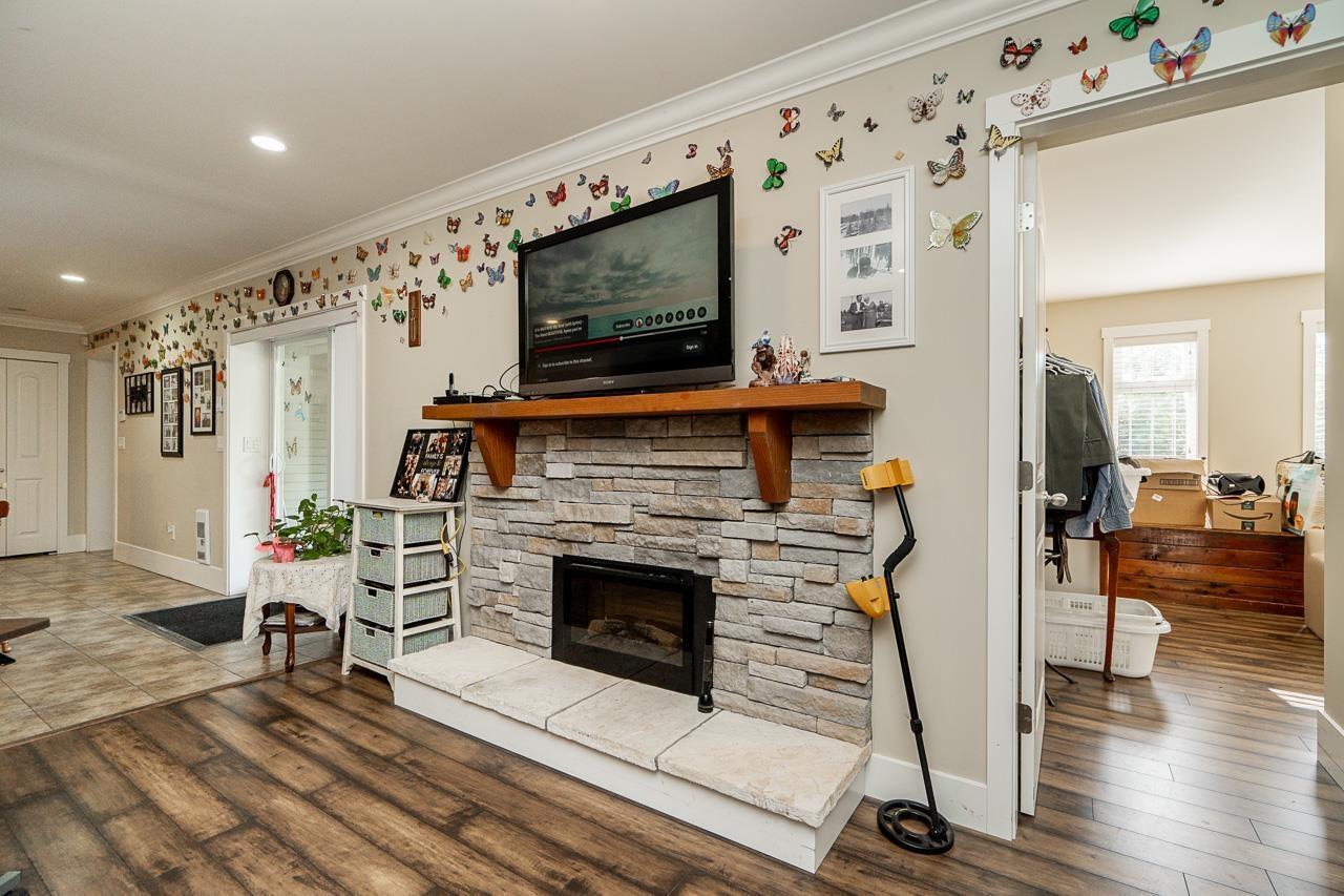 Perched on the Cloverdale Hilltop sits this beautiful rancher with walk out basement! 3500 sqft home offers spacious living with modern updates done in 2015! Large kitchen with eating area is open to your living room and dining room. French doors extend the living space out to your large partly covered deck with gas Fireplace, hot tub rough ins + Gas BBQ hookup. 3 bedrooms on the main floor including the master with full ensuite. BSMT features a 4th bedroom, rec room and office/BDRM with custom cabinetry all for upstairs use! Plus a 2 bedroom self contained legal suite with its own private patio! Backyard is private and level with hassle free artificial turf. AC, parking for up to 6, built in surround sound! All this on a large 7480 sqft lot! This home is a must view!! (id:44393)