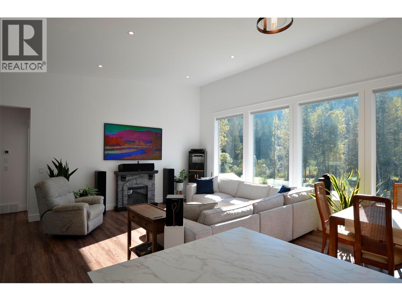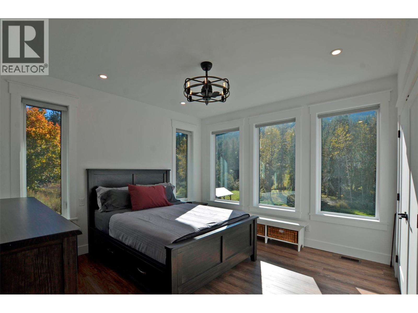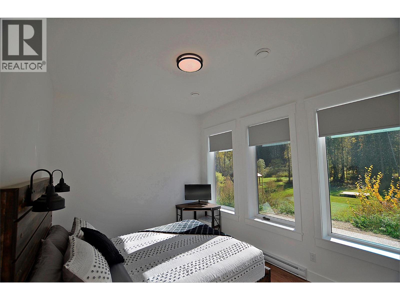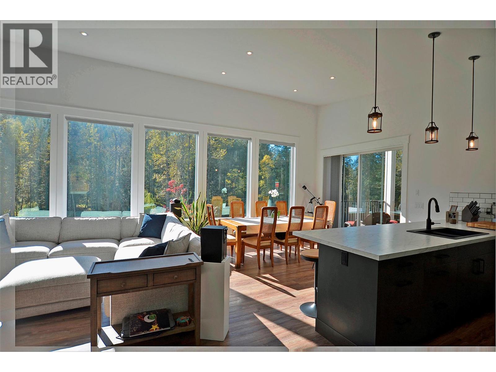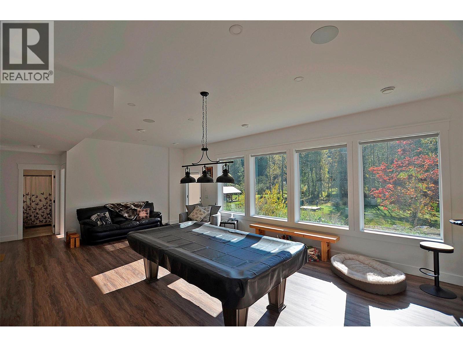 A breathtaking view can be yours in this stunning, fully-developed 4-bedroom home, completed in 2025. It blends rural lifestyle with convenient access to shopping, schools, and recreation such as sledding, skiing, and boating. Situated on a 7.39-acre parcel 1km from the Crazy Creek Hot Pools Resort, between Sicamous and Revelstoke, it's ideal for entertaining or tranquil treed walks to a sandy beach on the pristine Eagle River to enjoy fishing and swimming. The residence is designed with an open bright layout, high vaulted ceilings, noise-reducing windows, and a walk-out lower level. The kitchen and bathrooms are equipped with quality cabinetry, countertops, stylish light fixtures, and modern appliances. Kitchen highlights include a serving island, soft-close doors and deep drawers for functional storage. The living areas feature an electric fireplace and covered deck access. The finished lower level provides an expansive versatile space, two more bedrooms, laundry, utility, and patio-yard access. The home features blackout blinds, ceiling fans, heat pump AC, and is hot tub-ready with two electrical services. An adjacent residential building currently functions as a large studio/suite with a hot tub. Outside buildings include a garden shed, equipment shed, gazebo, woodshop, and RV pad with full hookups. With its accessible location, stunning views, garden and socializing areas, this setting can become your private oasis! (id:44393)