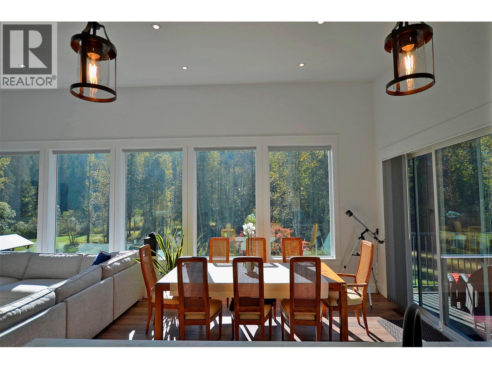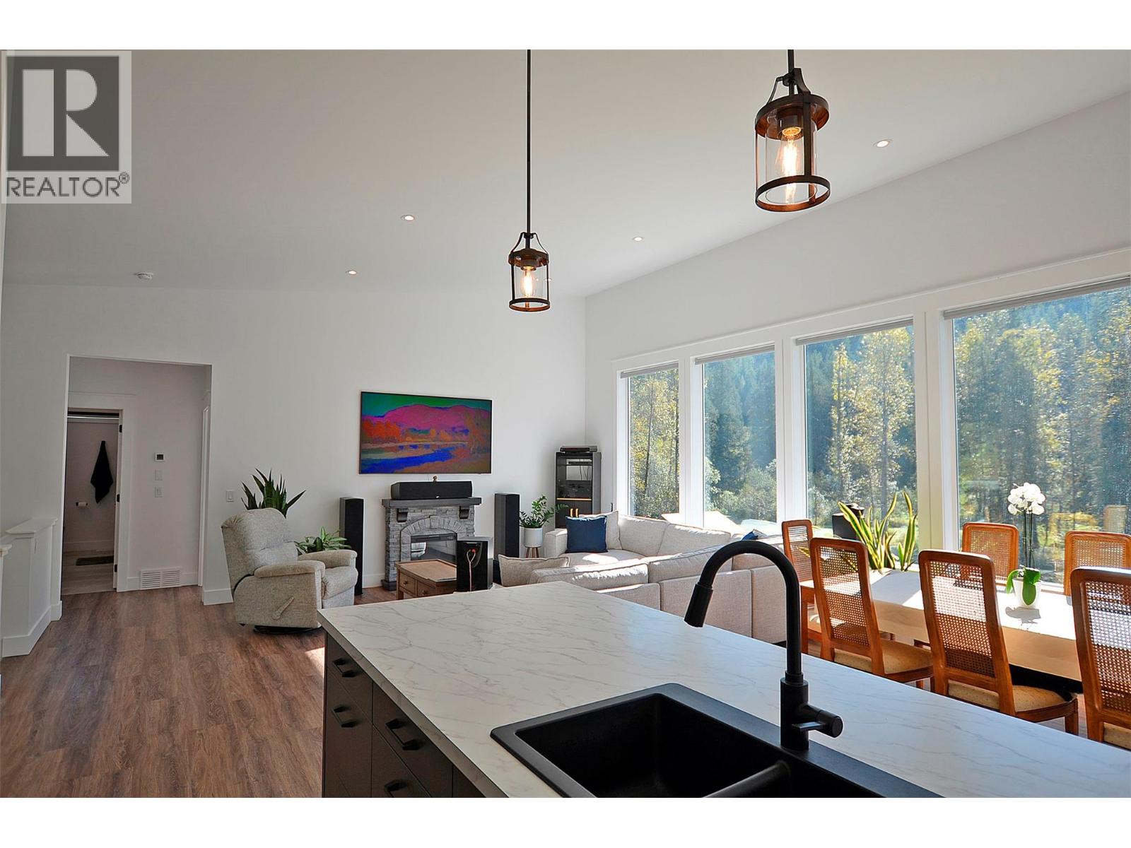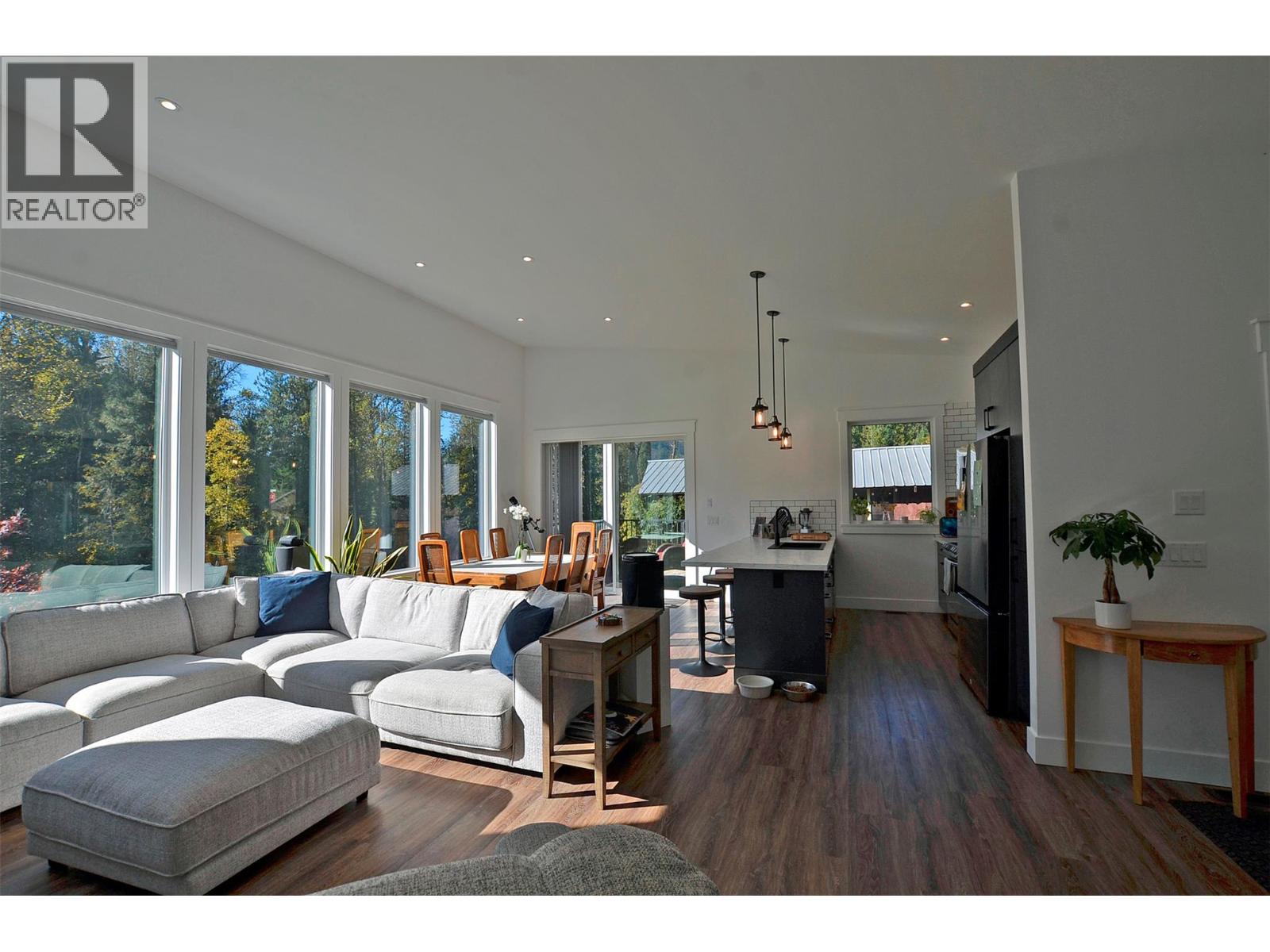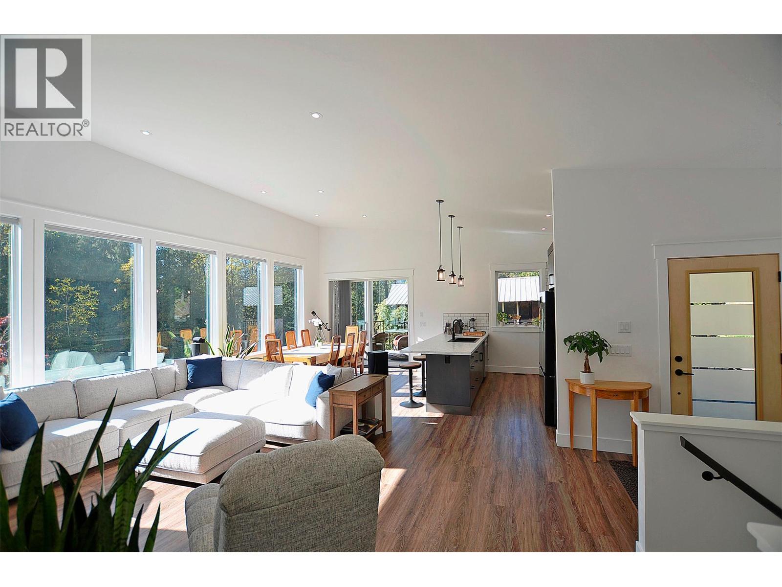 A breathtaking view can be yours in this stunning, fully-developed 4-bedroom home, completed in 2025. It blends rural lifestyle with convenient access to shopping, schools, and recreation such as sledding, skiing, and boating. Situated on a 7.39-acre parcel 1km from the Crazy Creek Hot Pools Resort, between Sicamous and Revelstoke, it's ideal for entertaining or tranquil treed walks to a sandy beach on the pristine Eagle River to enjoy fishing and swimming. The residence is designed with an open bright layout, high vaulted ceilings, noise-reducing windows, and a walk-out lower level. The kitchen and bathrooms are equipped with quality cabinetry, countertops, stylish light fixtures, and modern appliances. Kitchen highlights include a serving island, soft-close doors and deep drawers for functional storage. The living areas feature an electric fireplace and covered deck access. The finished lower level provides an expansive versatile space, two more bedrooms, laundry, utility, and patio-yard access. The home features blackout blinds, ceiling fans, heat pump AC, and is hot tub-ready with two electrical services. An adjacent residential building currently functions as a large studio/suite with a hot tub. Outside buildings include a garden shed, equipment shed, gazebo, woodshop, and RV pad with full hookups. With its accessible location, stunning views, garden and socializing areas, this setting can become your private oasis! (id:44393)