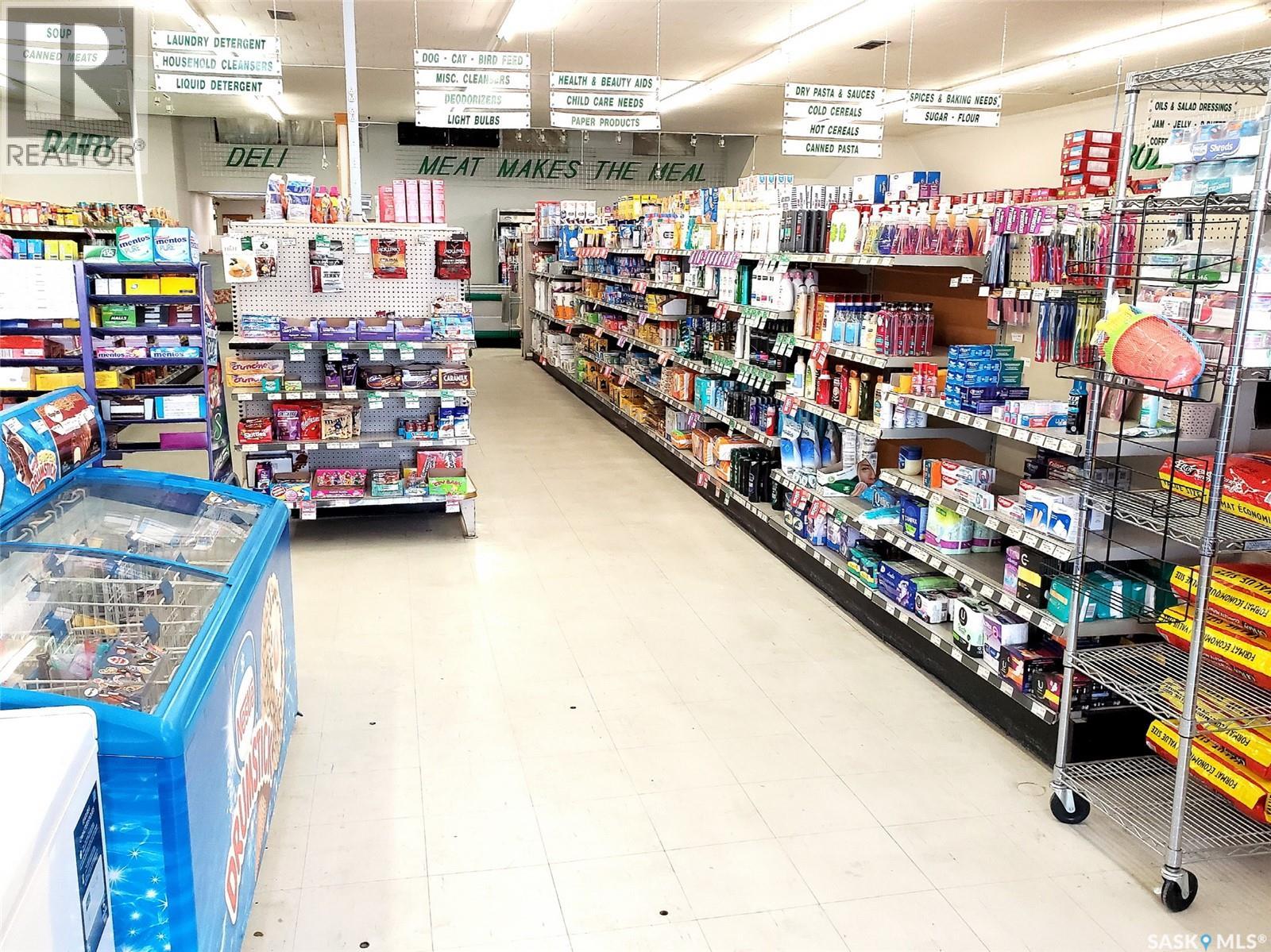 A well established, family-owned profitable grocery store situated on main street of Redvers, SK. This purpose-built store not only offers a wide range of grocery products and some hardware essentials but also features residential quarters, making it a unique and enticing investment prospect. Conveniently located in Redvers, a charming town in southeast Saskatchewan, this grocery store enjoys a prime position at the junction of highways 13 and 8. The town's strategic location makes it easily accessible, with Moose Mountain Provincial Park just 60km to the northwest, the Manitoba border a short 19km eastward, and the USA border a mere 50km southward. Redvers is renowned for its excellent amenities, including a medical clinic, health center, various medical services, a Pre-K-12 school, childcare center, and an array of family-friendly attractions. The town also boasts a diverse range of businesses, such as clothing stores, autobody shops, electrical and plumbing services, Pharmasave, fitness centers, and more. Over 10,000 sq. ft., building space completes with heated storage, a loading dock, and even a comfortable owner's living quarters occupying a well-finished 1,200 sq. ft. mezzanine. The residential area comprises 3 bedrooms, 1 bath, and an inviting open-concept kitchen and living room, ensuring the utmost convenience for the store owner. With its 4,000 sq. ft. open area and a soaring 17' high ceiling, the store is excellently stocked with essential groceries and a selection of hardware items. Additionally, the presence of a lift system at the loading zone enhances efficiency, making operations seamless and hassle-free. It is an accessible business to operate and has so much potential to expand; you need to walk through the space to understand the scope of this excellent business opportunity. (id:44393)