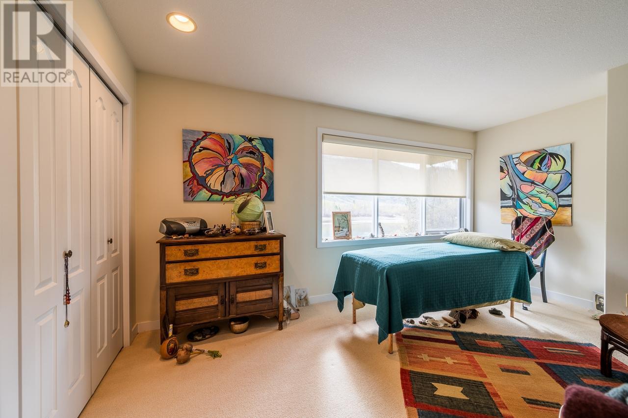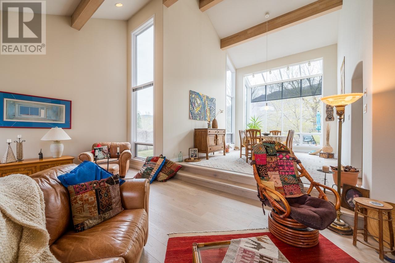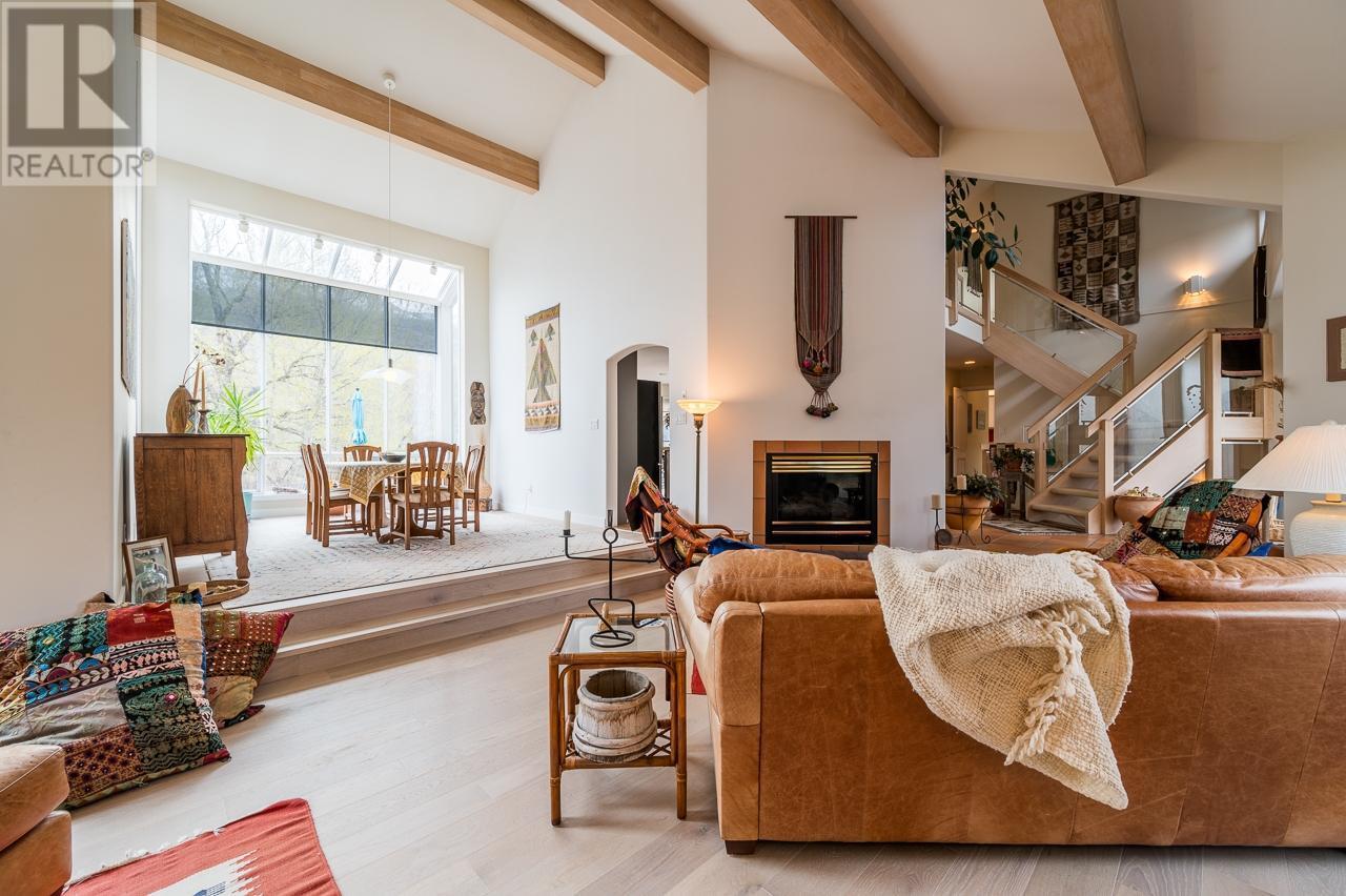 **Casa de Luz**—the “House of Light”—is a private half-acre riverside sanctuary that masterfully blends rural serenity with urban convenience. Offered for sale for the first time, this custom-built, artistically inspired home captures spectacular river views from nearly every room and embodies a seamless connection between nature, light, and thoughtful design. Set on a mindfully zero-scaped property, the home’s open architectural layout makes full use of natural light, intentional sightlines, and materials that create warmth and texture. A gracious entry leads to a spacious sunken living room finished in rich hardwood, flowing into an elegant dining room highlighted by a striking atrium-style wall of glass. Vaulted ceilings with exposed beams elevate the sense of openness. The rest of the main floor features Italian tile throughout, including meticulously tiled baseboards that unify an entertainer’s kitchen with a walk-in pantry, bright breakfast nook, family room, powder room, expansive laundry, and a full bathroom. All main living spaces embrace panoramic river views and spill out to a large deck, hot tub, and private river access—offering a true waterfront lifestyle. Upstairs, the light-filled layout continues with a spacious primary suite featuring a large ensuite, walk-in closet, and private river-view deck. Two more generous bedrooms, a full bathroom, and an open corridor landing maintain the home’s tranquil energy. A stunning three-story staircase of hand-hewn oak, glass partitions, and open risers connects all levels with bold, minimalist flair. The lower level includes a finished landing, an unfinished basement with endless possibilities, and access to a double garage. Extras include a full security system, nine-zone irrigation, steam humidifier, and a new high-efficiency furnace. A rare offering that must be experienced to be fully appreciated. (id:44393)
