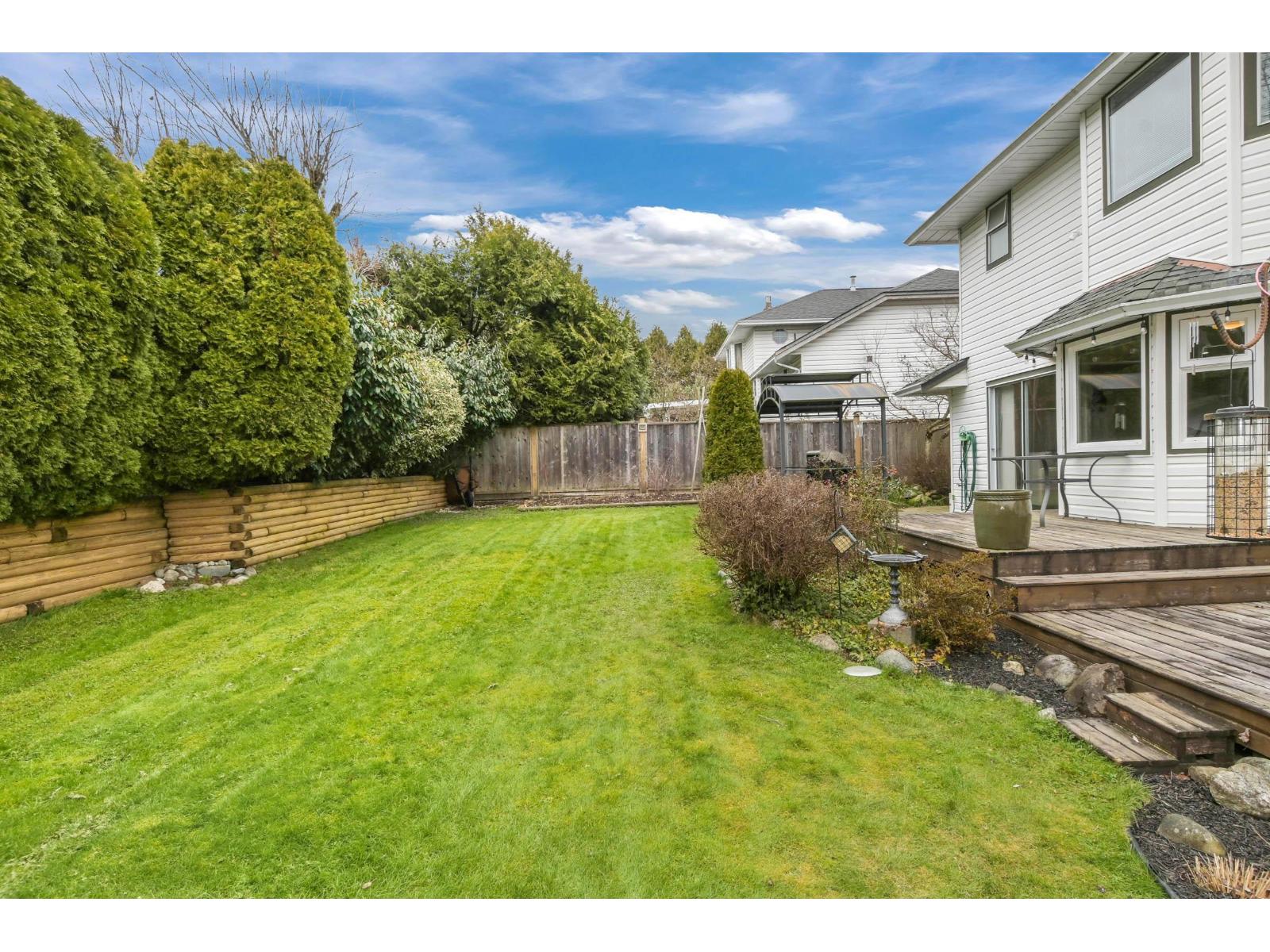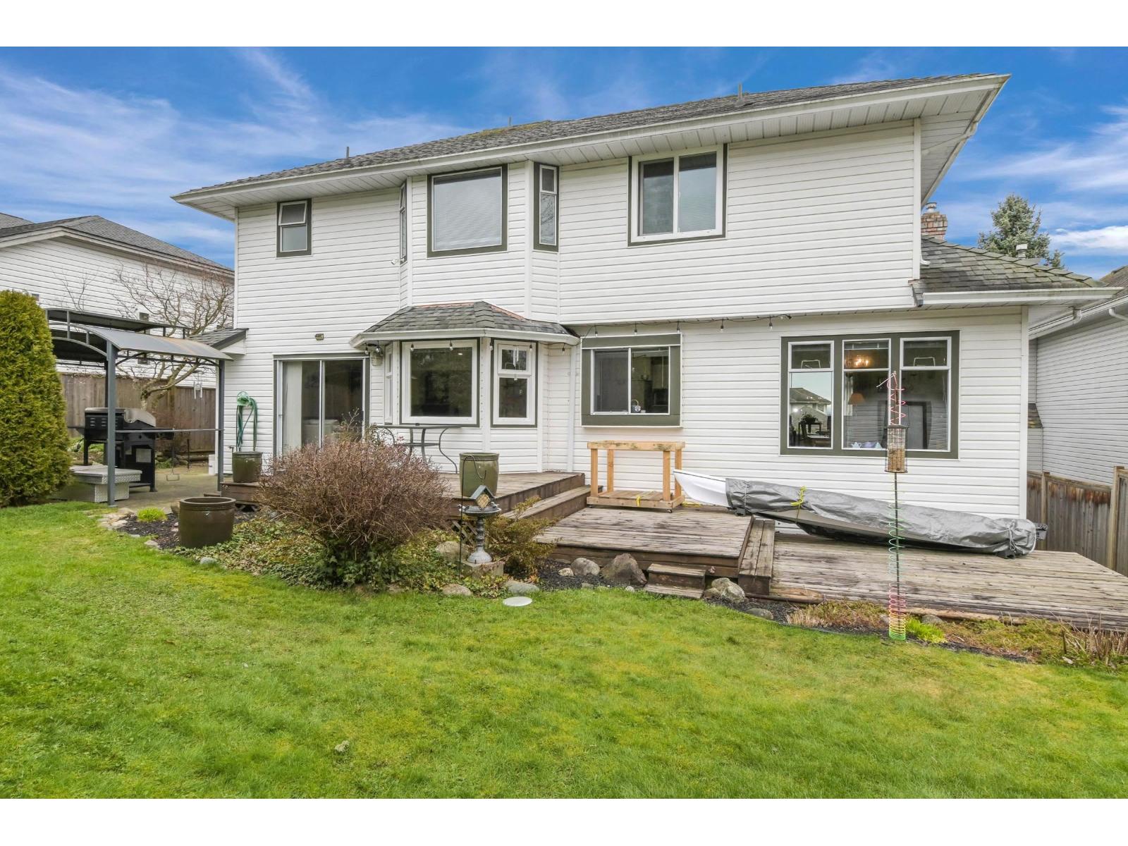 Elegant 2 storey home with grand entry & vaulted foyer adjacent to an elegant living room with vaulted ceilings & fireplace. Bright, formal dining room. European style kitchen with an island loaded with cupboards. Bright large bayed eating area connected to the large family room with gas fireplace & doors opening onto a large deck. Main floor den off the family room. Upstairs are three bedrooms with large master suite & updated ensuite. Fully fenced, west exposed yard & 2 patio areas & sundeck for wonderful B.C. outdoor entertaining. Great location with Mt. Baker views. Property at the end of a quiet cul-de-sac in an area of fine homes. 1 block from elementary school and walk to Willowbrook. Latimer Road Elementary and Clayton Heights Secondary school catchments. (id:44393)