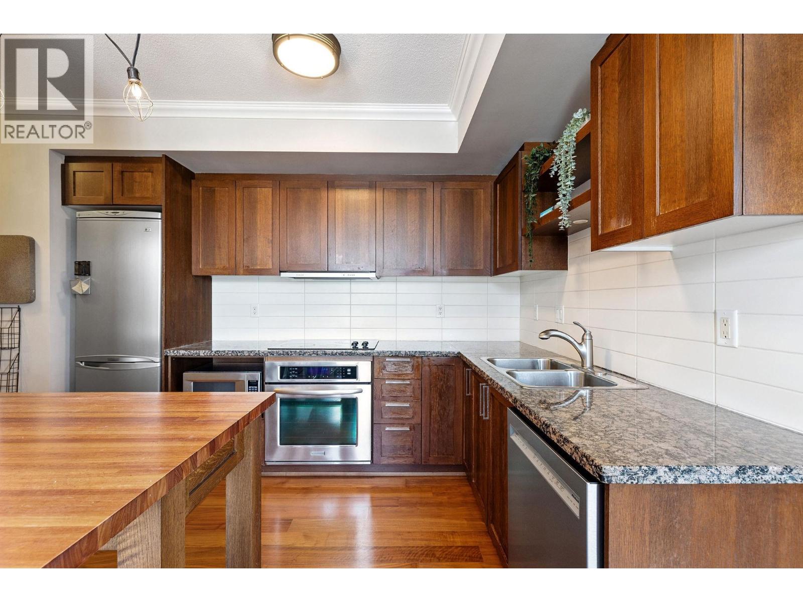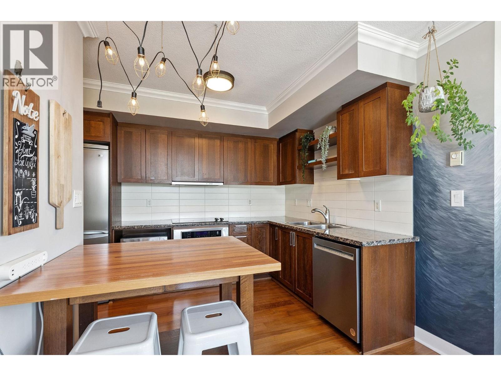 $539.42 MonthlyCome home to this bright 2 bedroom, 2 bathroom & den corner unit at The Vine - a solid concrete building in one of Vancouver´s most central & walkable locations. Enjoy panoramic views of the mountains & ocean from your couch or balcony. A spacious layout is finished with engineered hardwood flooring. A modern, open kitchen features granite countertops & stainless steel appliances. While the comfortable primary includes carpet, a walk-in closet & ensuite bathroom; set away from the living area, 2nd bedroom & flex for a good night's sleep. Find everything you need within this well-maintained, pet & rental-friendly building. Easy, direct elevator access to IGA & London Drugs, plus 1 secure parking spot in the garage below. Don't miss out on this unbeatable location in the heart of Kits with beautiful views from every window. Look out onto the fireworks, snow capped mountains, Jericho & UBC + the Broadway Skytrain line a block & a half away (expected to arrive in 2027). (id:44393)