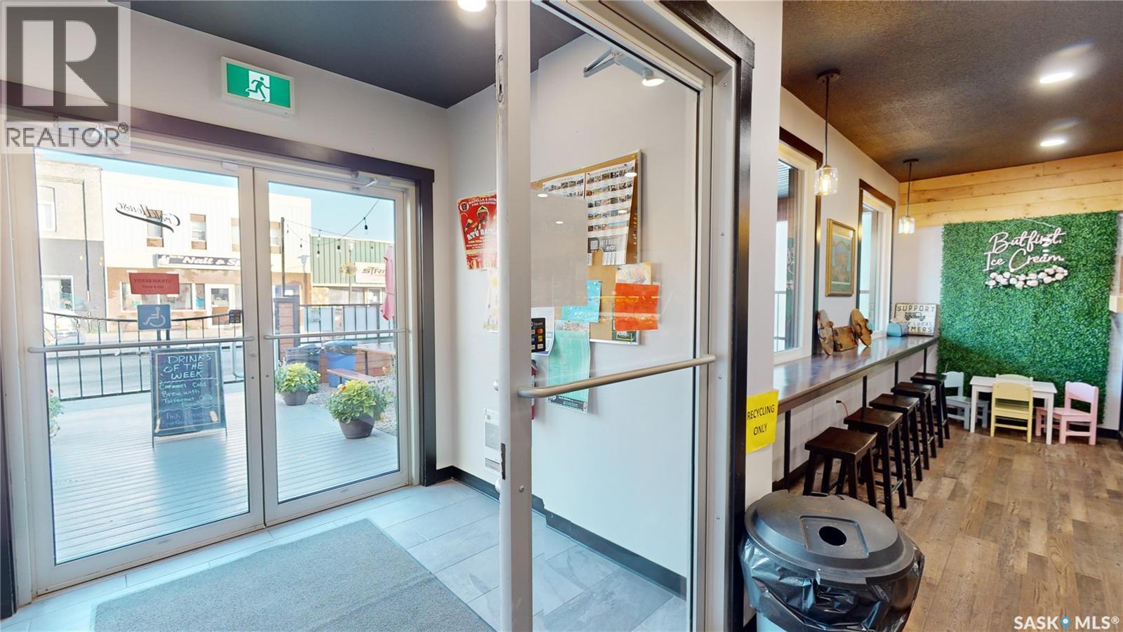 BUILDING FOR SALE: ENDLESS OPPORTUNITIES WITH THIS ONE!! — BUILT IN 2019 with 2364 SQFT — great space for a bakery, restaurant or a pub/bar, and with its excellent patio space, it offers plenty of potential for outdoor dining! Also a great opportunity for retail space (front-approx 1500 SQFT). here’s your opportunity to own a next-to-new building in the heart of downtown Moosomin; a vastly GROWING community on the #1 highway in SE SASK servicing over 30,000+ people in the surrounding area! This 2364 SQFT commercial property has become a beloved fixture in the community, currently offering ice cream, deli items, delicious daily specials, baked goods, fruits, vegetables, and fresh meat. This modern building (wheelchair accessible) features a bright storefront, good sized kitchen, office space, a wheelchair-accessible washroom (plus employee washroom+laundry), on-site staff parking, and a lovely outdoor patio with ample seating! As the current owners look forward to retirement, they’re also offering this turn-key operation to a new owner who can continue its success -- the CRATEHOUSE business is also for sale (MLS® SK026274-->includes the building, land, inventory, and equipment.) With a recent multi-million dollar expansion to our airport, many new commercial/industrial developments, a new 90-spot daycare opening, and our excellent health care facilities, Moosomin is the place to be! (id:44393)