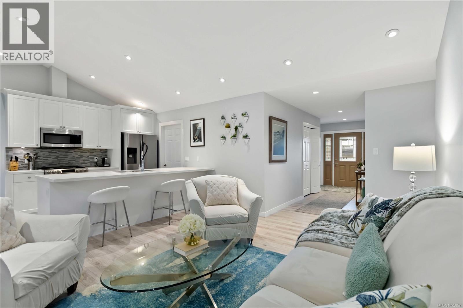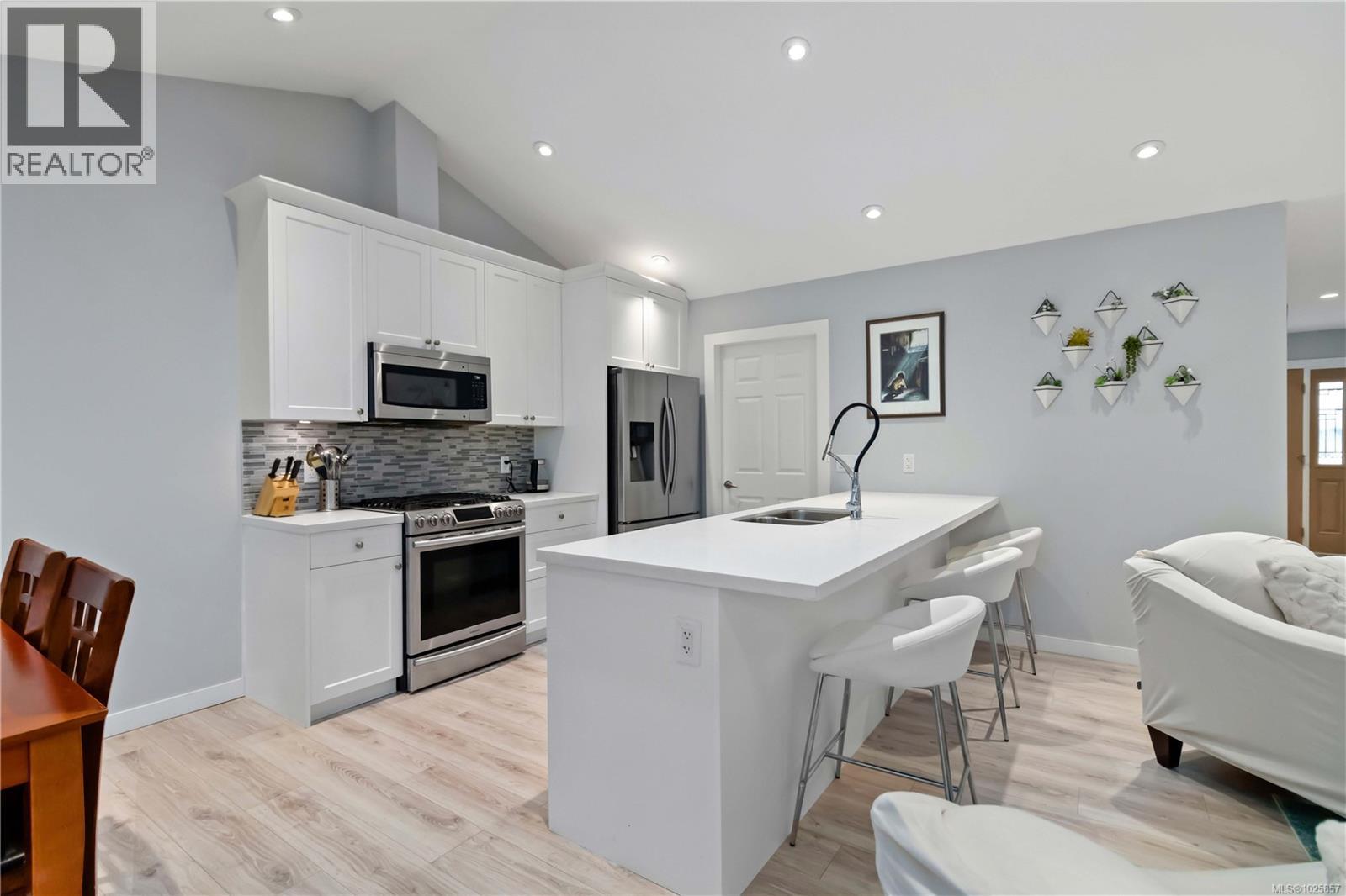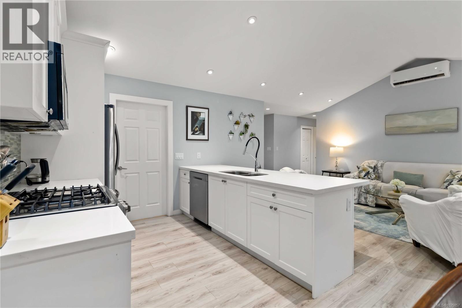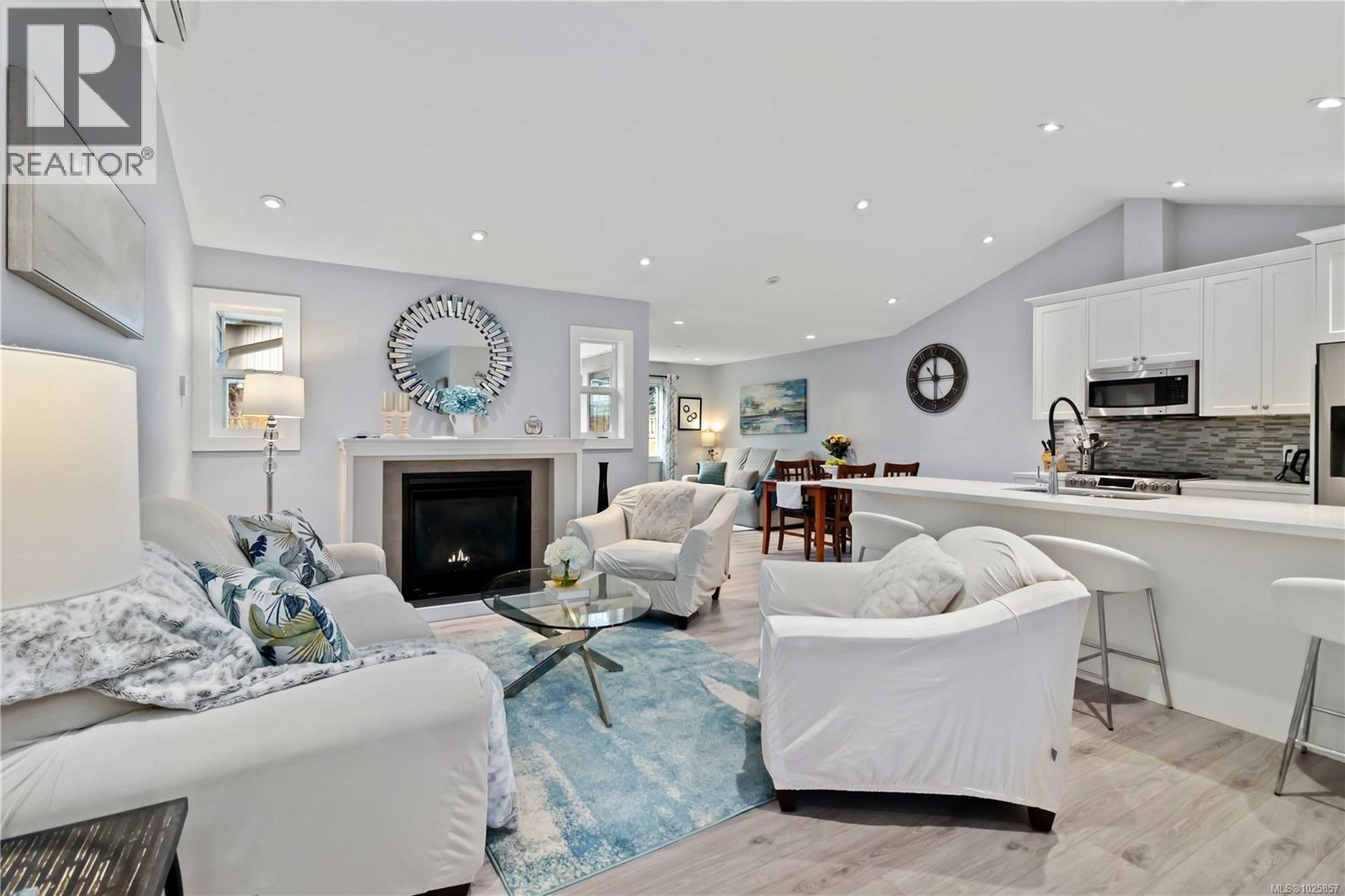 OPEN HOUSE: SUNDAY, FEBRUARY 15TH FROM 12:30 P.M. TO 2:00 P.M. OPEN HOUSE: SUNDAY, FEBRUARY 15TH FROM 12:30 P.M. TO 2:00 P.M.Welcome to Sunriver Estates! This 2019 half-duplex rancher offers 3 bedrooms and 2 bathrooms on one level, perfect for first-time buyers, downsizers, or anyone seeking low-maintenance living. The open-concept layout features vaulted ceilings that runs through out the kitchen and living room, a bright kitchen with white shaker cabinets, quartz countertops, an eating bar, and a spacious dining area leading to a private backyard and patio. The primary bedroom includes a walk-in closet and a 4-piece ensuite. Enjoy quality finishes throughout, including vinyl plank flooring, carpet in the bedrooms, a gas fireplace, pot lights, on-demand hot water, and an efficient dual-zone heat pump for year-round comfort. Durable Hardie Plank siding and cultured stone complete the exterior. Enjoy peaceful living in a family-friendly neighbourhood just minutes from parks, trails, and local amenities—an excellent opportunity to own in beautiful Sooke. (id:44393)