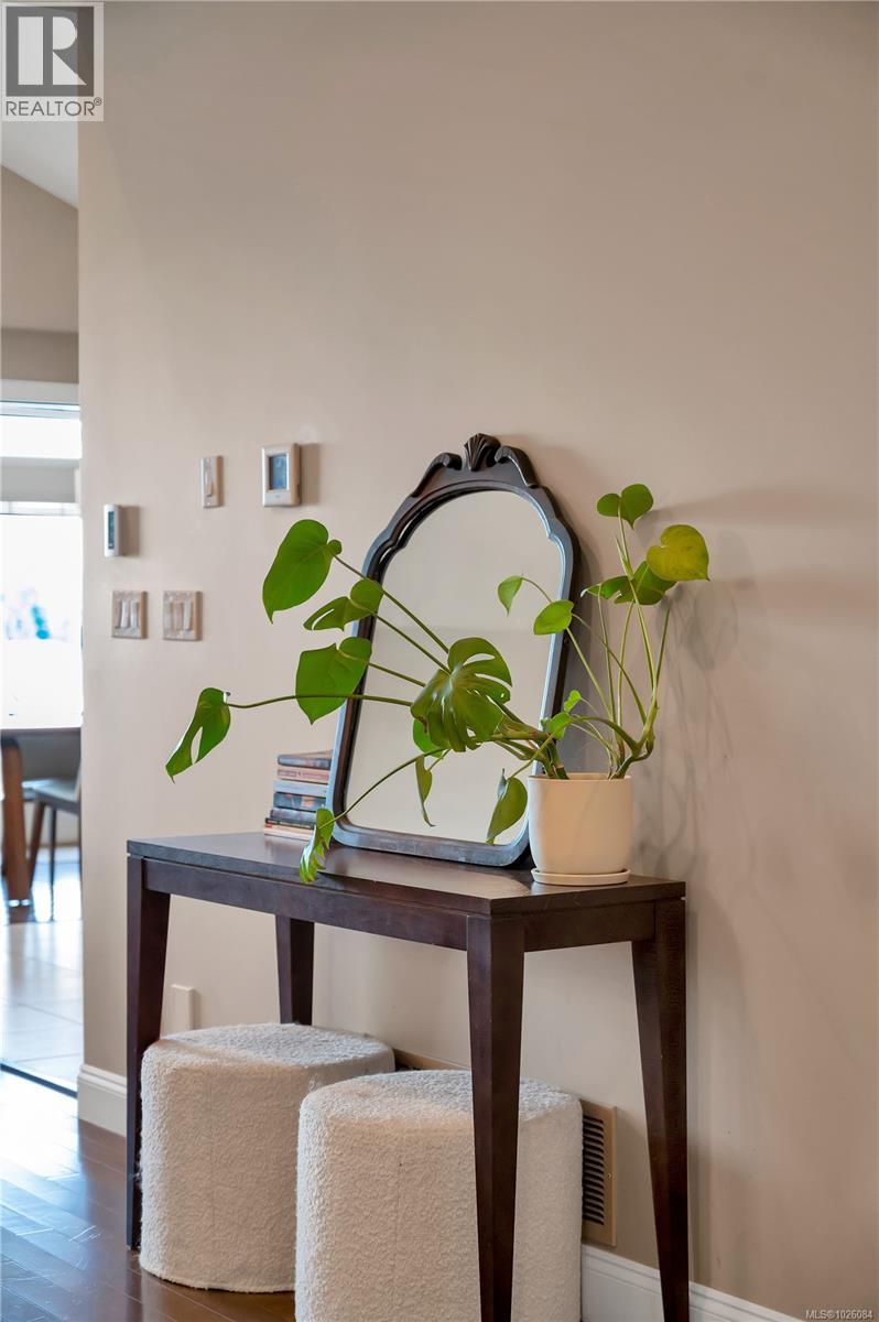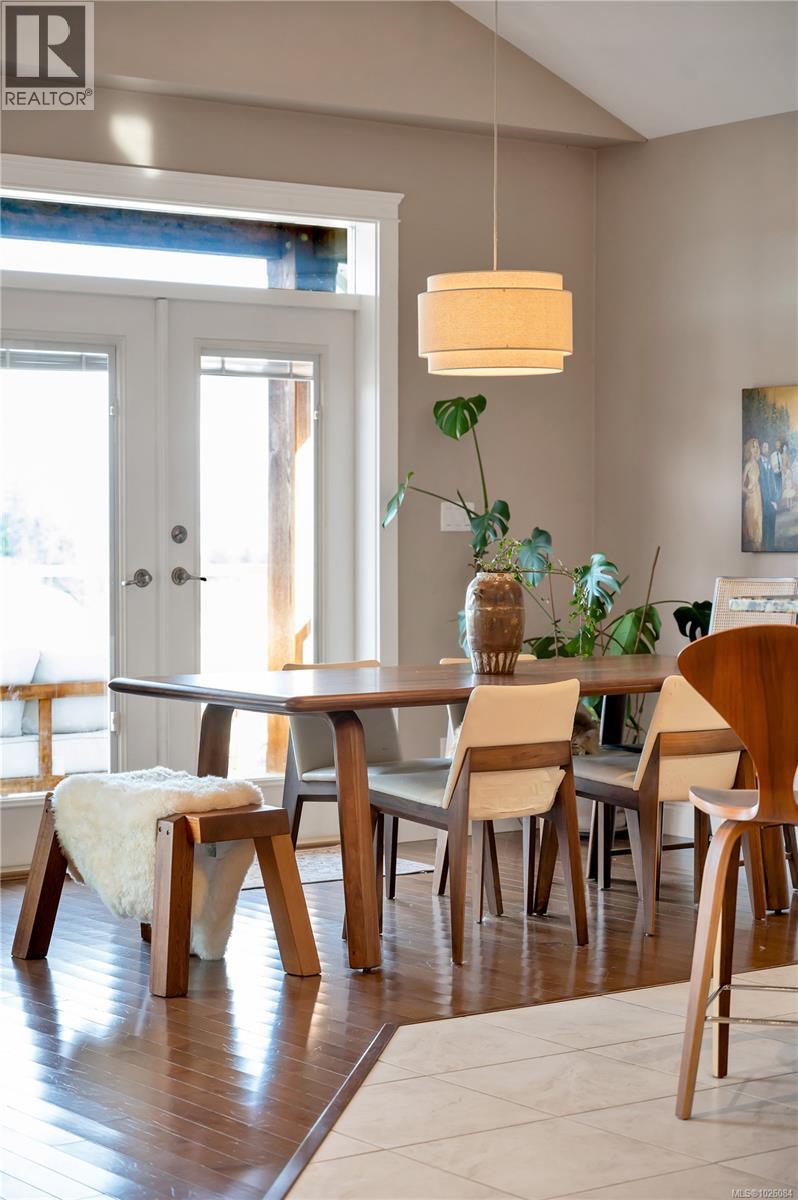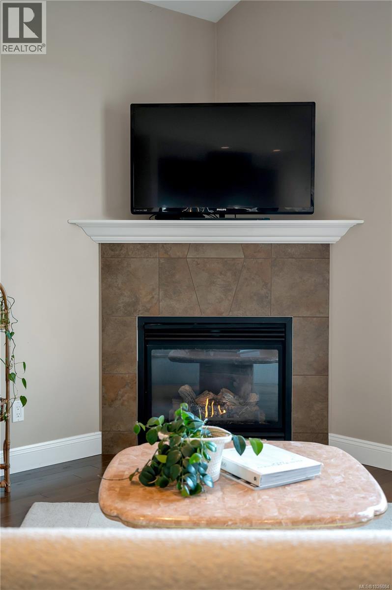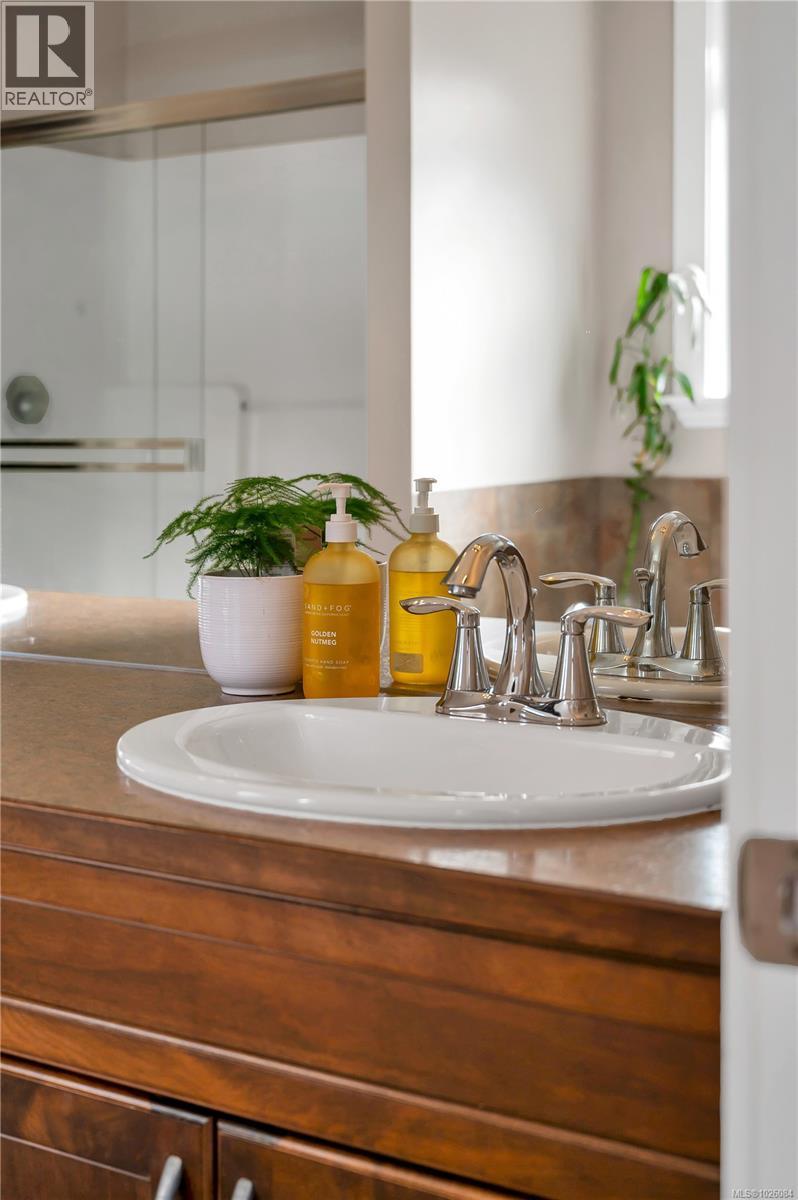 Positioned on an elevated lot in Georgia Park, this refined 4 bed, 3 bath home offers space, views & connection to nature. 14 ft vaulted ceilings & an open layout create light & flow. From the kitchen, dining & living room, enjoy ocean & mountain views, anchored by a gas fireplace. The kitchen features granite counters, heated tile floors, walk in pantry & raised breakfast bar, with heated floors also in the upstairs bathrooms. Updated interior lighting adds elegance, while modernized exterior fixtures enhance curb appeal. The covered front deck with natural gas hookup extends your living space year round & the backyard features a sunken patio, a relaxed lounging retreat. The primary suite includes a jetted tub, rain shower, double sinks & walk in closet. Downstairs offers 2 bedrooms, full bath & flex space with suite potential. Steps to forested trails, pond & a short walk to the ocean. Double garage, landscaping & irrigation make this a compelling choice in the Campbell River market. (id:44393)