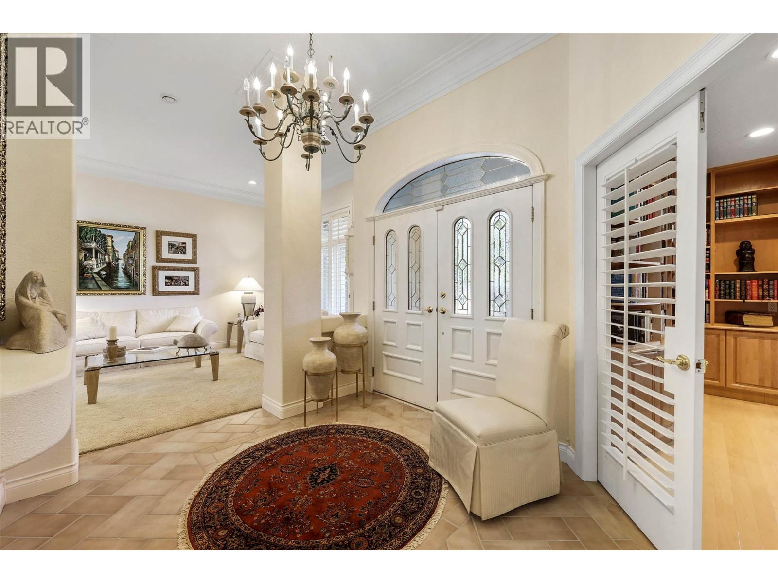 Step into elegance with this stunning 5,400 SqFt riverfront masterpiece. From the moment you enter, a grand open foyer sets the tone for refined living. A formal sitting room and executive office with custom built-ins offer sophistication and function. The gourmet kitchen flows seamlessly into the spacious living area, a wet bar with a second island makes entertaining effortless. The dining room is separate for intimate dinners. The expansive primary suite features river views, a gas fireplace, a dream walk-in closet with center island, and a spa-inspired 6-piece ensuite. The main level also includes a second bedroom, a 2pc powder room as well as a 4pc main bathroom. The lower level is a haven of leisure: a generous rec room with wet bar and fireplace, billiards area, flex space, indoor hot tub, sauna, steam shower, and abundant storage. Two additional bedrooms and a 4 piece bathroom complete the lower level. Outside, enjoy a covered deck with breathtaking views, mature landscaping, vibrant gardens, a sparkling pool, and private dock. With gated entry, RV parking, guest space, and a double garage, this estate offers luxury, privacy, and lifestyle in one exceptional package. (id:44393)
