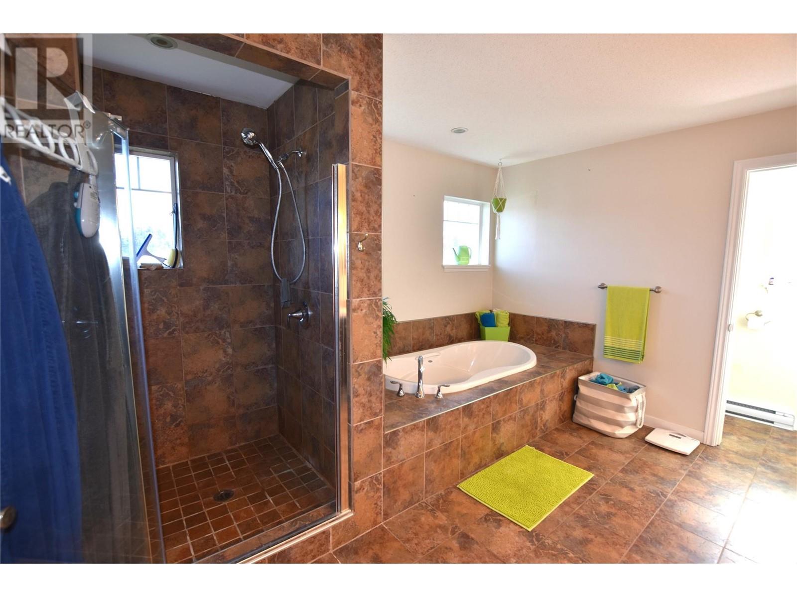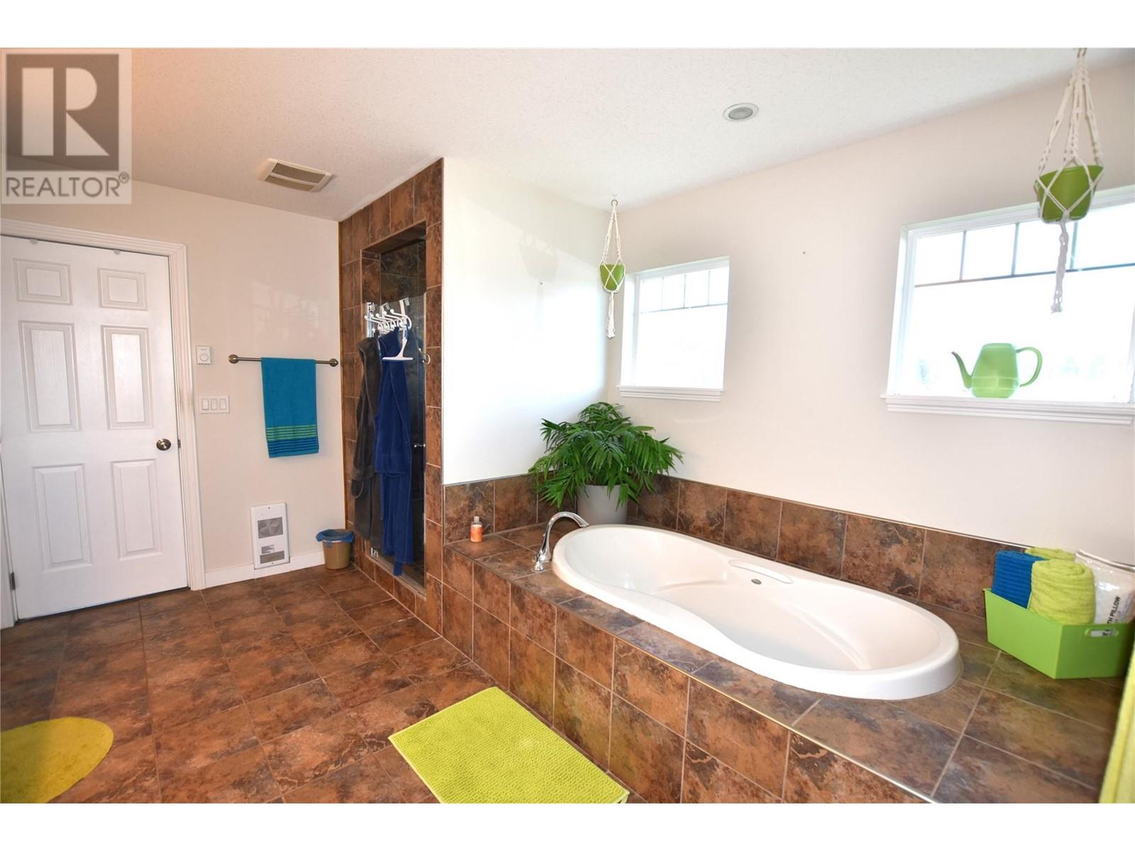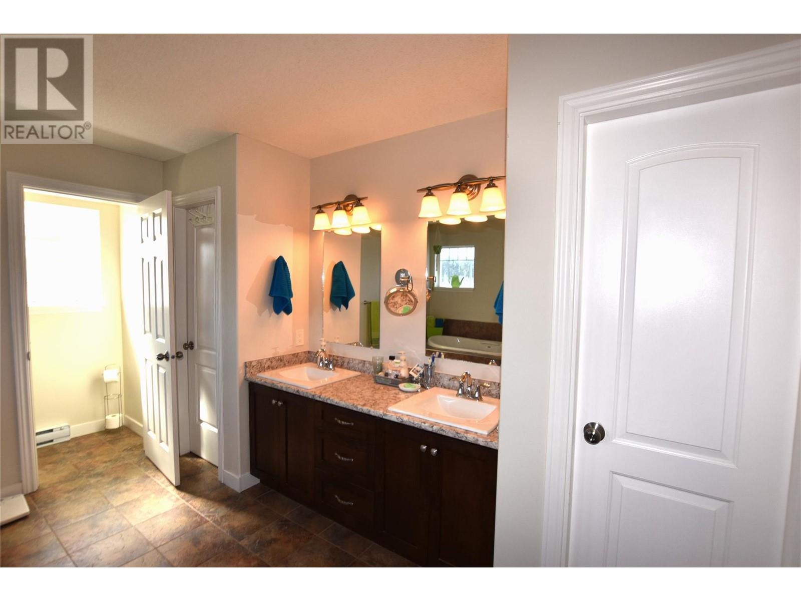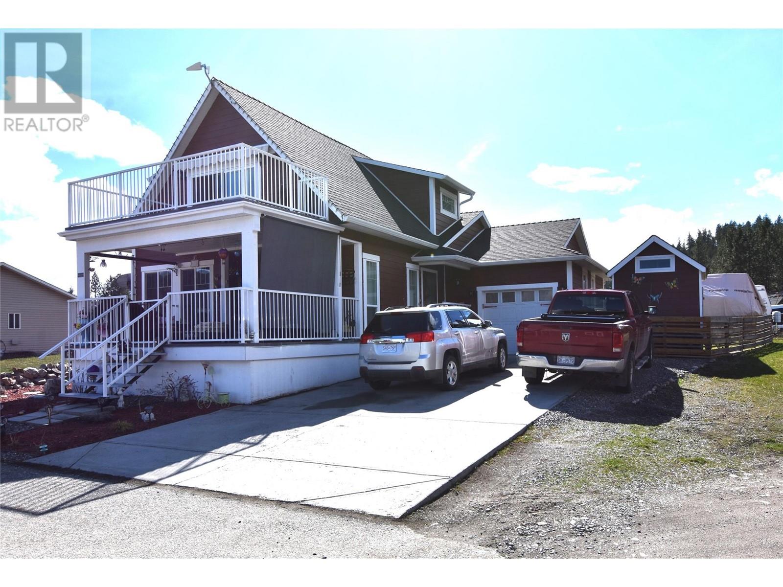 Welcome to 672 Cougar Street in Parker Cove – a beautifully maintained 3-bedroom, 2-bathroom home situated on a quiet corner lot in a serene lakefront community. The main floor features a bright, open-concept living area with gleaming hardwood floors, two spacious bedrooms, a full bathroom, and convenient main-level laundry. Upstairs, you’ll find an expansive primary suite complete with a luxurious 4-piece ensuite that includes dual sinks, a relaxing soaker tub, and a large tiled shower. Sliding glass doors lead from the bedroom to a private upper deck offering stunning lake views. The full, unfinished basement provides ample potential for future development, whether you're envisioning extra living space, a home gym, or a workshop. Additional highlights include an attached single-car garage, a storage shed, and a fully fenced backyard. Recent updates include fresh main-floor paint, new countertops, updated sinks and faucets, and a brand-new washer and dryer. This home is on a registered lease until 2043, with an annual lease fee of $4,069.75. Parker Cove is a welcoming lakeside community on the west side of Vernon, just 25 minutes from town. Residents enjoy access to over 2,000 feet of prime Okanagan Lake shoreline—perfect for relaxing, swimming, and boating. (id:44393)