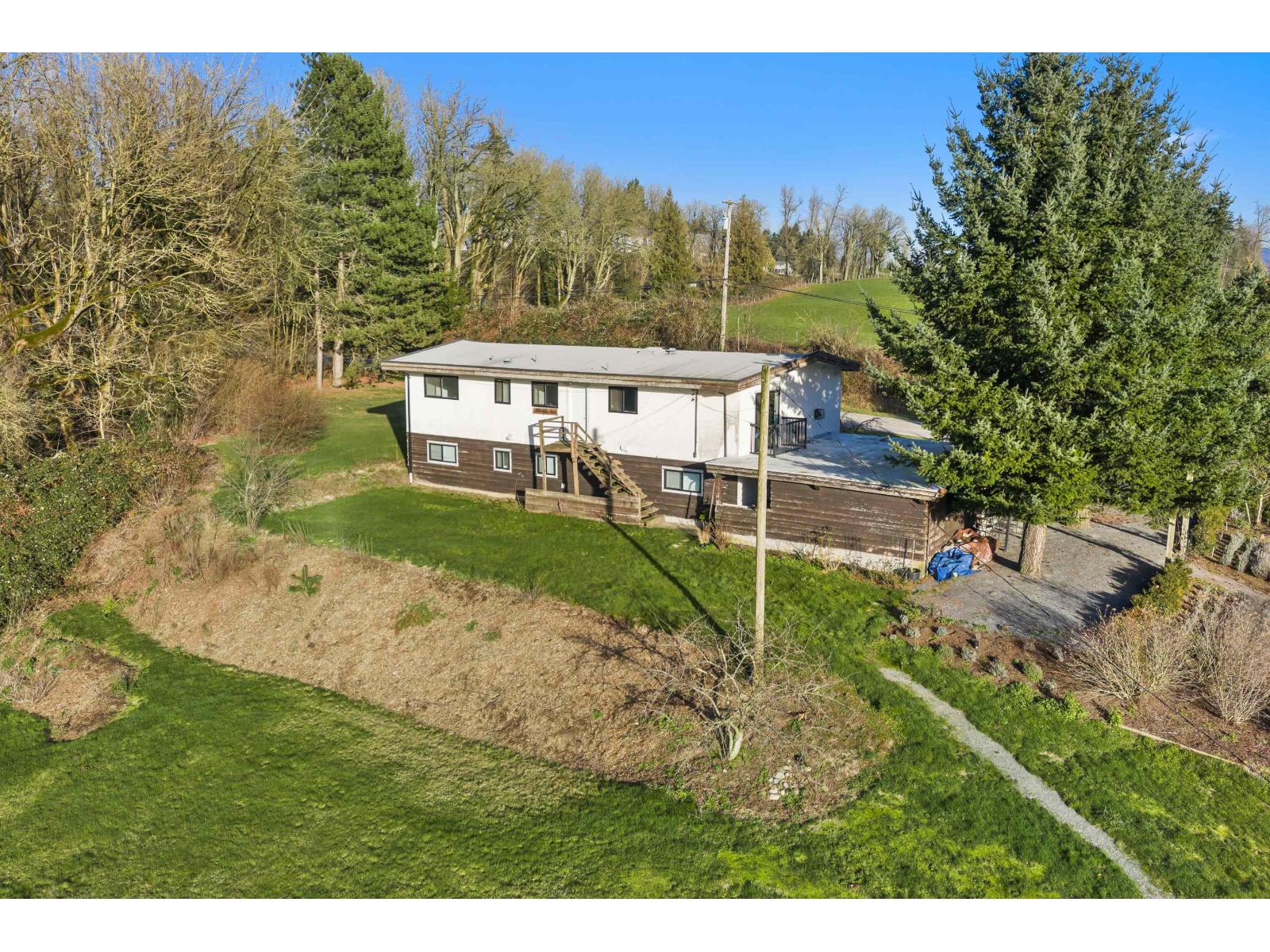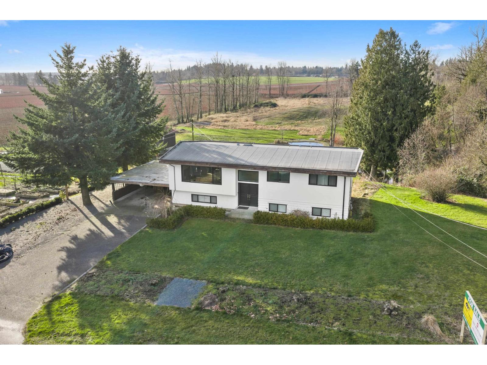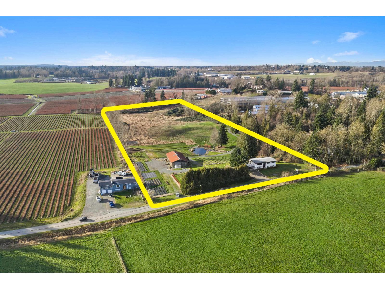 FIRST TIME EVER FOR SALE! Prime 11 Acre on Bradner Road showcasing stunning Mt Baker views, located on a quiet stretch between 0 Ave & Huntingdon Rd. Ideal for a DREAM ESTATE, hobby farm, barns, & agricultural use. Rectangular property offers approx 370 FT of frontage w/ two driveways. Features a 2734 SQFT split-entry home w/ solid bones, ready for renovation, or take advantage of the unique elevation to build a custom 2 storey or rancher w/ walk-out basement. Perfect for large luxury residence (ability to build larger than 5400 SQFT). Incl a 3040 SQFT barn. Gently rolling land offers beautiful landscaping elements & ponds, creating a serene backdrop for outdoor living - or modify to suit your farming/estate needs. Zoning allows for 2nd home (970 SQFT), barn & 2 commercial vehicle parking (id:44393)