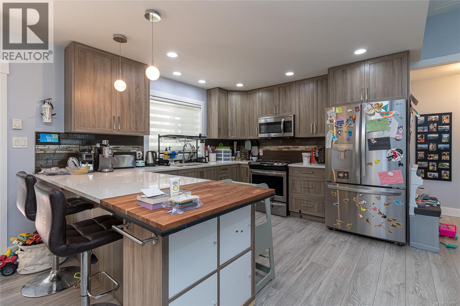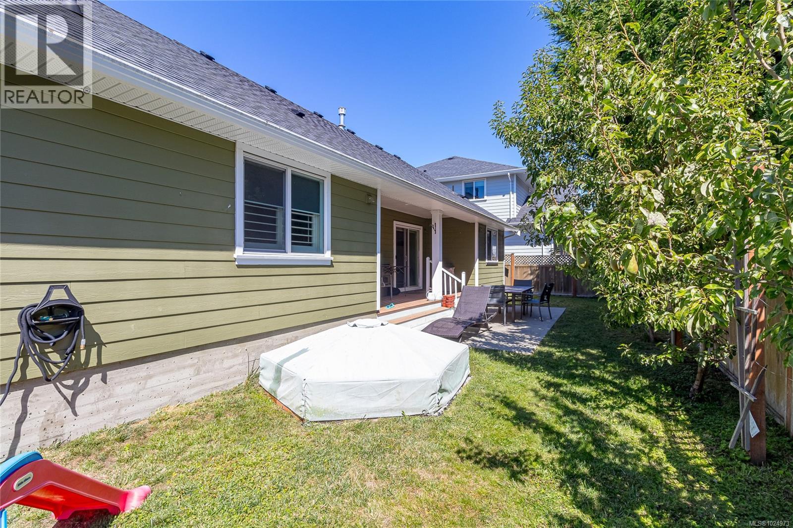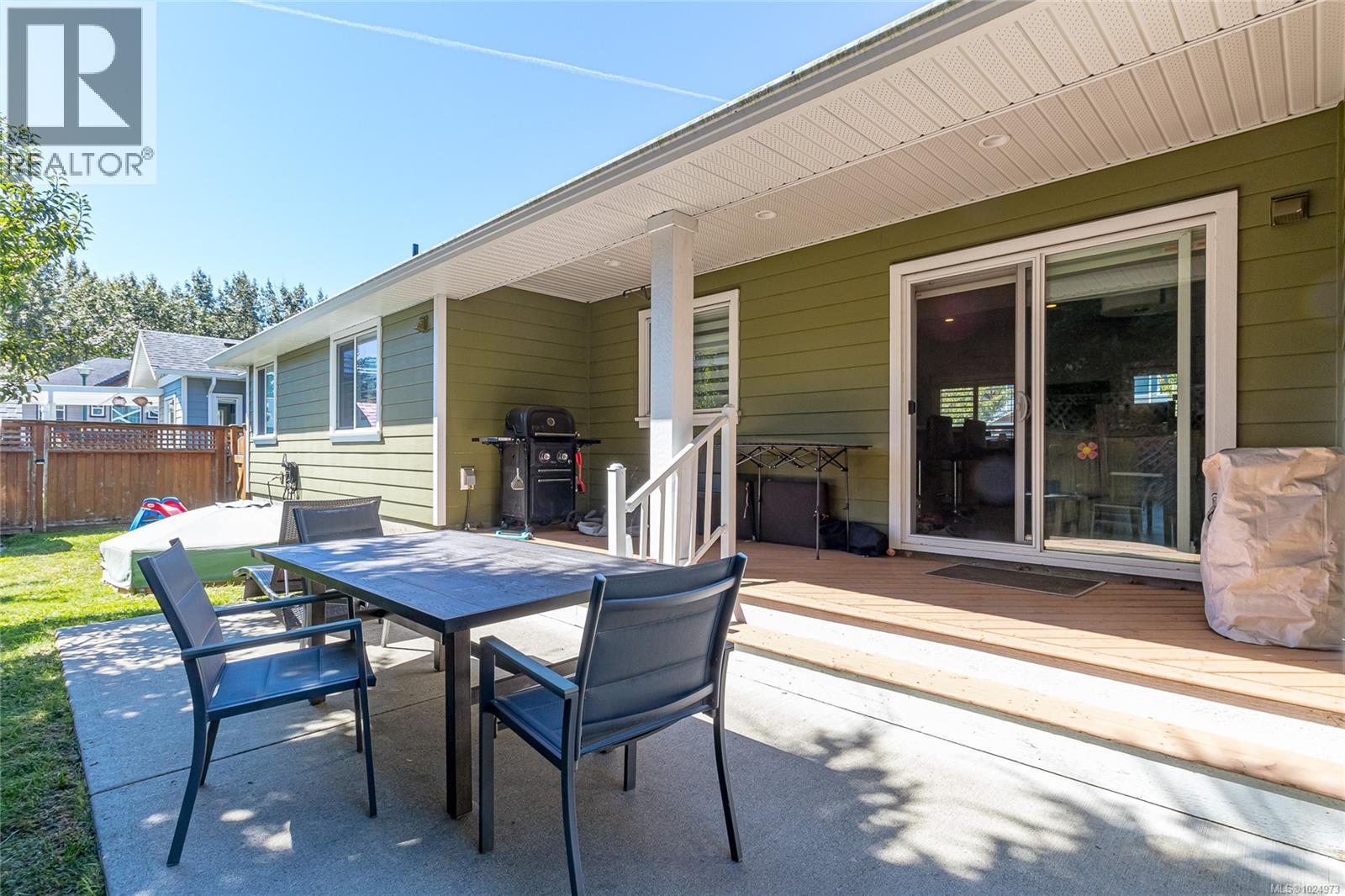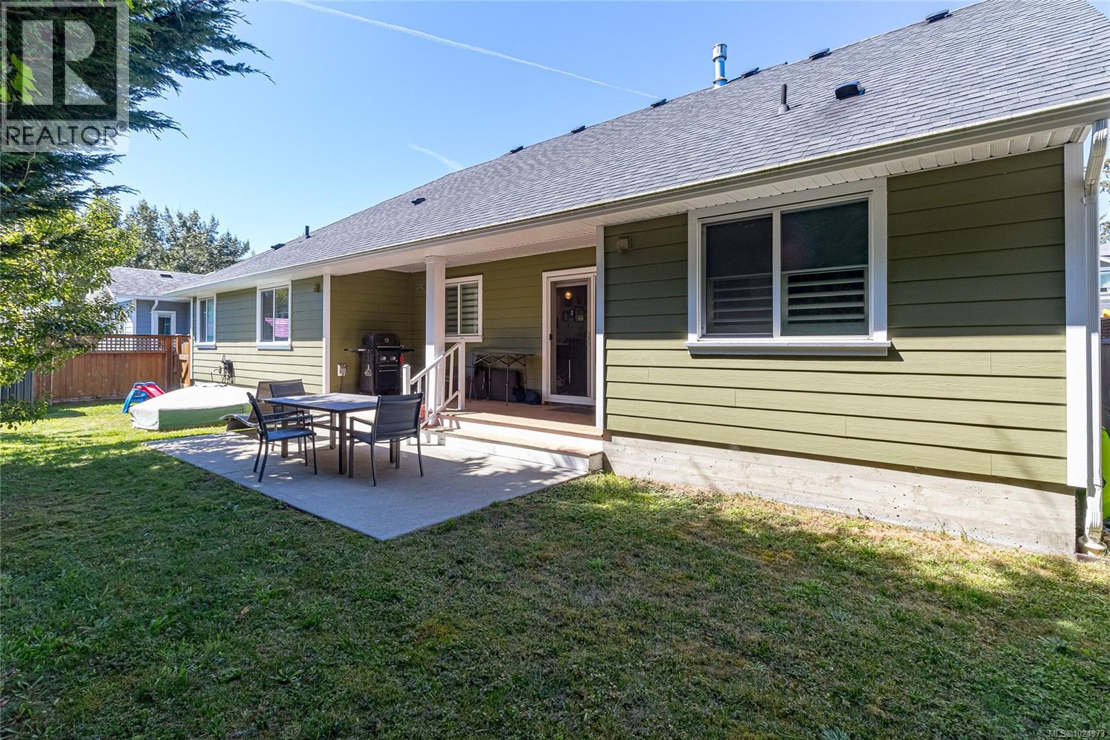 This great valued Rancher is located on a quiet cul-de-sac in a popular Family Neighbourhood in Sooke, only minutes to all local amenities in the Sooke town core. Quality built in 2015, this one level home is elegantly designed with 3 bedrooms, 2 baths and just over 1600 sq.ft. The open-concept layout offers 10’ ceilings, bleached wood-style laminate flooring, bright living room with picture windows and a modern gas fireplace. Stylish kitchen with quartz counters, tile backsplash, stainless appliances & gas cooktop. Dining with slider to sunny back patio. Spacious bedrooms, including a primary with huge walk-in closet & spa-like 5pc ensuite. Hot water on demand, quality finishes throughout. Fully fenced, irrigated & beautifully landscaped with pear trees, grapevines & Japanese maple. Large over sized garage. A perfect blend of comfort & style! Well priced! Listed below BC Assessed value. (id:44393)