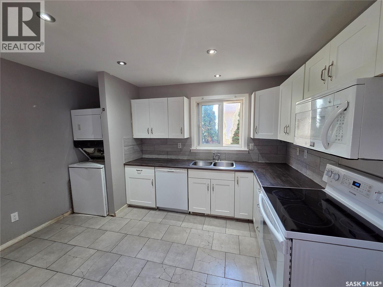 Sutherland bungalow backing green space, with revenue, and only 10 minutes from UofS! Main floor features 3 bedrooms and 1 bath. Private entrance to the basement suite which has an additional 2 bedrooms, 1 bathroom, kitchen, and separate laundry area. Furnace and water heater installed in 2021. 24' x 16' detached garage. Needs some TLC but a great starter home or revenue property. Call to set up your viewing today! Form 917 signed with no offers to be presented until May 4th at 11:00am As per the Seller’s direction, all offers will be presented on 05/04/2026 11:00AM. (id:44393)