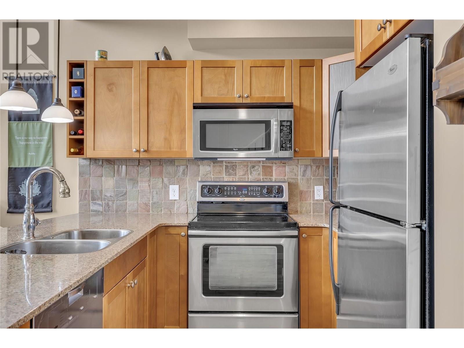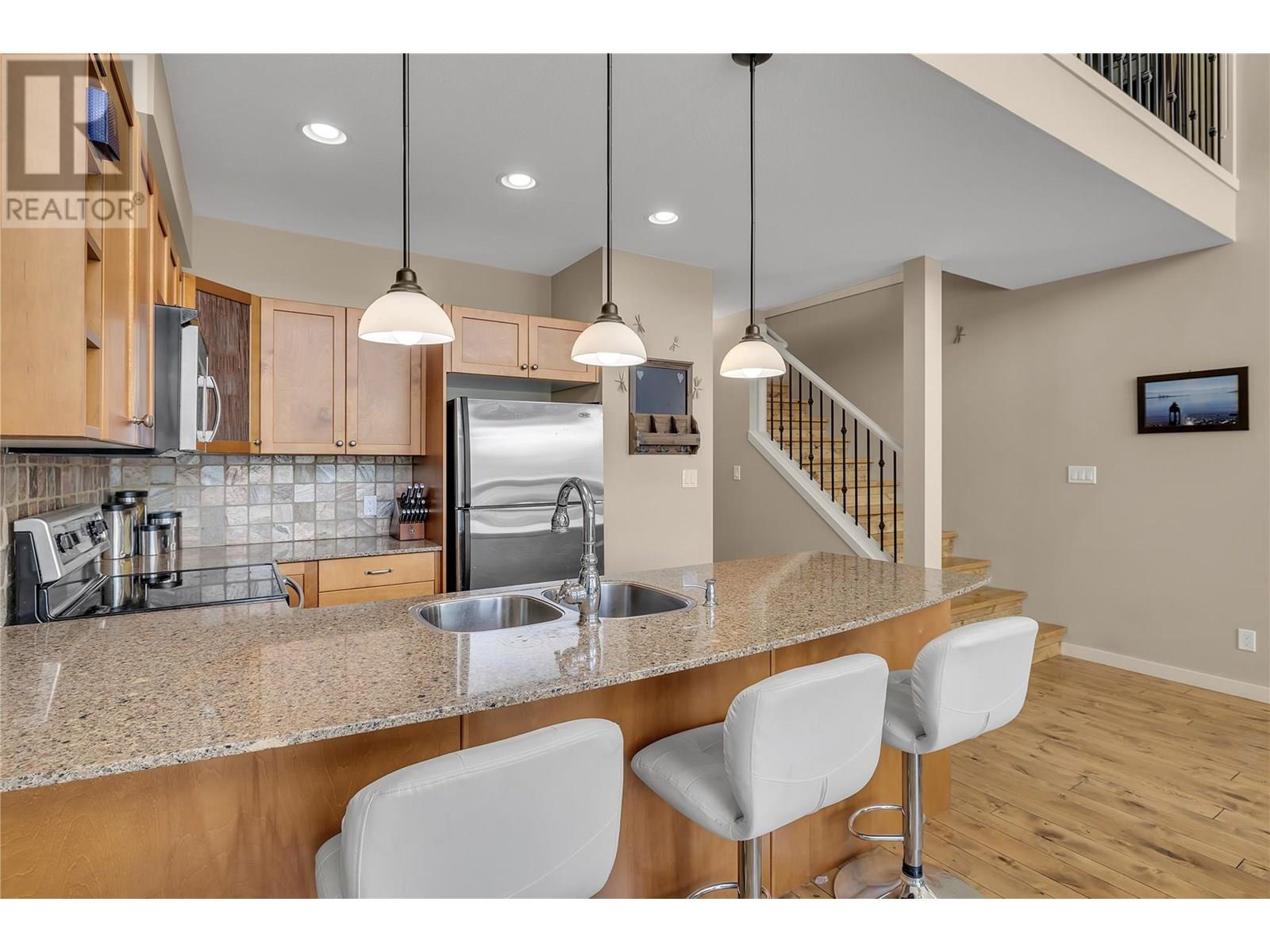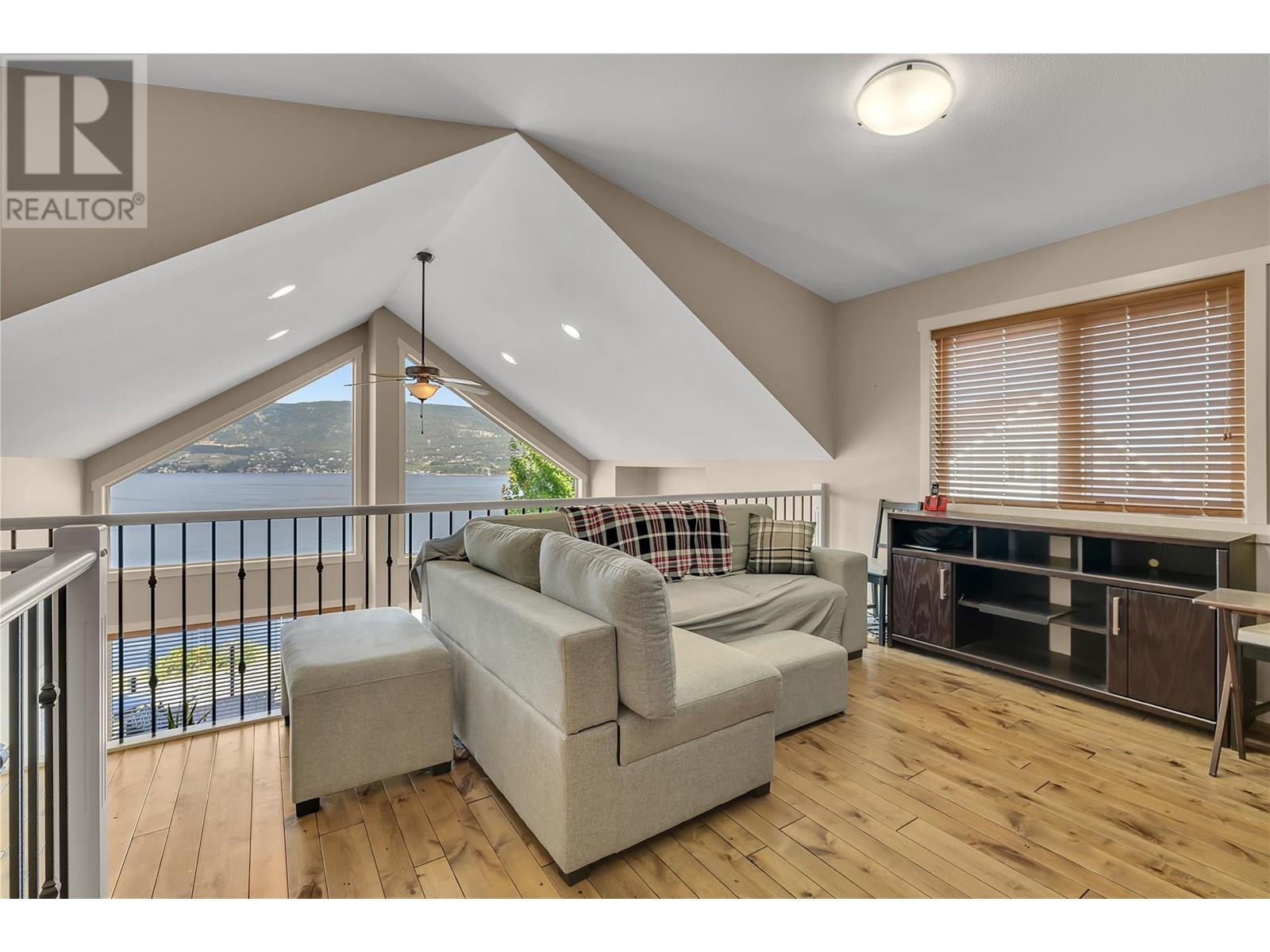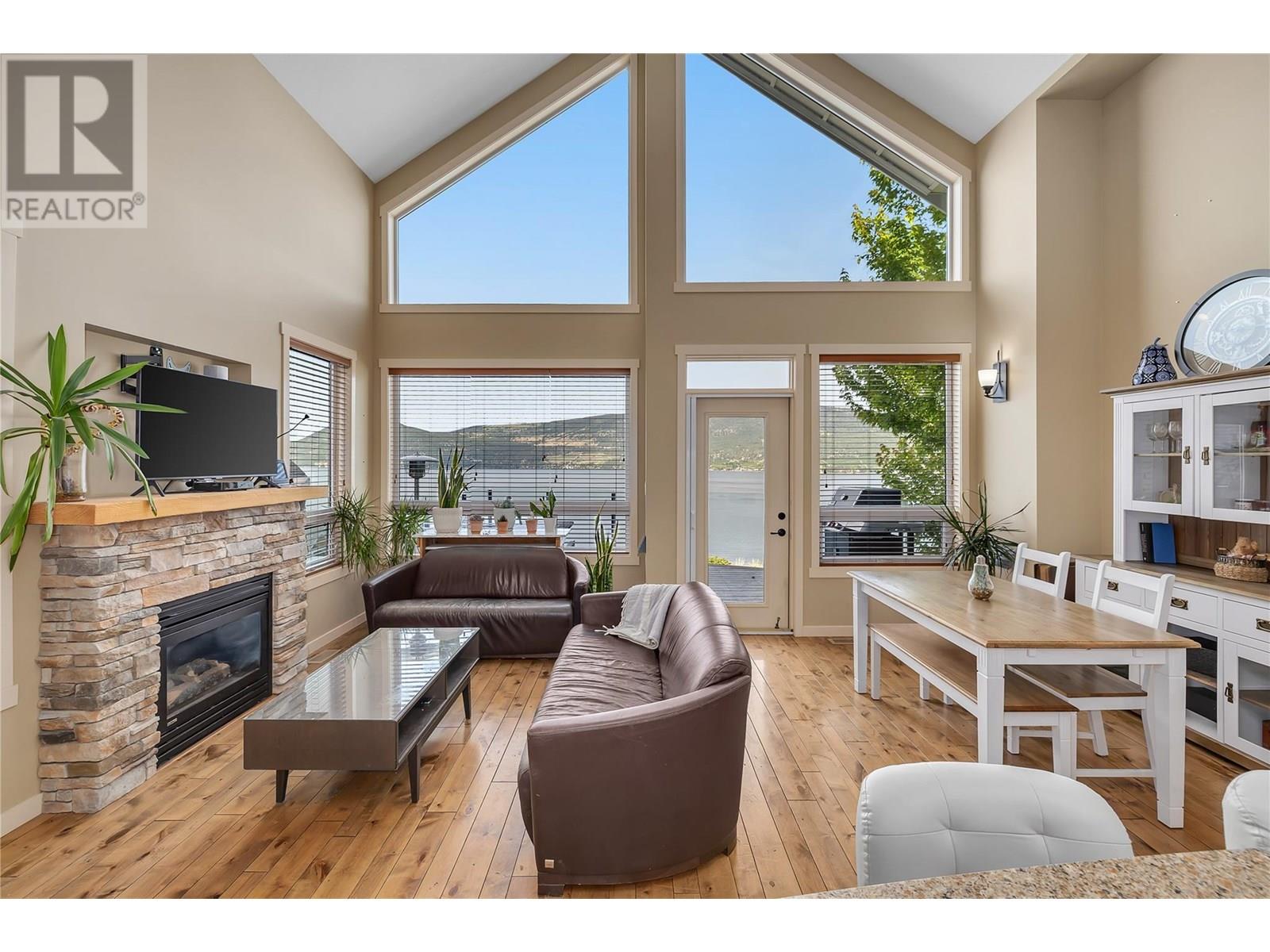$429.42 MonthlyThis unobstructed lakeview home boasts an ideal location close to the marina and beach, and a serene garden with a koi pond in the backyard as a private oasis in this lively community. La Casa Lakeside Cottage Resort boasts a colorful community of charming properties and an abundance of amenities. Inside, an open-concept layout with hardwood floor and vaulted ceilings and floor to ceiling windows. A generously sized kitchen with wood cabinetry and large peninsula with breakfast bar overlooks breathtaking Okanagan Lake views. The dining and living areas contain expansive windows and a handsome stone-faced fireplace. Two bedrooms are split between two levels, along with a den/loft area and two well-appointed full bathrooms accompany them. La Casa Lakeside Cottage Resort is a family paradise located on the west side of Okanagan Lake, where it’s easy to escape the cares of the outside world with a variety of activities from the activity park with pool, hot tubs, tennis and volleyball courts, playground, mini-putt course, marina, boat launch, community fire pits, and beach with suntan decks and aqua parks. (id:44393)