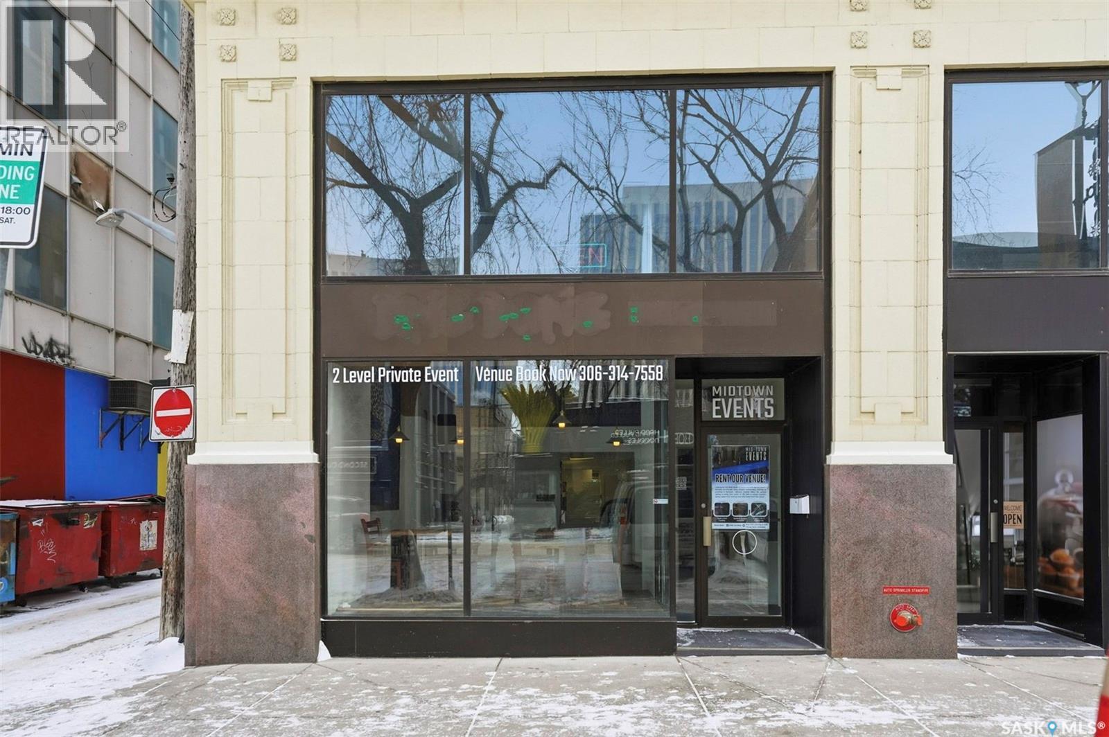 Outstanding Storefront space in downtown Saskatoon's prominent Canada Building on the corner of 1st Avenue South and 21st Street East! A location with one of the city's highest foot traffic counts - there is no reason your business cannot succeed here! Easily used as an event space, restaurant, cafe, market with dining capabilities, lounge, nightclub, or whatever your concept may be, the B6 zoning allows for a multitude of uses! Brand new hood and suppression system! Easy to show, call your agent for more details! (id:44393)
