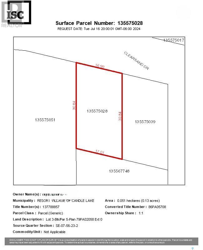 Rare find. Lot for sale in Candle Lake, Sk in the Clearsand Subdivision. The lost is mostly cleared and surrounded by trees. This lot is located one row back from the waters of Candle Lake and is close to the beach area. Walking distance to the marina. Build your dream cabin in a great location. If you want an existing cabin, then check out the cabin located next door to this lot and keep this one for extra storage. Option to purchase a marina in the Clearsand Marina. Call your Agent for more details. (id:44393)