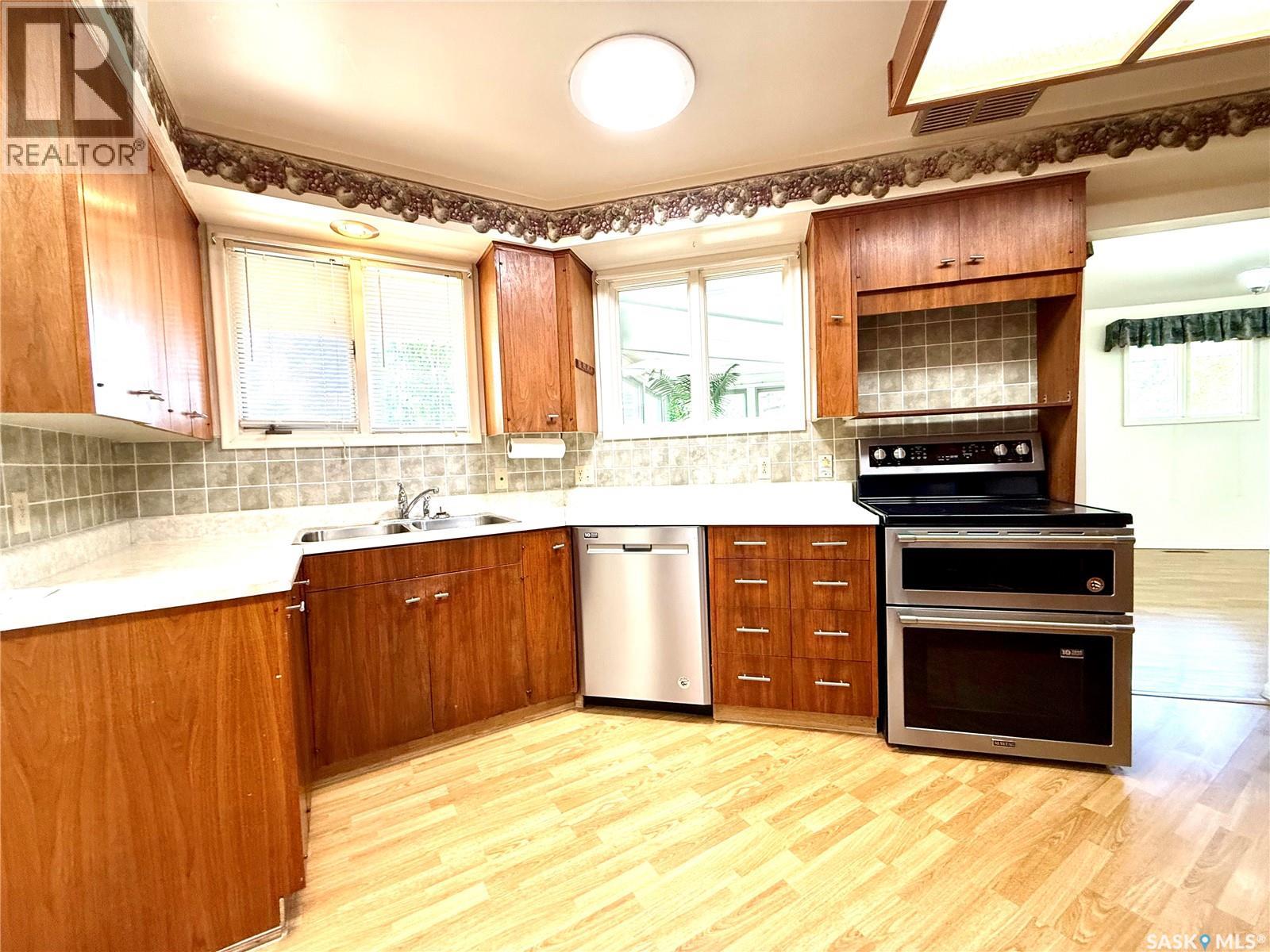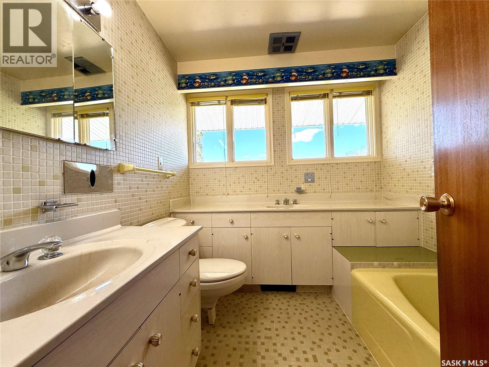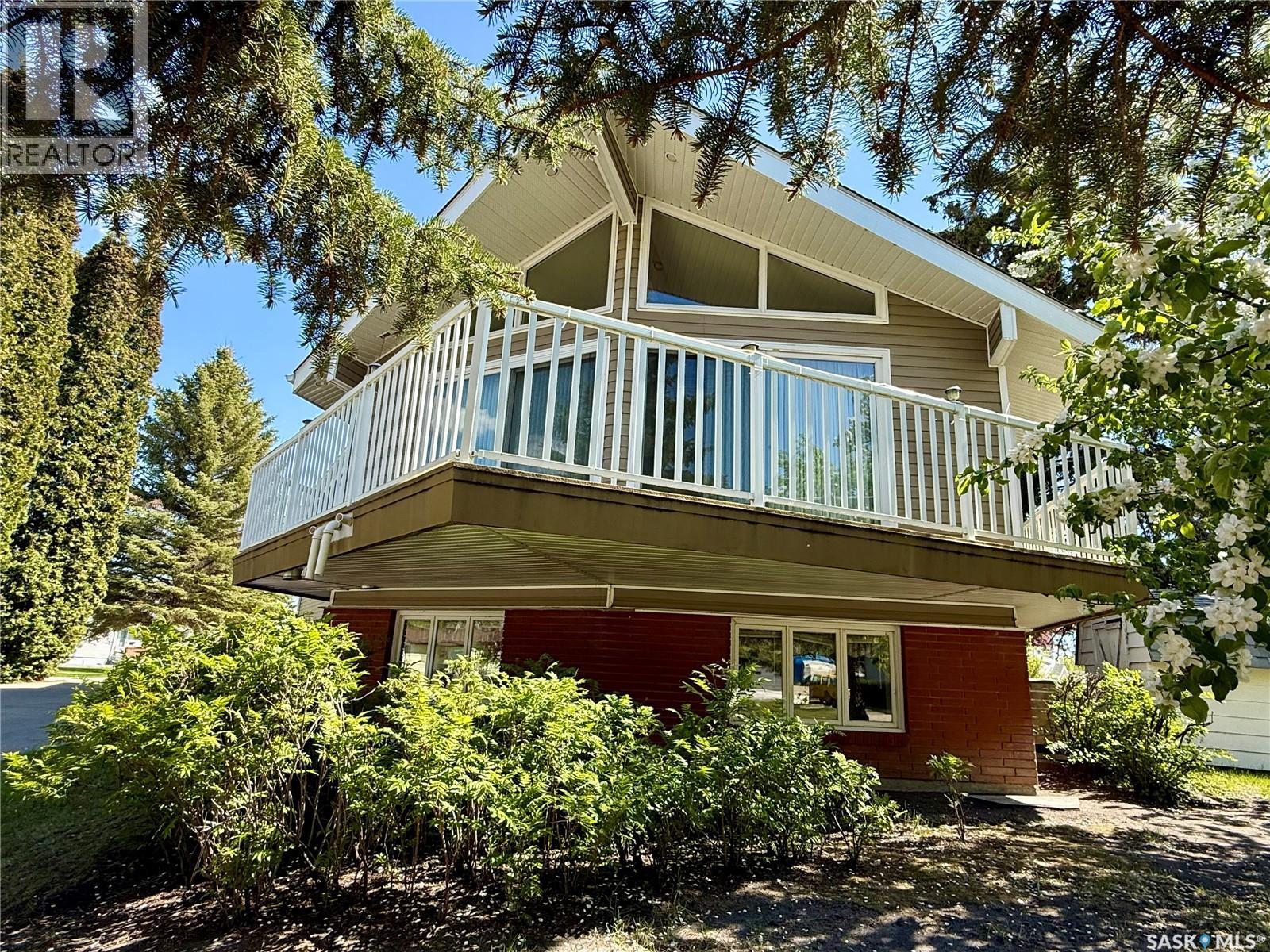 Now available is one of Yorkton’s most notable mid-century residences. Built in 1968, this architecturally distinct home spans 1,872 square feet and features 5 bedrooms, 3 bathrooms, and a double attached garage. Designed with character in every corner, the home showcases vaulted ceilings, angled walls, and an original built-in bar—true to the era’s signature style. A wall of windows opens onto a private deck, perfect for entertaining or relaxing outdoors. A separate sunroom offers additional space to enjoy year-round natural light. Set on a prominent corner lot with a circular driveway, this home has remained dry through both of Yorkton’s major floods, providing peace of mind alongside charm. Recent upgrades include two modern furnaces (installed in 2021 and 2023) and new shingles (2023). Conveniently located near St. Paul’s Elementary School, the Gallagher Centre, and the Painted Hand Casino, this home blends architectural appeal with everyday practicality. A decorator’s dream with unique design elements, this rare gem is ready to welcome its next chapter—and the perfect family to make it their own! (id:44393)