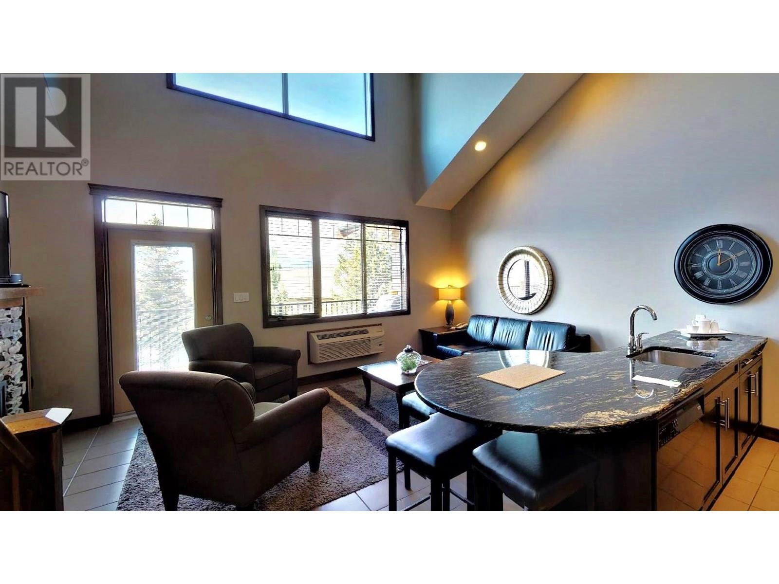 $109.11 MonthlyHassle-Free Mountain Getaway at Bighorn Meadows Resort! Enjoy vacation ownership in the heart of BC’s Rocky Mountains with this 1/17 share (Rotation H) of a top-floor 2 bedroom, 2 bathroom condo with loft in the desirable 700 building (the only one with both secure heated underground parking and elevator access). Your share provides 3 weeks of use every year. This fully furnished, turn-key condo features vaulted ceilings, a spacious loft and king beds in both bedrooms. The open-concept living space is designed for comfort and style with granite countertops, tile flooring, high-end fixtures, in-suite laundry, contemporary furnishings, artwork, kitchenware, BBQ and patio furniture. Relax on the balcony overlooking the Springs Golf Course with the Purcell Mountains as your backdrop or curl up by the electric fireplace after a day of adventure. Your monthly fee includes strata fees, property taxes, utilities, cable, phone, internet and insurance. Resort amenities include an outdoor heated pool, two hot tubs, fitness centre, owner's lounge and a children’s playground. Surrounded on three sides by the renowned Springs Golf Course, Bighorn Meadows spans 9 beautifully maintained acres and offers discounted green fees for owners. Optional professional management can assist with rental income, or join Interval International to trade your weeks for stays at other resorts worldwide. Click the 3D Showcase/Play icon for a virtual tour of the unit and additional photos for Amenity Centre. (id:44393)