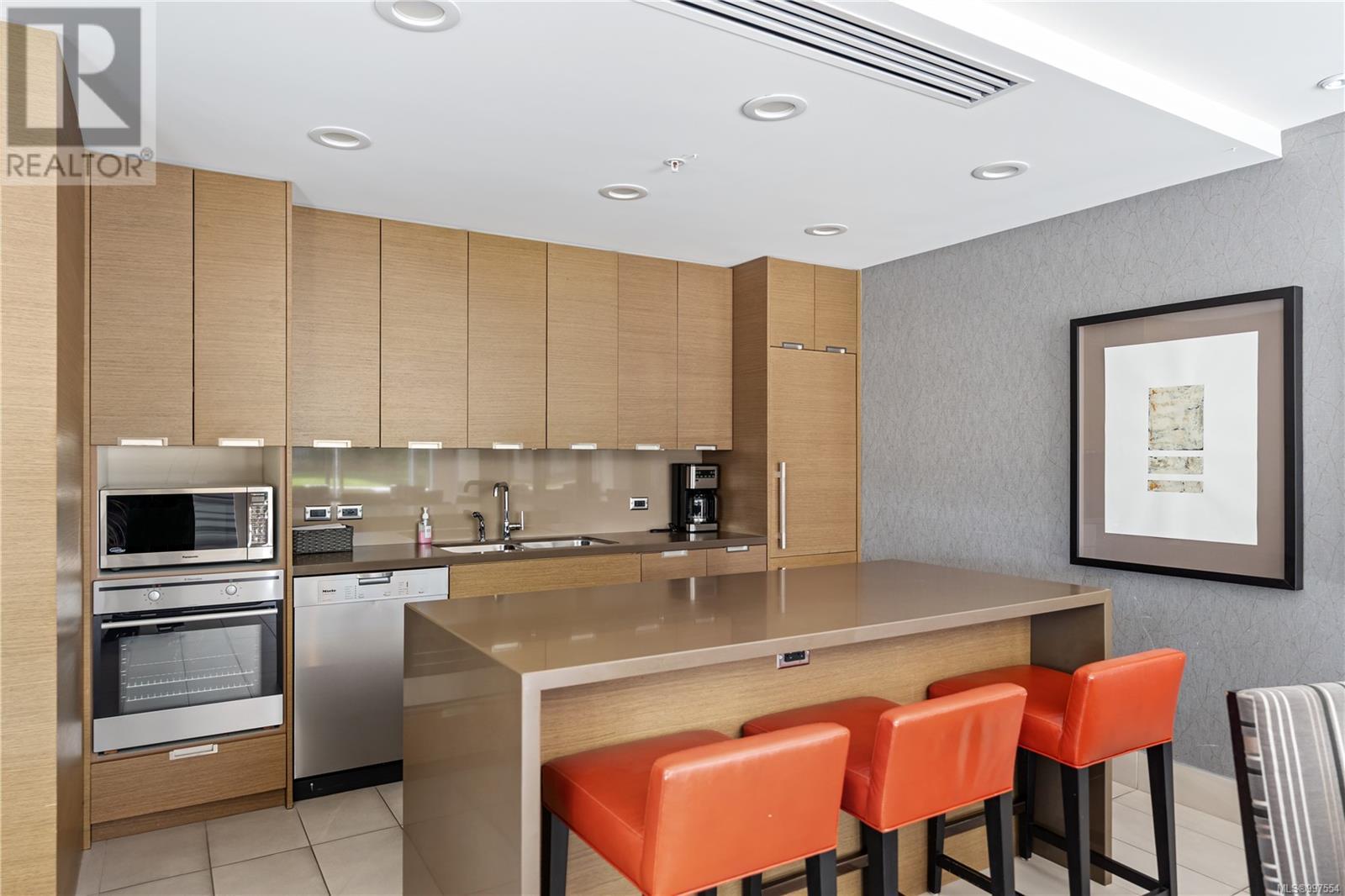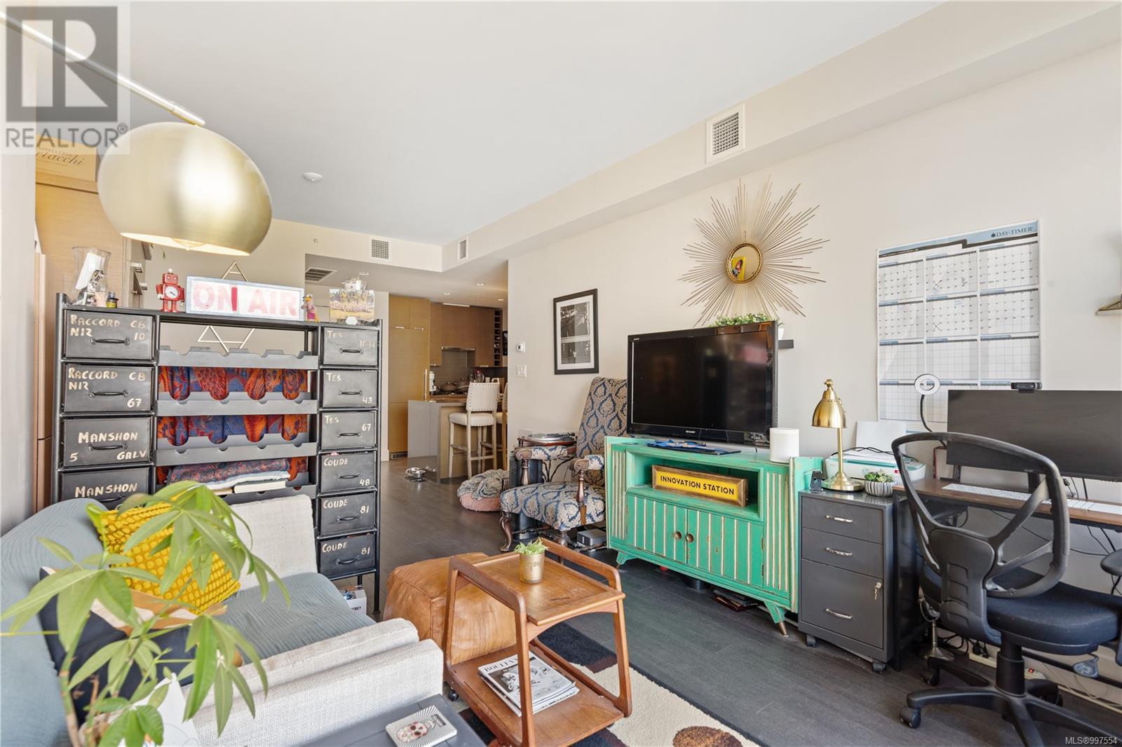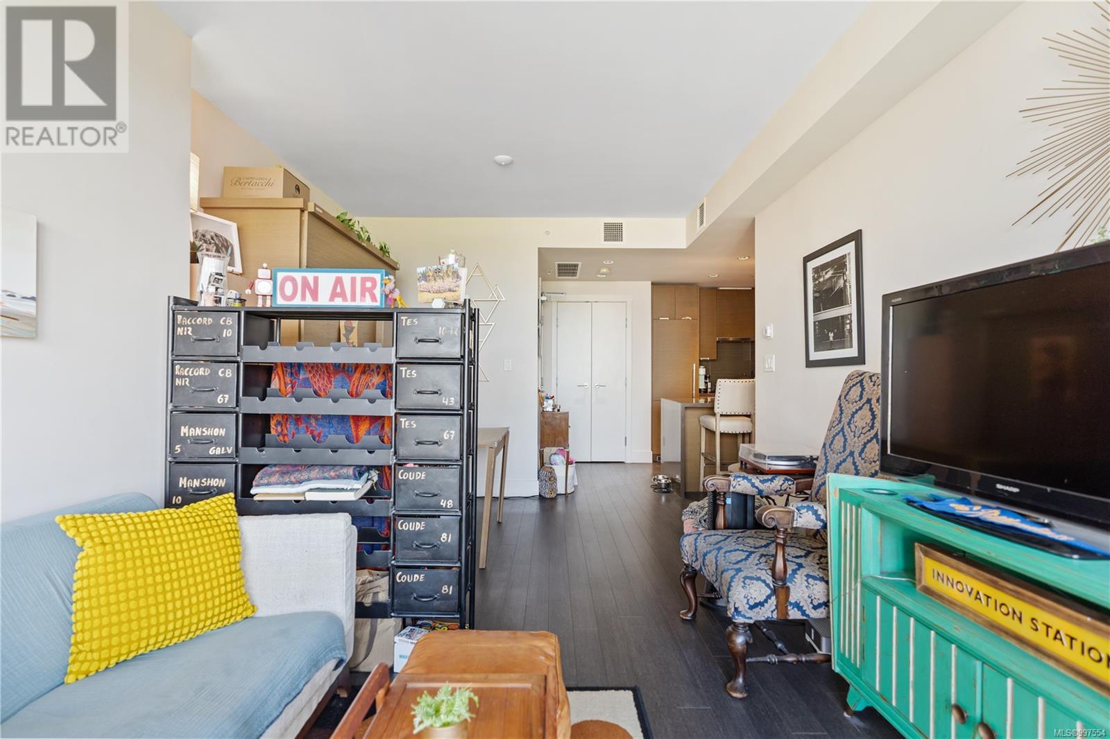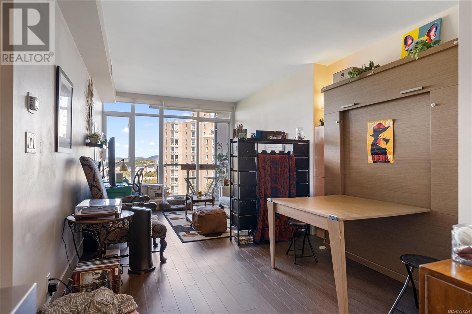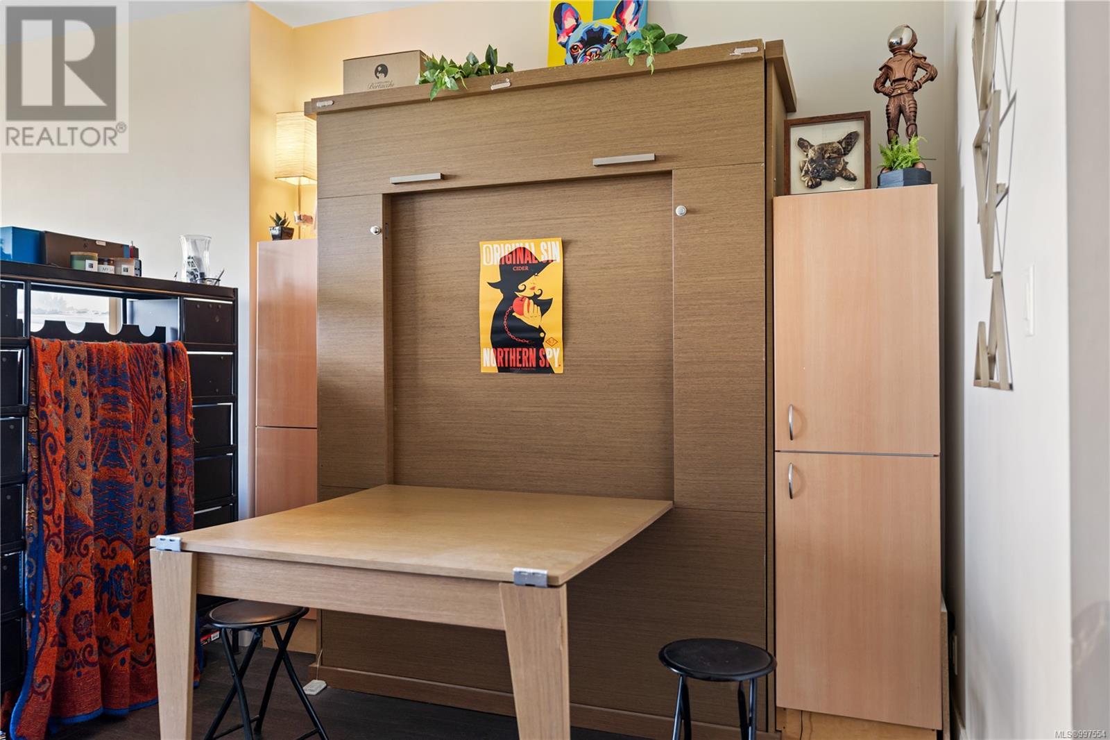 $376 MonthlyThis spacious studio condo in the sought-after Promontory by BOSA offers west-facing views and air conditioning perfect for staying cool while enjoying spectacular sunsets. Larger than most studios, this well-designed home features floor-to-ceiling windows that flood the space with natural light, plus a full-sized kitchen with appliances, a gas range, quartz waterfall countertops, and a stylish tile backsplash. The smart layout includes a quality Murphy bed, hardwood floors throughout, and a laundry room with pantry for extra storage. Set in a modern steel and concrete building with concierge service , social lounge, and a fitness centre, this pet-friendly and fully rentable unit includes secure parking. Complete with parking, storage locker, bike storage, and visitor parking. Steps from the ocean, downtown Victoria, the Galloping Goose trail, groceries, and more. (id:44393)