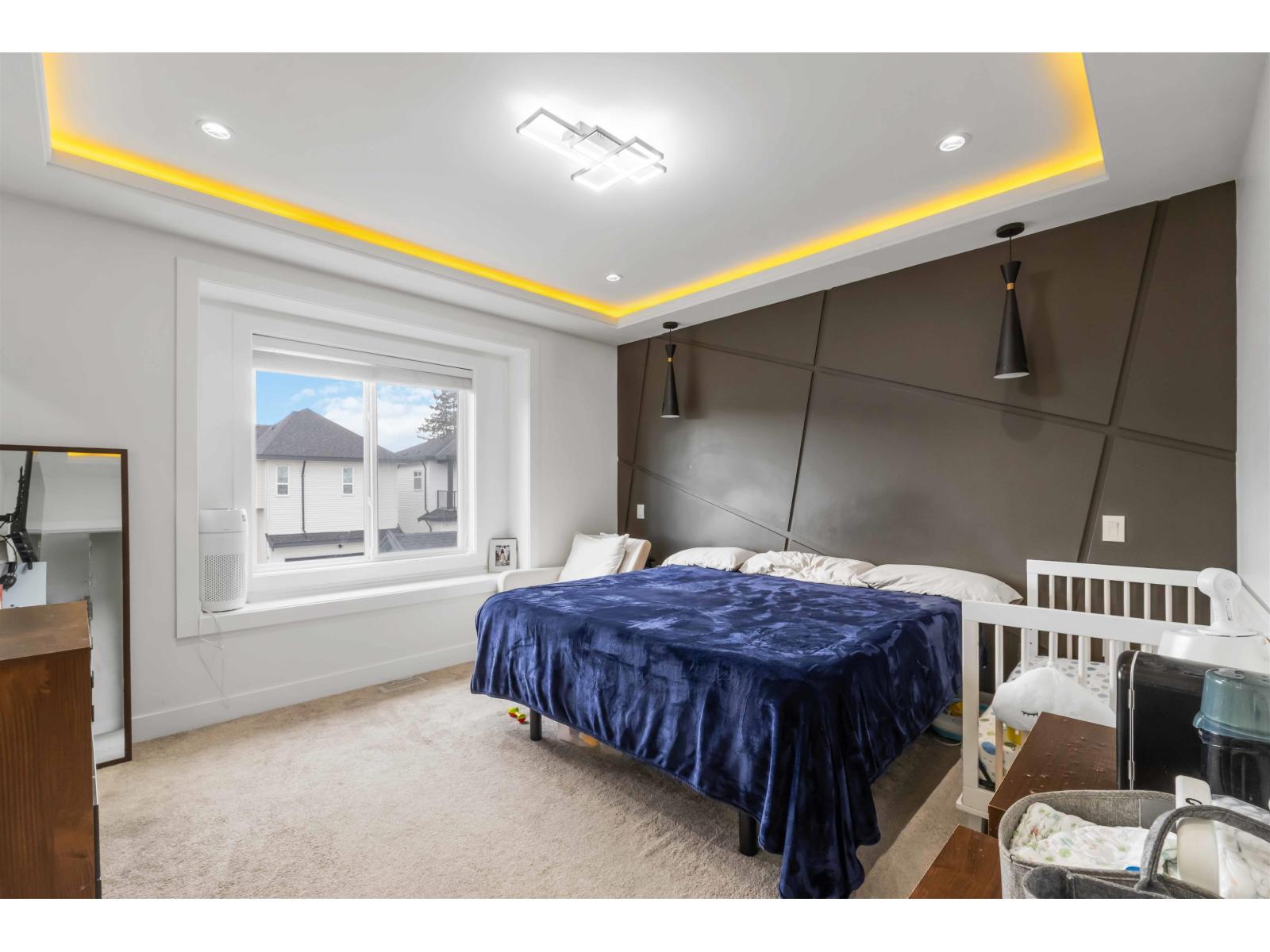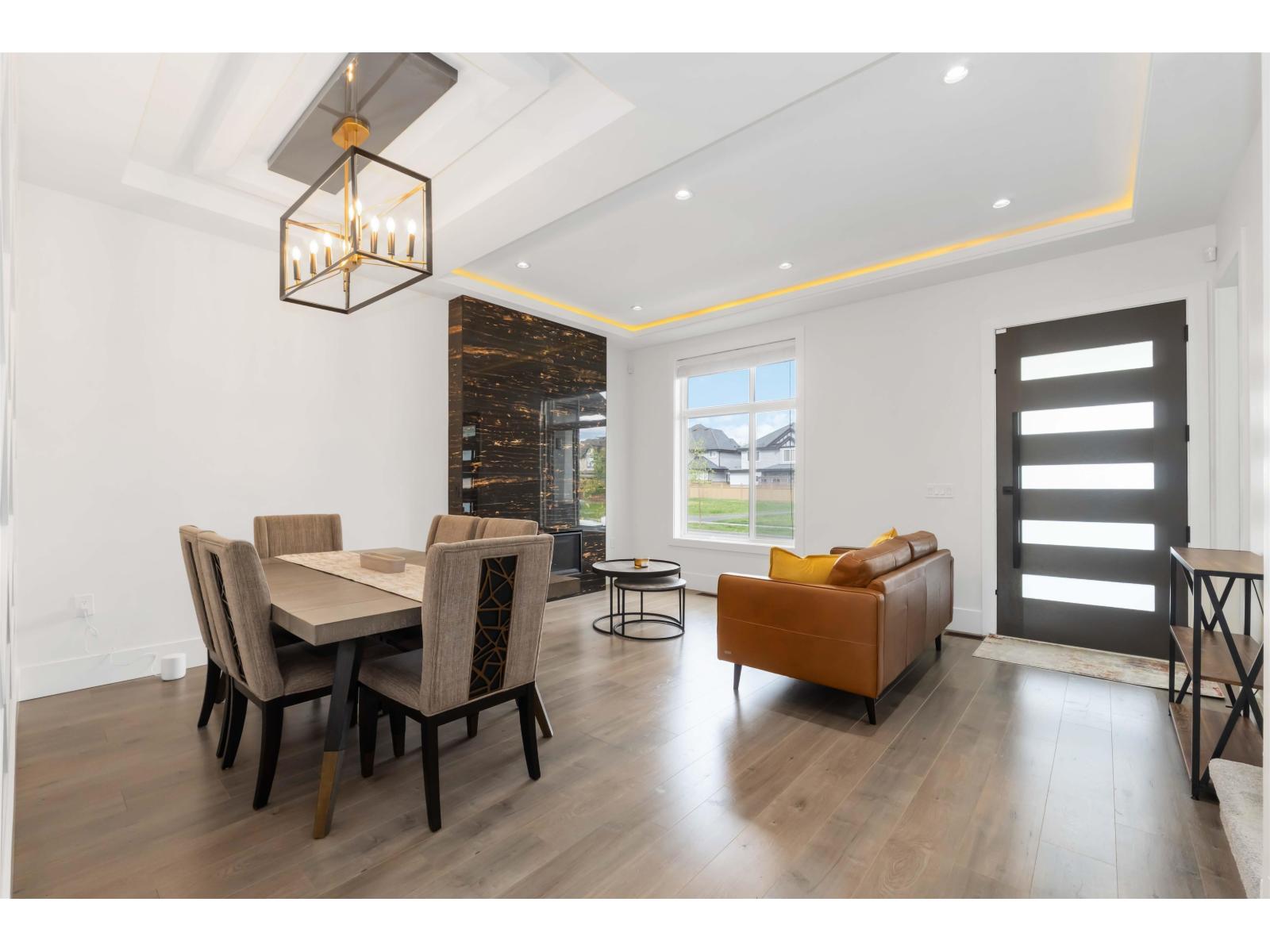 This stunning, like-new 3-level home in Clayton's most desirable area offers the perfect mix of style and function. With 4 spacious bedrooms and 3 full baths upstairs, plus a gourmet kitchen with a Wok Kitchen, it's designed for both luxury and everyday living. High ceilings and extra-large windows flood the space with natural light, while thoughtful touches like a gas and electric fireplace, security system, built-in vacuum, security systems and central air conditioning add comfort. A legal rental suite with in-suite laundry provides strong income potential. Private facing greenbelt with no houses directly in front! Conveniently located near top schools, skytrain development, major highways, and premier shopping. (id:44393)