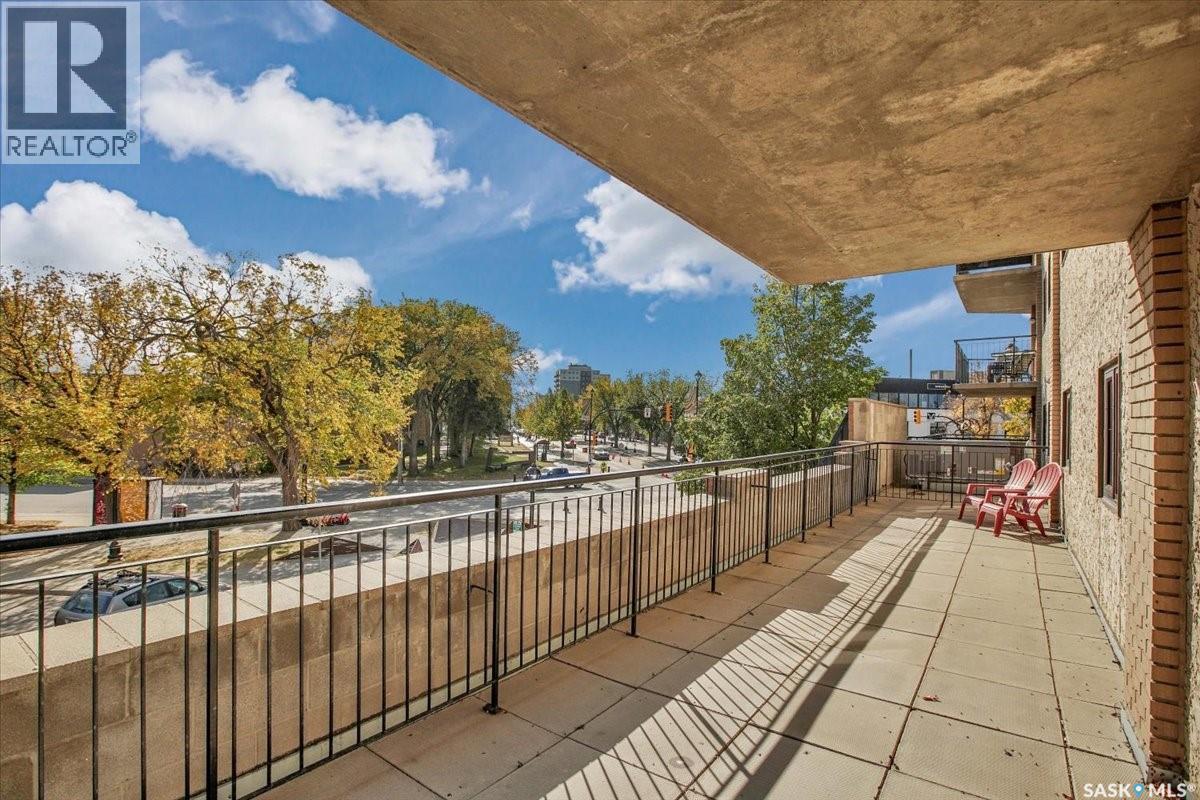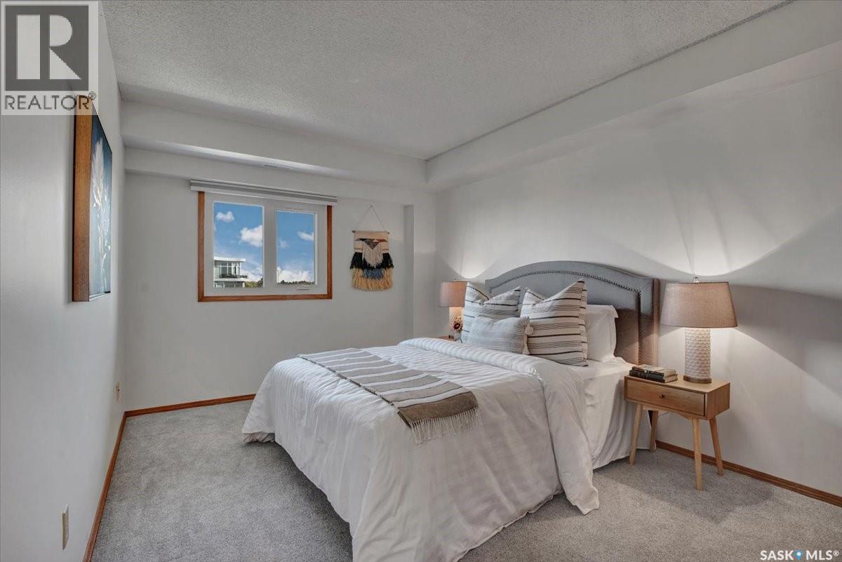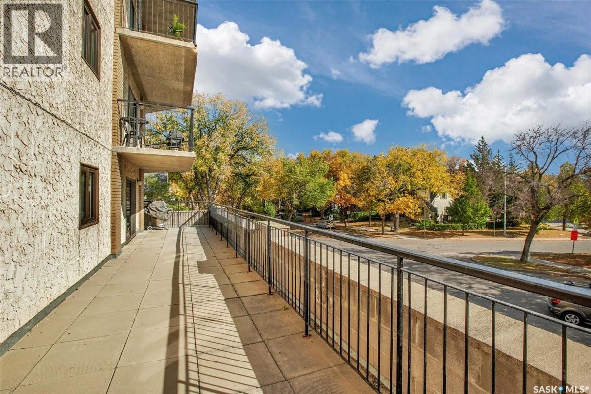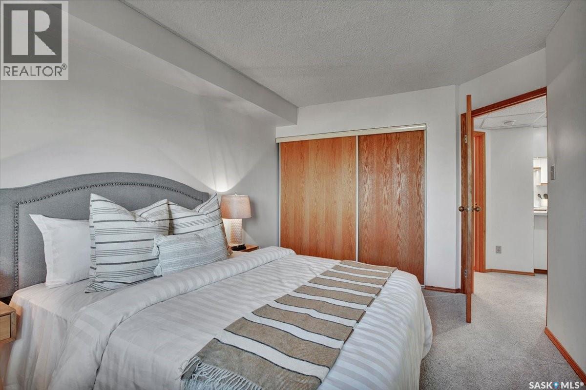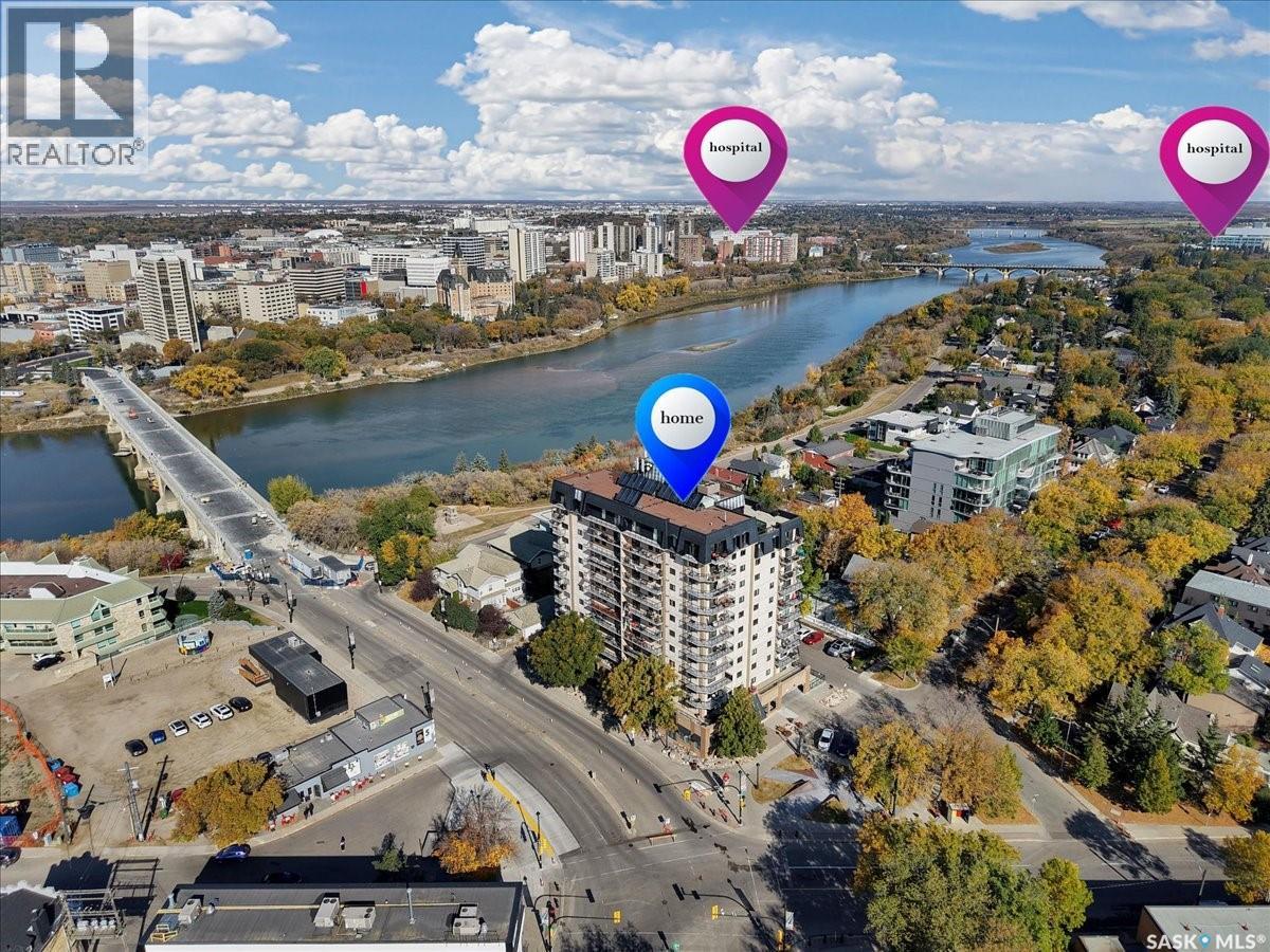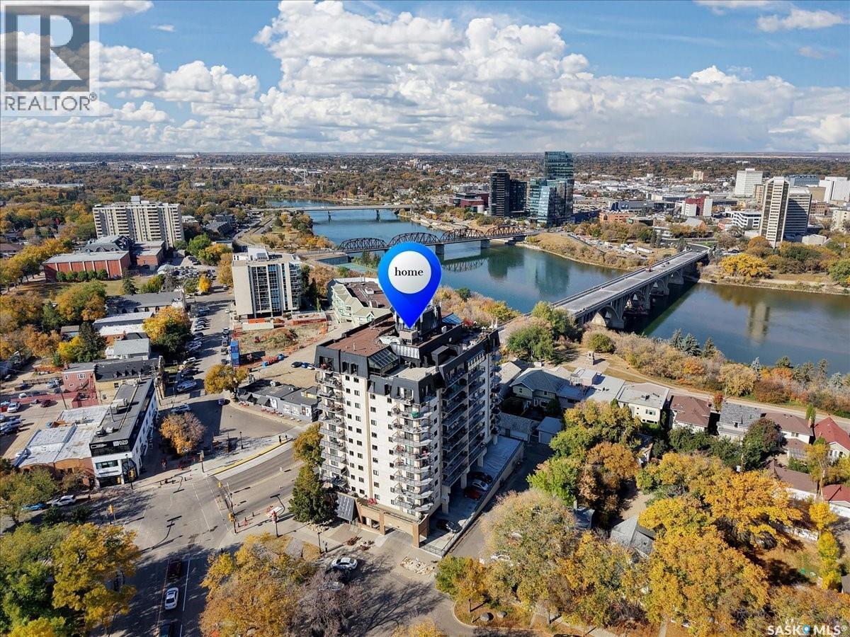 $533 MonthlyPerched on the 7th floor at the top of the iconic Broadway Bridge, this spacious 2-bedroom, 1-bathroom condo offers the ultimate blend of city living and riverside tranquility. Step out your door and you're moments away from the heart of downtown, where boutique shops, vibrant restaurants, and cozy cafes line the streets. Or head down Broadway itself, alive with pubs, live music, and eclectic local flair. Just beyond your balcony, the river glistens over the treetops—your own private view of Saskatoon’s scenic riverbank and all its walking trails. Inside, the generous living space opens up to a balcony that lets you soak in sweeping views of the water and skyline. Whether you're hosting a dinner in the dedicated dining room, unwinding in the large primary bedroom, or settling guests into the second bedroom, there's room to relax and recharge. The 4-piece bathroom offers both comfort and convenience, while the well-equipped kitchen is ready for your morning coffee or evening culinary adventures. When you're not enjoying the festivals and fairs just steps from your building, take advantage of the condo's amenities room—a great spot for gathering with friends, family, or fellow residents. Your unit also comes with one secure underground parking space, complete with a handy storage locker right in front. This is more than just a condo—it's a lifestyle at the center of everything. As per the Seller’s direction, all offers will be presented on 10/08/2025 1:00PM. (id:44393)