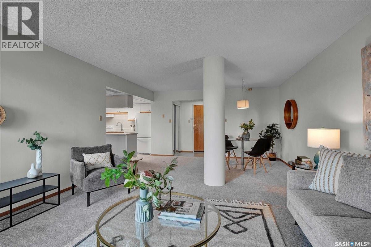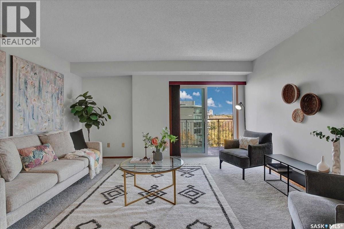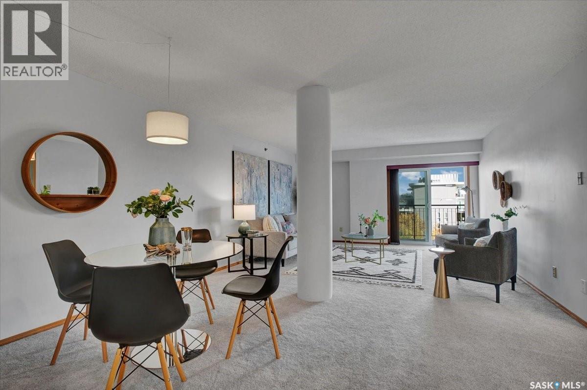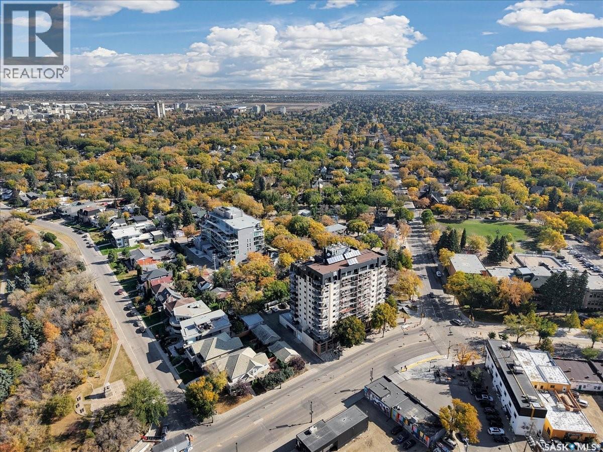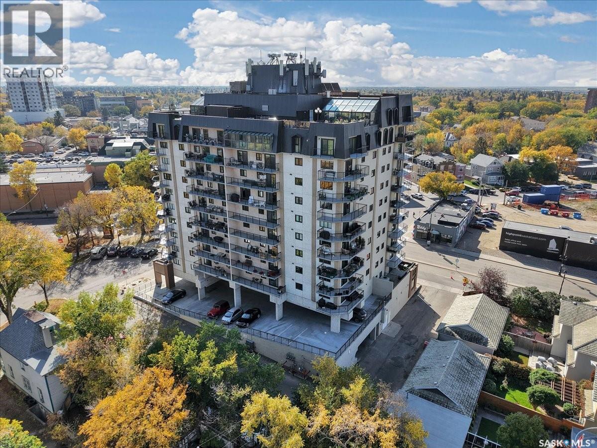 $533 MonthlyPerched on the 7th floor at the top of the iconic Broadway Bridge, this spacious 2-bedroom, 1-bathroom condo offers the ultimate blend of city living and riverside tranquility. Step out your door and you're moments away from the heart of downtown, where boutique shops, vibrant restaurants, and cozy cafes line the streets. Or head down Broadway itself, alive with pubs, live music, and eclectic local flair. Just beyond your balcony, the river glistens over the treetops—your own private view of Saskatoon’s scenic riverbank and all its walking trails. Inside, the generous living space opens up to a balcony that lets you soak in sweeping views of the water and skyline. Whether you're hosting a dinner in the dedicated dining room, unwinding in the large primary bedroom, or settling guests into the second bedroom, there's room to relax and recharge. The 4-piece bathroom offers both comfort and convenience, while the well-equipped kitchen is ready for your morning coffee or evening culinary adventures. When you're not enjoying the festivals and fairs just steps from your building, take advantage of the condo's amenities room—a great spot for gathering with friends, family, or fellow residents. Your unit also comes with one secure underground parking space, complete with a handy storage locker right in front. This is more than just a condo—it's a lifestyle at the center of everything. As per the Seller’s direction, all offers will be presented on 10/08/2025 1:00PM. (id:44393)