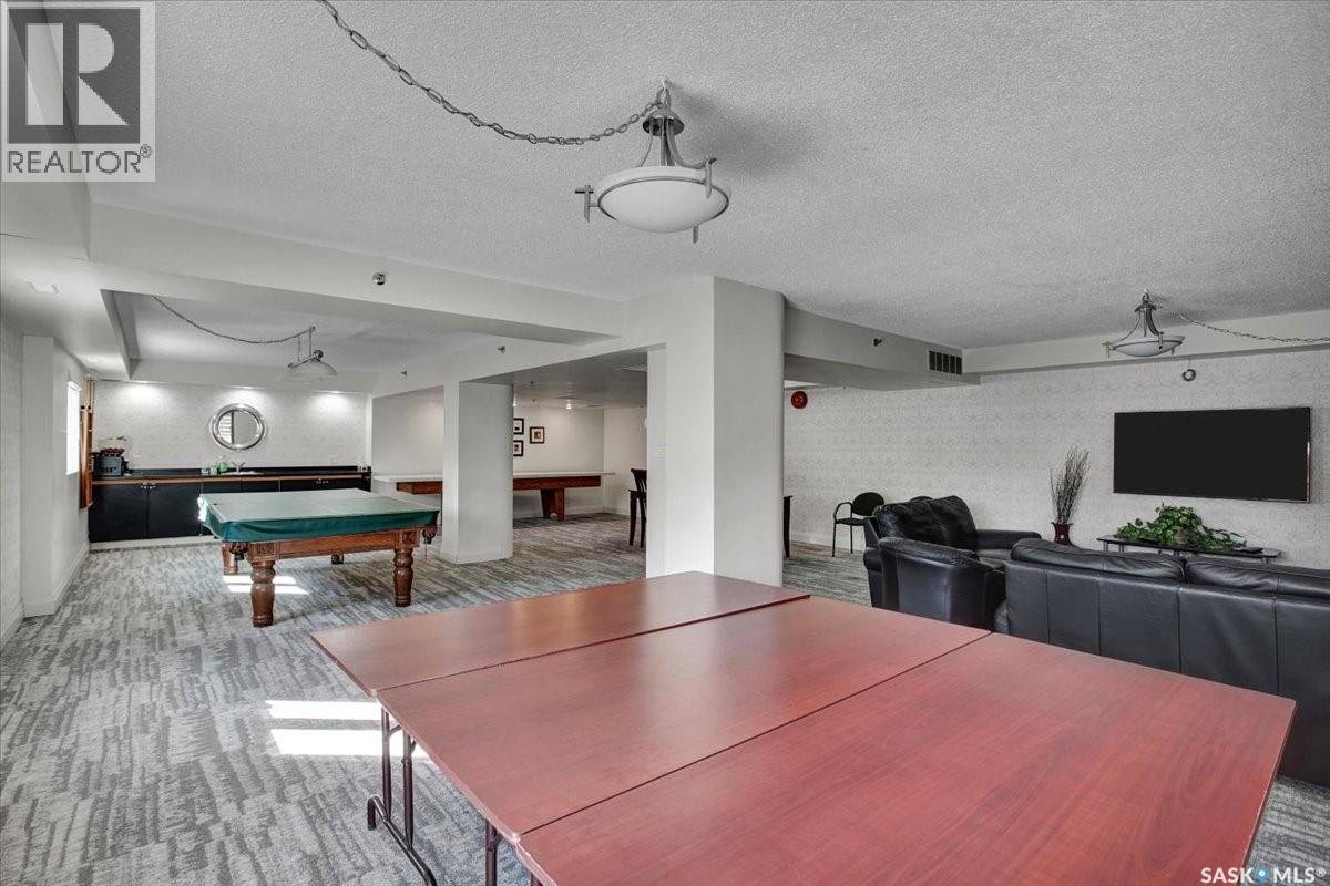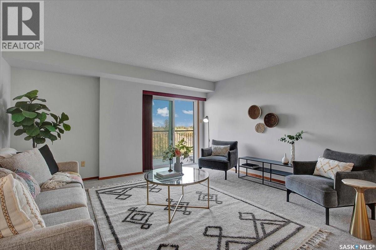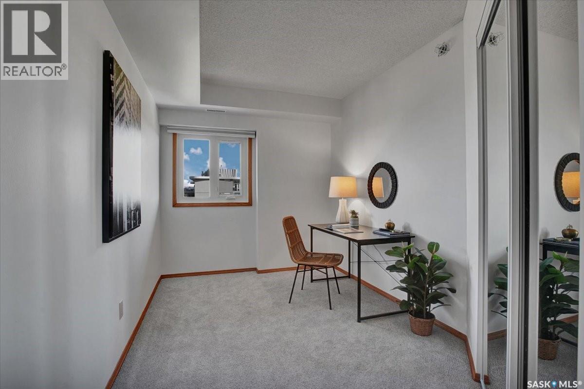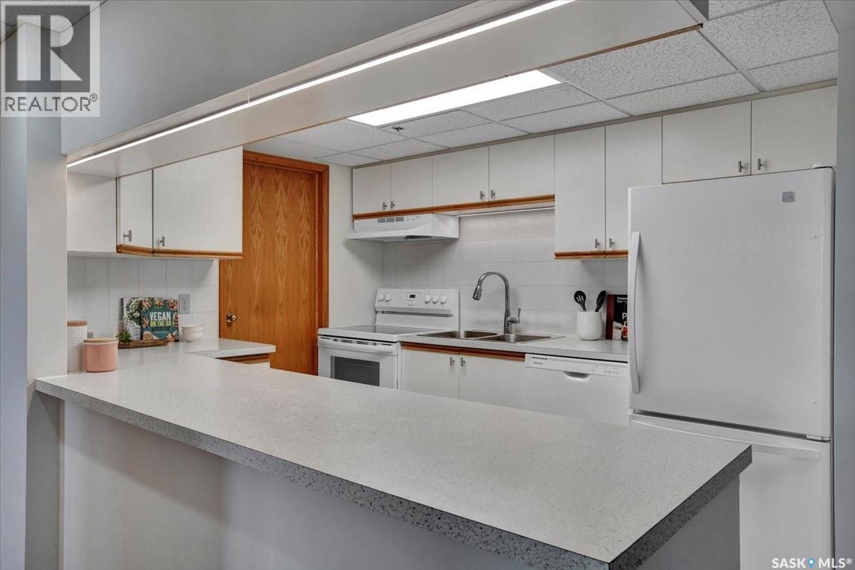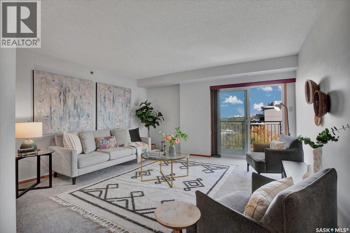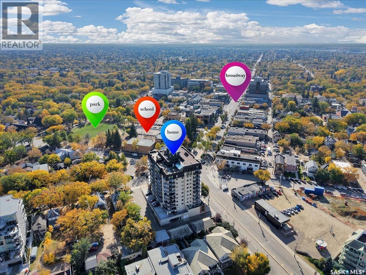 $533 MonthlyPerched on the 7th floor at the top of the iconic Broadway Bridge, this spacious 2-bedroom, 1-bathroom condo offers the ultimate blend of city living and riverside tranquility. Step out your door and you're moments away from the heart of downtown, where boutique shops, vibrant restaurants, and cozy cafes line the streets. Or head down Broadway itself, alive with pubs, live music, and eclectic local flair. Just beyond your balcony, the river glistens over the treetops—your own private view of Saskatoon’s scenic riverbank and all its walking trails. Inside, the generous living space opens up to a balcony that lets you soak in sweeping views of the water and skyline. Whether you're hosting a dinner in the dedicated dining room, unwinding in the large primary bedroom, or settling guests into the second bedroom, there's room to relax and recharge. The 4-piece bathroom offers both comfort and convenience, while the well-equipped kitchen is ready for your morning coffee or evening culinary adventures. When you're not enjoying the festivals and fairs just steps from your building, take advantage of the condo's amenities room—a great spot for gathering with friends, family, or fellow residents. Your unit also comes with one secure underground parking space, complete with a handy storage locker right in front. This is more than just a condo—it's a lifestyle at the center of everything. As per the Seller’s direction, all offers will be presented on 10/08/2025 1:00PM. (id:44393)