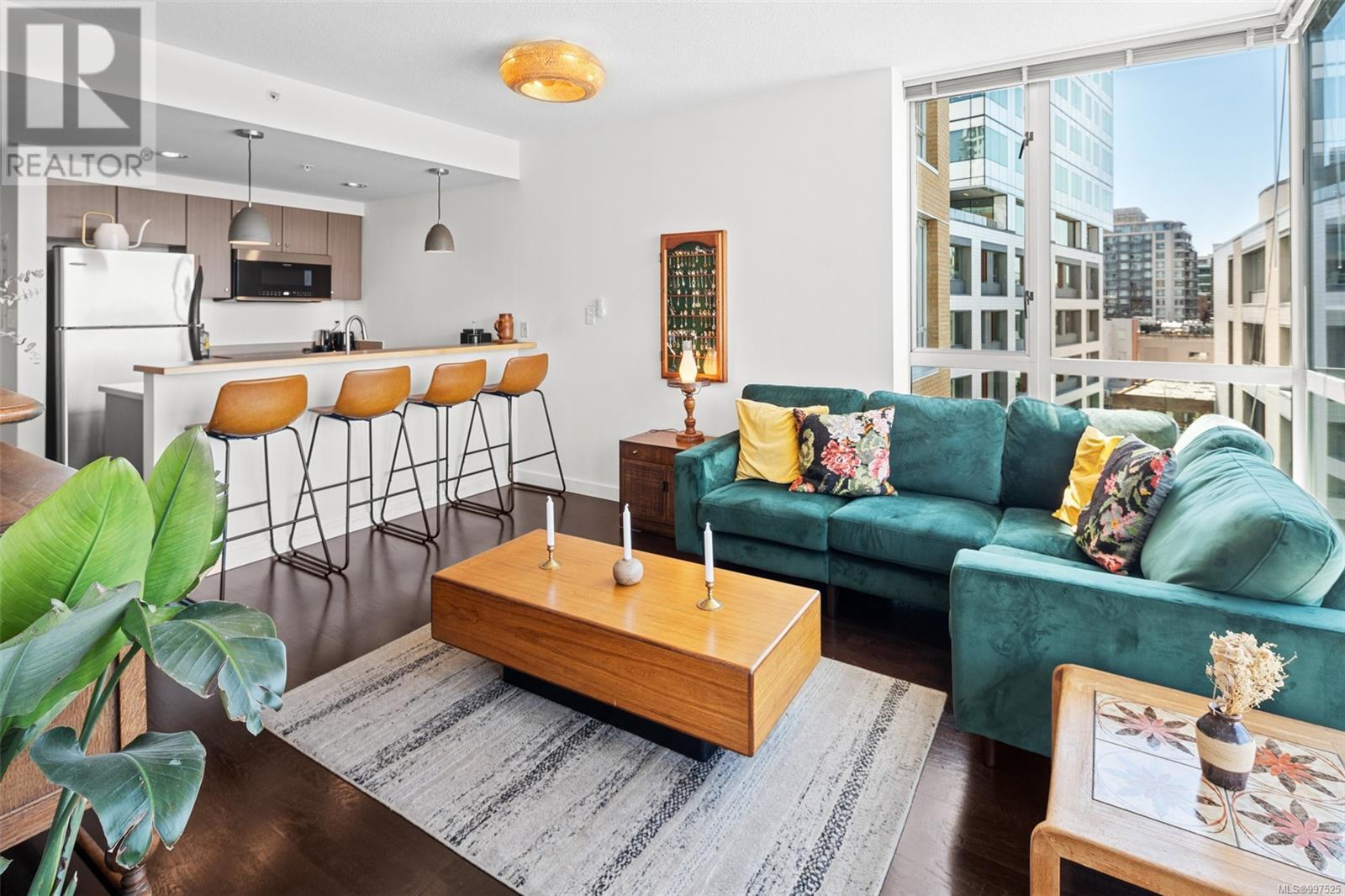 $322 MonthlyTerrific South West corner ONE BED and DEN condo with fantastic VIEWS of the inner harbour. The moment you enter this suite you will love the functional layout and views of the harbour from the massive floor to ceiling windows. Conveniently located on a quiet street in the heart of downtown, it's a quick walk to Chinatown, the harbour and all the shops you could ever need. This secure and solid STEEL & CONCRETE building has a luxurious feel and has a resident caretaker ensuring you always feel at home. There are rich hardwood floors, stainless steel appliances, breakfast bar with IN-SUITE LAUNDRY. It's pet friendly, allows rentals, all ages allowed, secure entry and has a UNDERGROUND SECURE PARKING space with additional storage. (id:44393)
