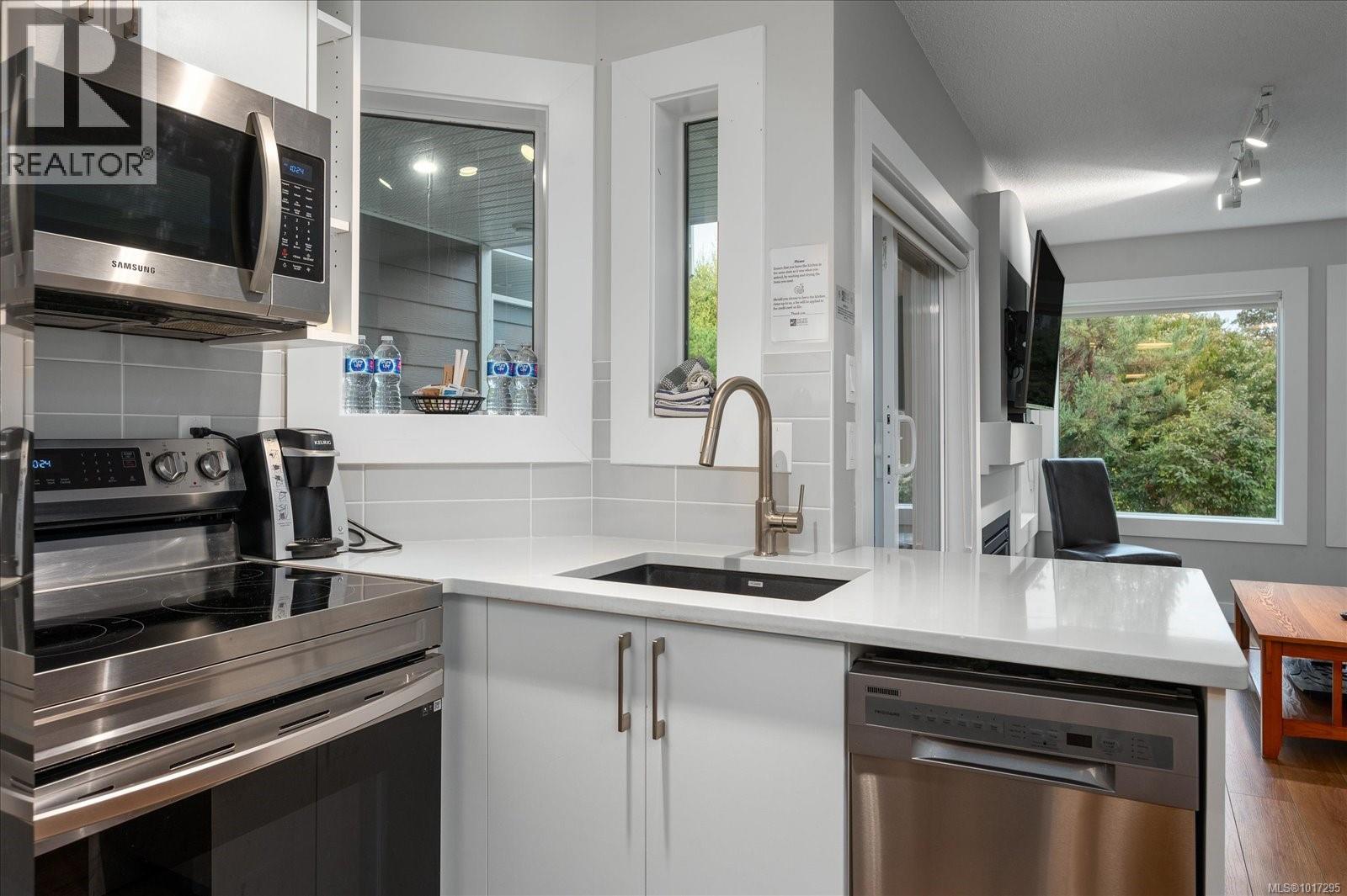 $568.65 MonthlyWelcome to Pacific Shores! This fully furnished 2 bed / 2 bath condo with a lock-off suite offers resort-style oceanfront living and is for sale as 100% freehold ownership. Located on the ground floor with picturesque garden access, the unit was updated in 2021 with a modern white/grey palette, bright quartz countertops, and a primary bedroom featuring a walk-in shower. Enjoy top-tier amenities: spa, indoor/outdoor pool, fitness centre, on-site restaurant with live entertainment, and private beach access. Zoned for primary residence, or long- and short-term rentals. F/S/W/D and all furniture included. Foreign buyer tax exempt. Ideal as a home, vacation retreat, or investment property. Book your showing today! Listing Agent is available on site, pls contact for any questions! (id:44393)