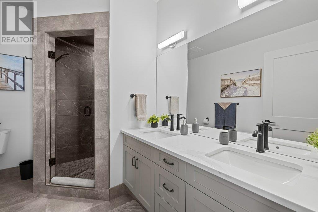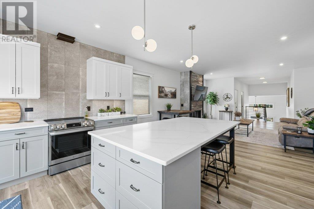 Spacious 3,420 sq. ft. grade-level entry home with a 1-bedroom legal suite, oversized garage and room in the backyard for a pool. The main floor features an open-concept living room with a cozy gas fireplace and access to a covered patio off the large, family-friendly kitchen with a work island and plenty of storage.. The primary bedroom includes a walk-in closet and 5-piece ensuite with double vanity, soaker tub, and separate shower. Two more bedrooms and a full bathroom, a convenient powder room and laundry area complete the main living space. Downstairs offers a rec room, additional bedroom, and full bath for the main house, plus an 845 sq. ft. legal suite with its own laundry and entrance—ideal for rental income or extended family. (id:44393)