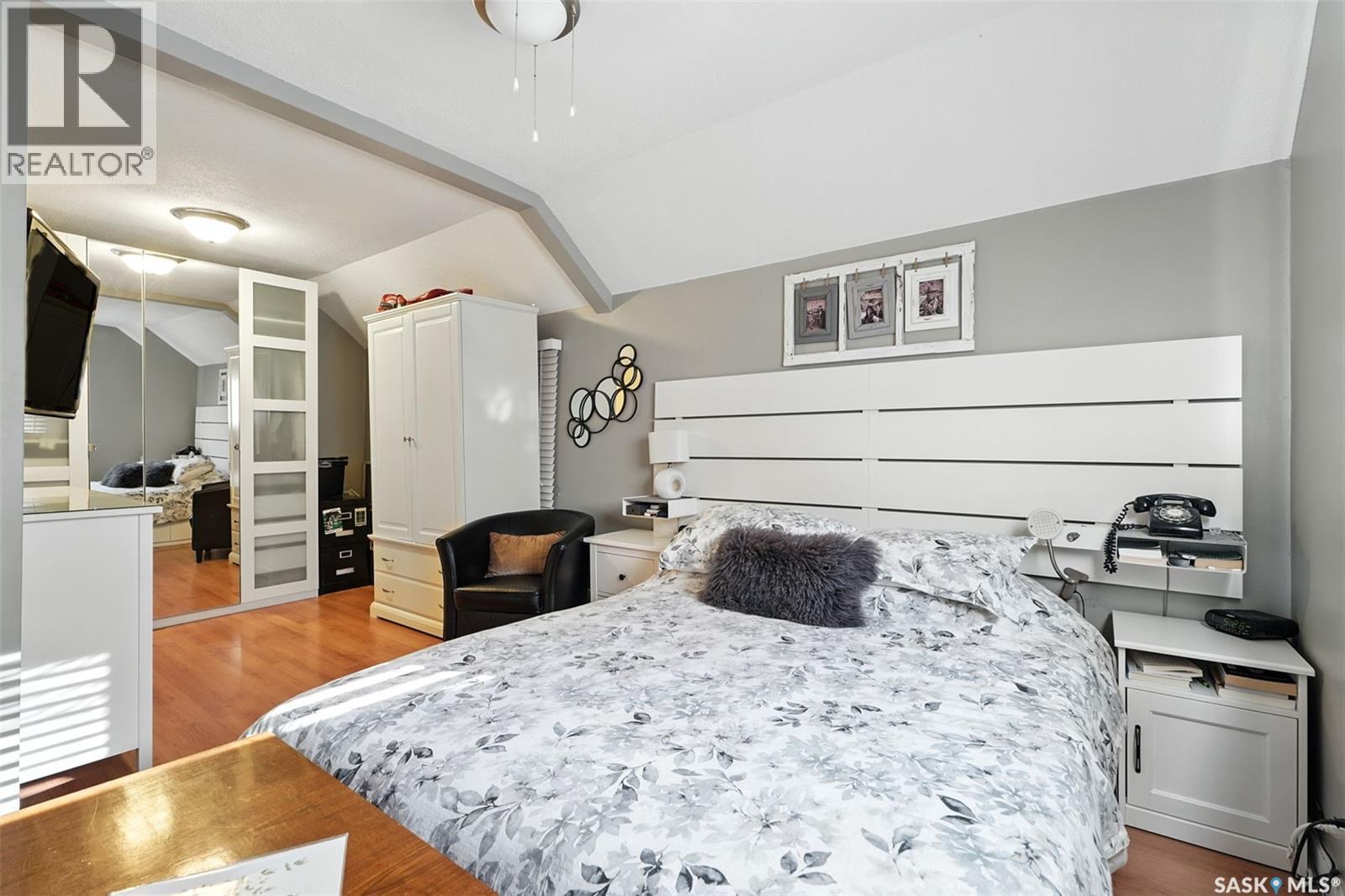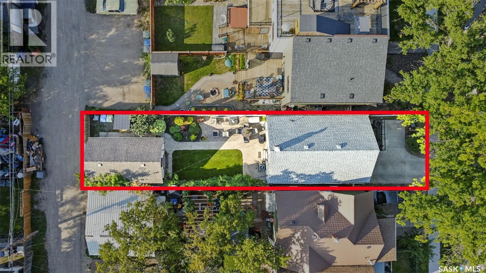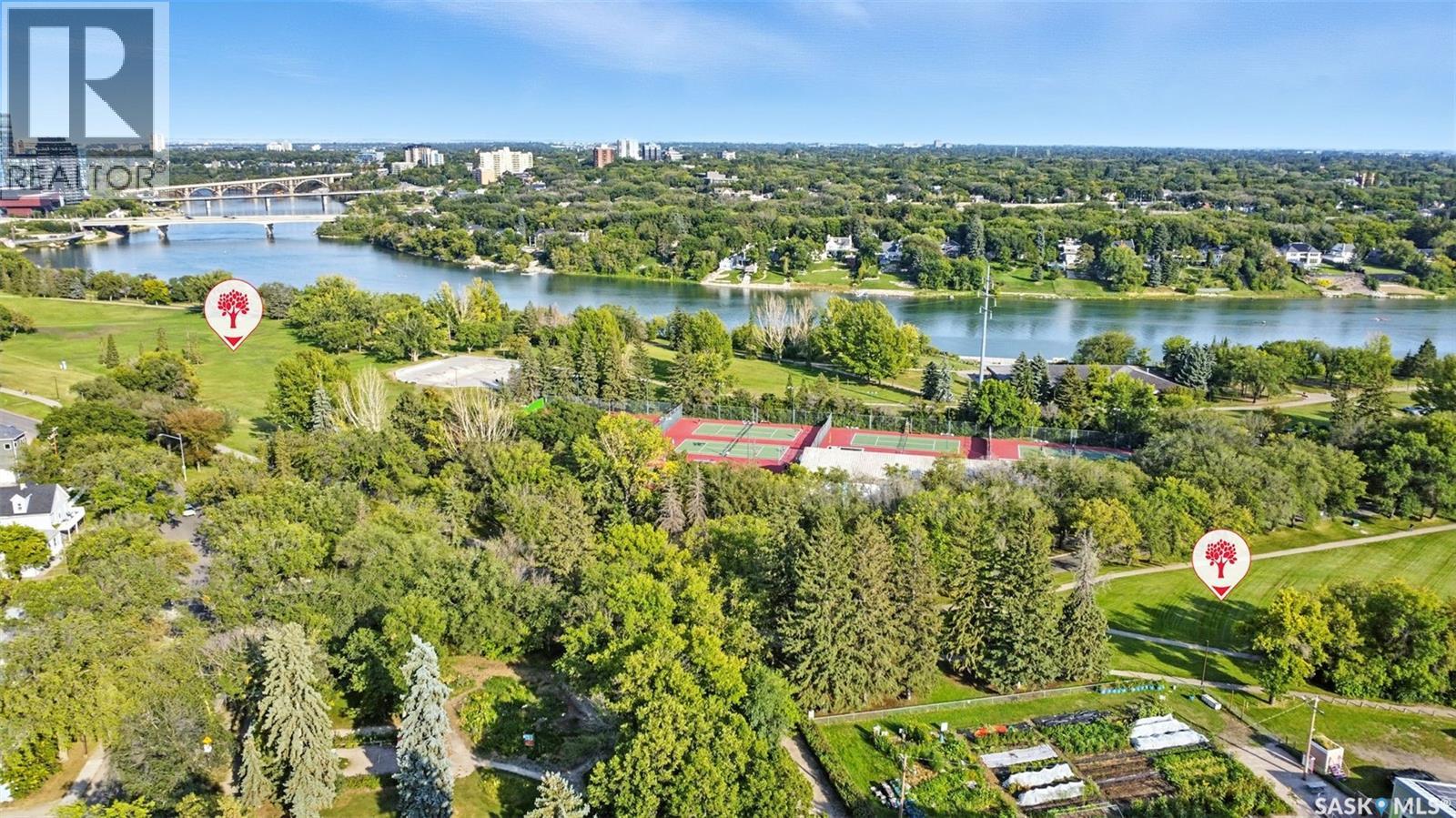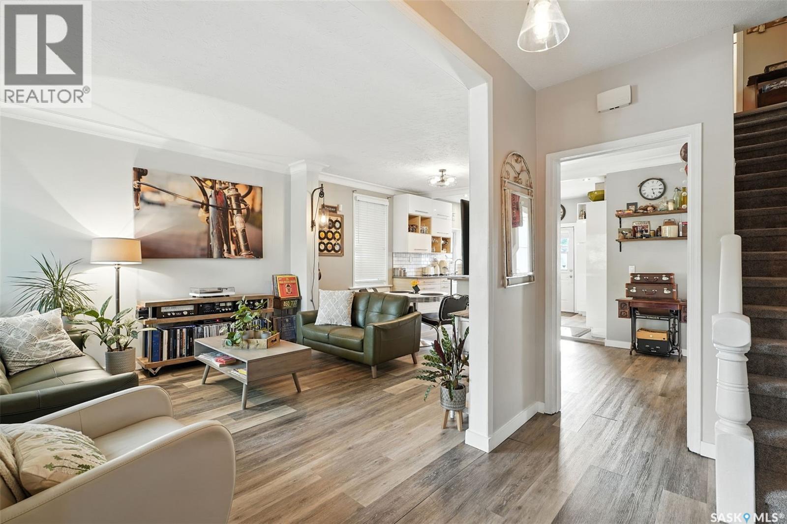 With Victoria Park as your front yard view, Saskatoon’s River Landing and the heart of downtown just a short stroll away, this thoughtfully renovated two-storey home blends timeless charm with modern comfort. Meticulous updates throughout speak to a level of ownership that has been both intentional and enduring. The main floor offers a welcoming front porch and continues into an inviting open-concept living and dining area with vinyl plank flooring throughout. The fully renovated kitchen is a standout, complete with high gloss cabinetry, subway tile backsplash, quartz countertops, and stainless steel appliances. A beautifully finished three-piece bathroom is located just off the kitchen, featuring a two-person soaker tub, updated vanity, modern lighting, and a water-efficient toilet. Upstairs, you’ll find three generously sized bedrooms and a well-appointed four-piece bathroom. The primary bedroom has been reimagined from two smaller rooms into one expansive retreat, offering exceptional space and versatility for storage or a private sitting area. The second bedroom offers access to the rooftop patio overlooking Victoria Park. The developed basement adds even more living space with a cozy family room featuring a wet bar, an open space for a studio, home gym, or flex space for your lifestyle needs. Enjoy a mechanical room with storage space and a dedicated laundry area. 100-amp electrical panel has been replaced in recent years and central air conditioning for cool comfort all summer long. Outdoors, the front yard is designed for low-maintenance living with a concrete driveway offering additional off street parking, while the backyard is fully fenced for privacy and features a patio, flower garden, and oversized detached garage for year round parking convenience. This property offers the rare combination of location, lifestyle, and move-in-ready updates—an ideal opportunity for those who value character, convenience, and quality. (id:44393)