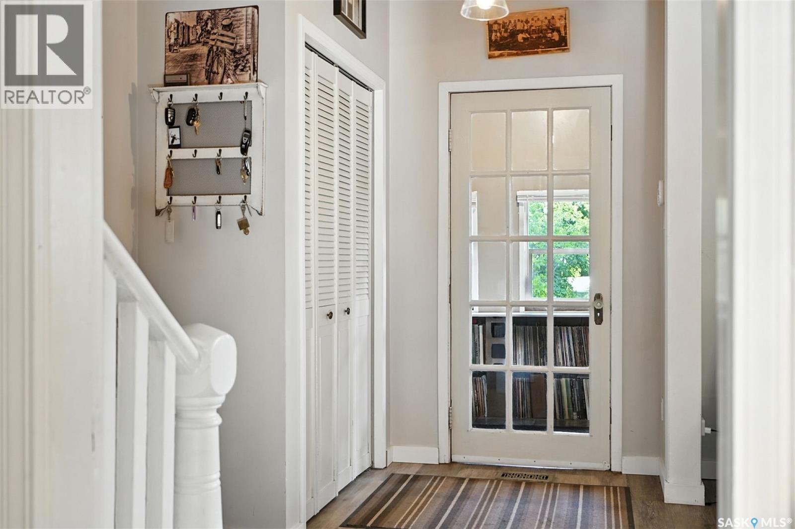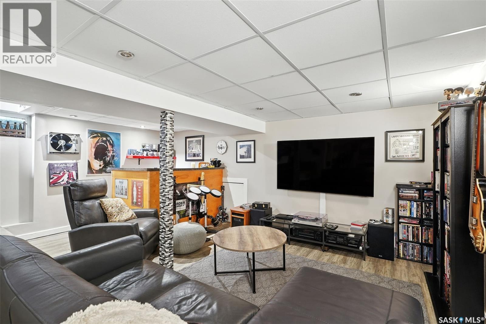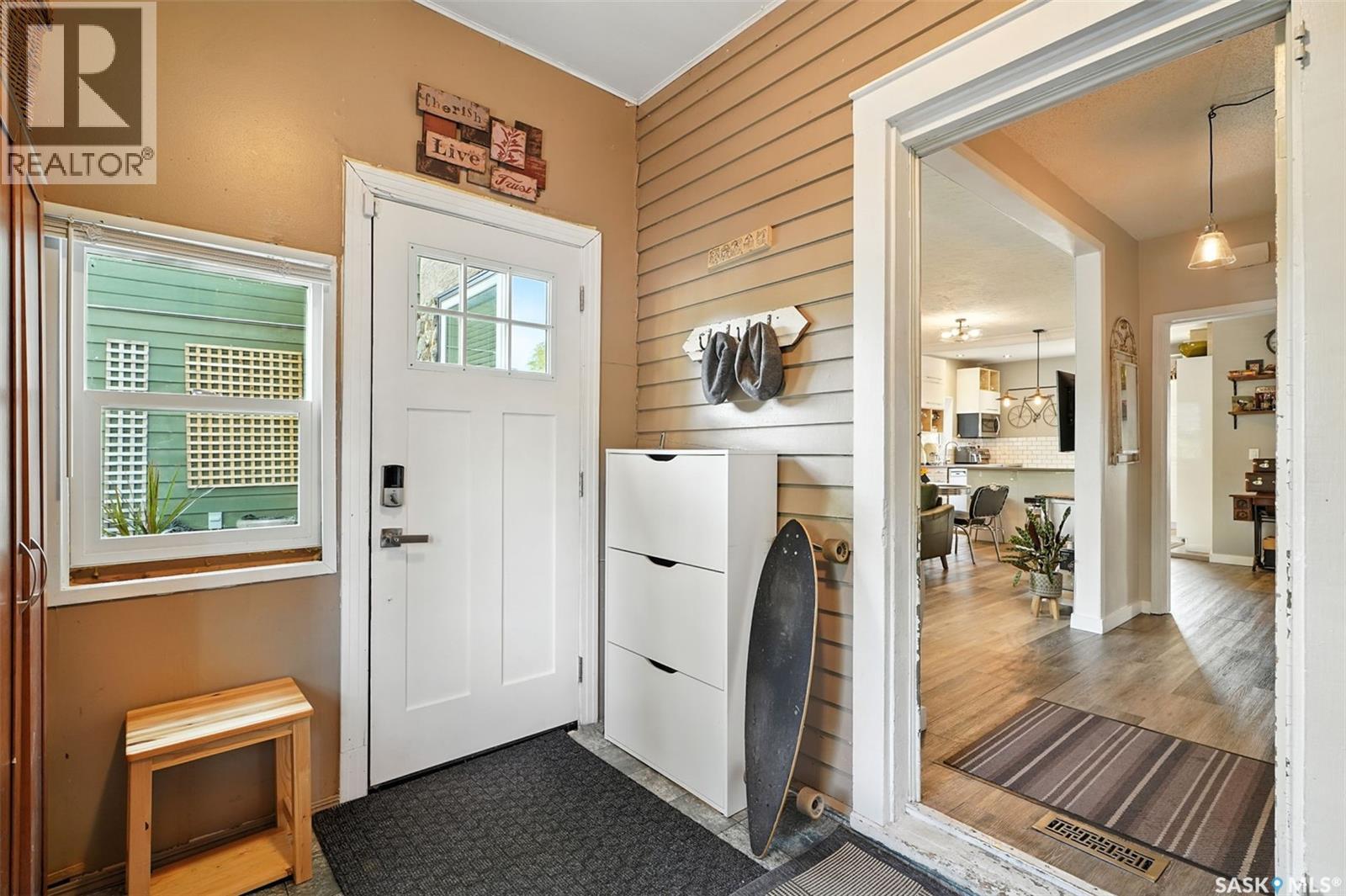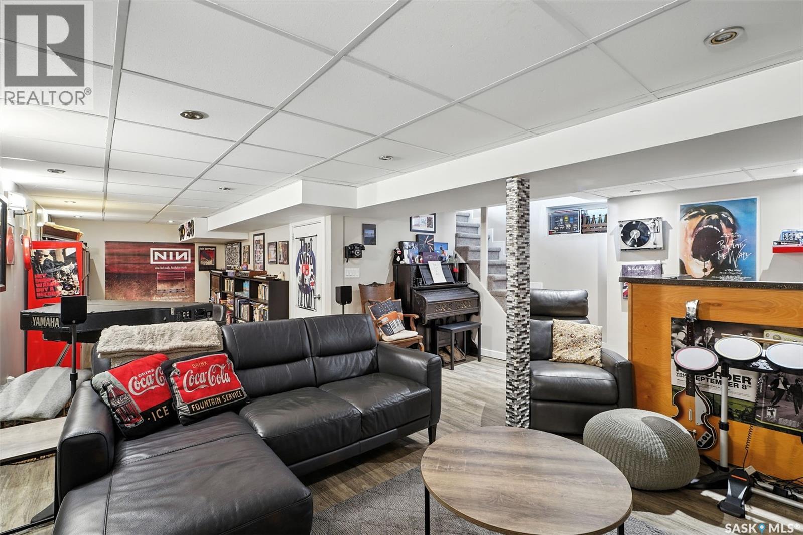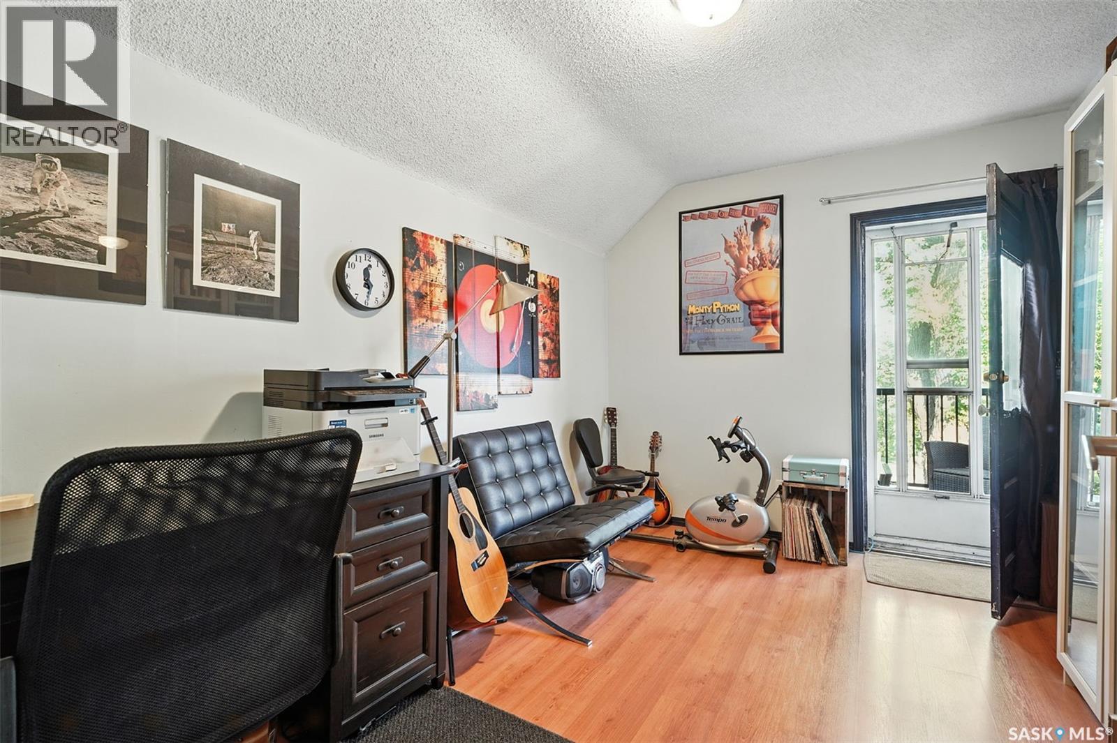 With Victoria Park as your front yard view, Saskatoon’s River Landing and the heart of downtown just a short stroll away, this thoughtfully renovated two-storey home blends timeless charm with modern comfort. Meticulous updates throughout speak to a level of ownership that has been both intentional and enduring. The main floor offers a welcoming front porch and continues into an inviting open-concept living and dining area with vinyl plank flooring throughout. The fully renovated kitchen is a standout, complete with high gloss cabinetry, subway tile backsplash, quartz countertops, and stainless steel appliances. A beautifully finished three-piece bathroom is located just off the kitchen, featuring a two-person soaker tub, updated vanity, modern lighting, and a water-efficient toilet. Upstairs, you’ll find three generously sized bedrooms and a well-appointed four-piece bathroom. The primary bedroom has been reimagined from two smaller rooms into one expansive retreat, offering exceptional space and versatility for storage or a private sitting area. The second bedroom offers access to the rooftop patio overlooking Victoria Park. The developed basement adds even more living space with a cozy family room featuring a wet bar, an open space for a studio, home gym, or flex space for your lifestyle needs. Enjoy a mechanical room with storage space and a dedicated laundry area. 100-amp electrical panel has been replaced in recent years and central air conditioning for cool comfort all summer long. Outdoors, the front yard is designed for low-maintenance living with a concrete driveway offering additional off street parking, while the backyard is fully fenced for privacy and features a patio, flower garden, and oversized detached garage for year round parking convenience. This property offers the rare combination of location, lifestyle, and move-in-ready updates—an ideal opportunity for those who value character, convenience, and quality. (id:44393)