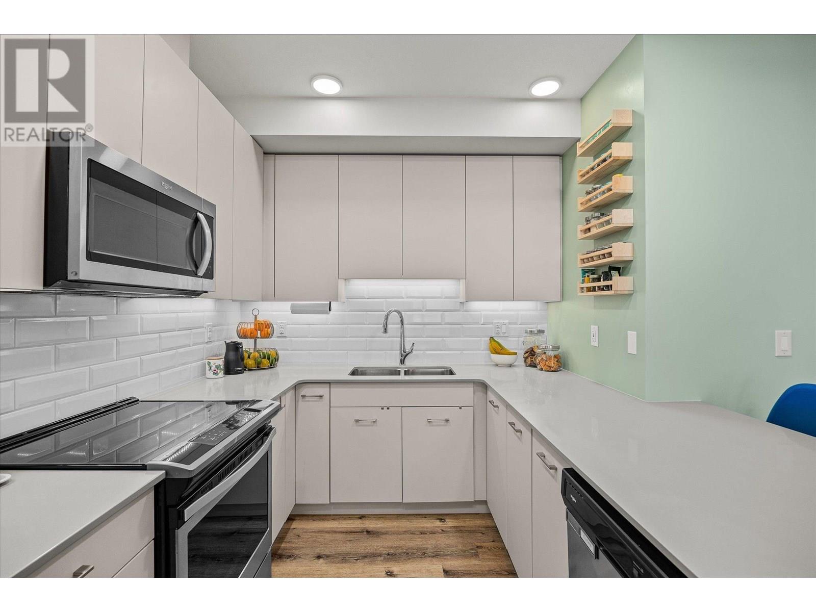 $379.61 MonthlyModern Glenmore condo with TWO Storage Lockers and one underground parking stall. Exceptional Value! Welcome to urban living in the heart of Kelowna’s highly sought-after Glenmore neighbourhood. This beautifully built 2019 2-bedroom, 2-bathroom condo features a rare split-bedroom floor plan, ideal for privacy and functionality. West-facing, the spacious balcony is the perfect spot to unwind and soak in stunning Okanagan sunsets and summer sunshine. Inside, the home shines with modern design touches—fresh paint, upgraded light fixtures, and white quartz countertops that elevate the open-concept kitchen, complete with sleek Whirlpool stainless steel appliances. Pets are welcome, NO size restrictions. This lifestyle-focused building offers unbeatable amenities: Again, one underground parking stall, two full-size storage lockers, an expansive rooftop patio with panoramic views, a community kitchen, dining area & meeting room, bike storage & repair station, and a dog wash station. Located just minutes from downtown Kelowna, UBCO, and across the street from transit, shopping, dining, parks, and close to the upcoming new Parkinson Recreation Centre, this is central living at its best. Whether you’re a young professional, downsizer, or investor, this condo checks every box, and then some. Don’t miss your chance! Homes with this much value and this location don’t last long. Book your showing today! (id:44393)