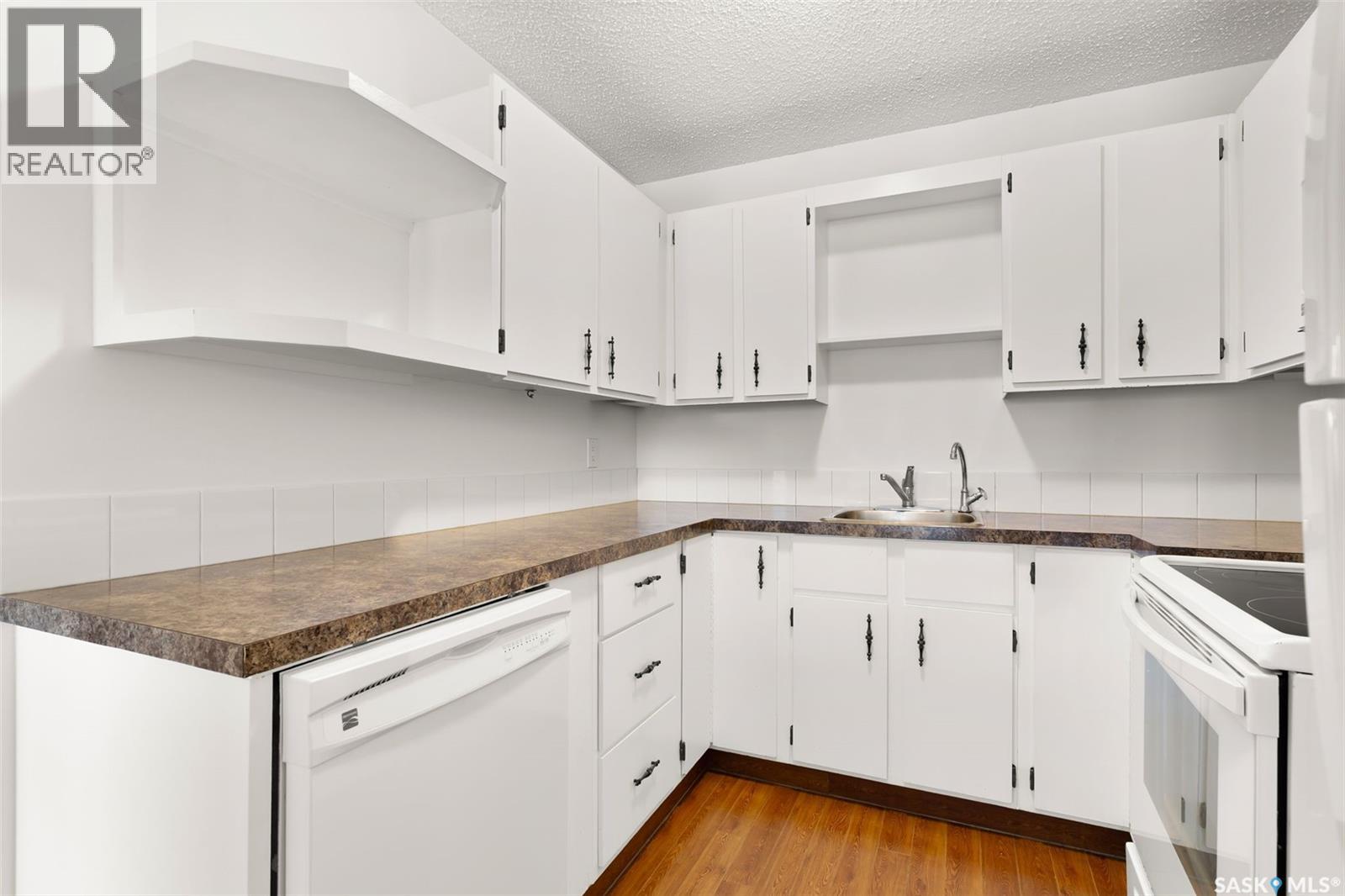 $276.12 MonthlyWelcome to Sherwood Estates! This charming upper-level corner condo offers comfort, convenience, and exceptional value in a quiet, garden-style complex. Ideally located near all Northwest amenities and schools, this affordable home is perfect for first-time buyers, students, or anyone seeking low-maintenance living. Step onto the spacious, sun-filled deck that leads to your private entrance. Inside, you’ll find a bright and functional open-concept living space with durable laminate flooring throughout for a modern, seamless look and easy cleaning. The kitchen is practical and includes a full appliance package, while the adjoining dining area comfortably fits you and your guests for casual meals or cozy gatherings. Two generous bedrooms offer great closet space and plenty of natural light from the south-facing windows. The four-piece bathroom features a classic laminate countertop and clean design. Additional conveniences include in-suite laundry with washer, dryer, and an owned water heater. Dryer vent professionally cleaned in the summer. This unit offers central air for comfort in those hot summer months! Enjoy extra outdoor storage off the deck—perfect for seasonal items—and one designated parking stall in the south lot. Pet-friendly (with restrictions), this well-kept unit is move-in ready and waiting for its new owners. Functional, affordable, and filled with natural light—don’t miss your opportunity to call this condo home! (id:44393)