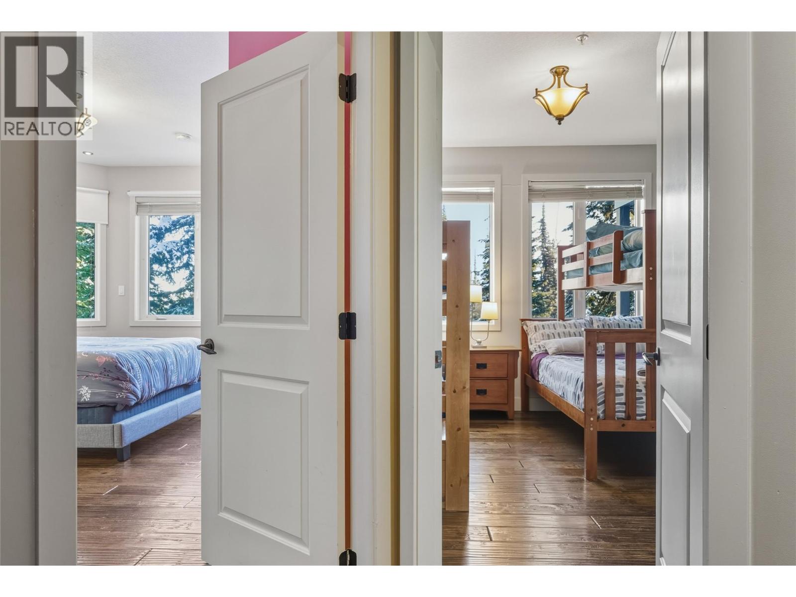 Positioned on the Knoll, one of Silver Star’s most desirable locations, this 6-bedroom, 5-bathroom home offers ski-out access, two fully independent living spaces, and ample on-site parking, a true rarity on the mountain. Built in 2004, the property captures sweeping views of the Monashee Mountains and delivers year-round alpine appeal. The main residence spans two floors featuring four bedrooms. The main floor includes a spacious kitchen, bright living room with cozy wood stove, one bedroom, a half bath, and direct access to the garage for seamless winter entry and gear storage. Below the main floor are three additional bedrooms including a generous primary suite with a large ensuite and walk-in closet. The basement level hosts a fully self-contained two-bedroom suite with its own private entrance and separate driveway, a standout feature that enhances privacy and rental flexibility. Ideal for extended family, guests, or income potential, the suite operates entirely independently from the main home. With two driveways and a garage, the property offers exceptional parking capacity seldom found at Silver Star, comfortably accommodating multiple vehicles and supporting multi-family use or rental logistics with ease. Whether you’re seeking a spacious four-bedroom mountain home with a private two-bedroom suite or flexible six-bedroom property designed for shared ownership or income, this residence delivers space, separation, ski access, and mountain views in one complete package. (id:44393)
