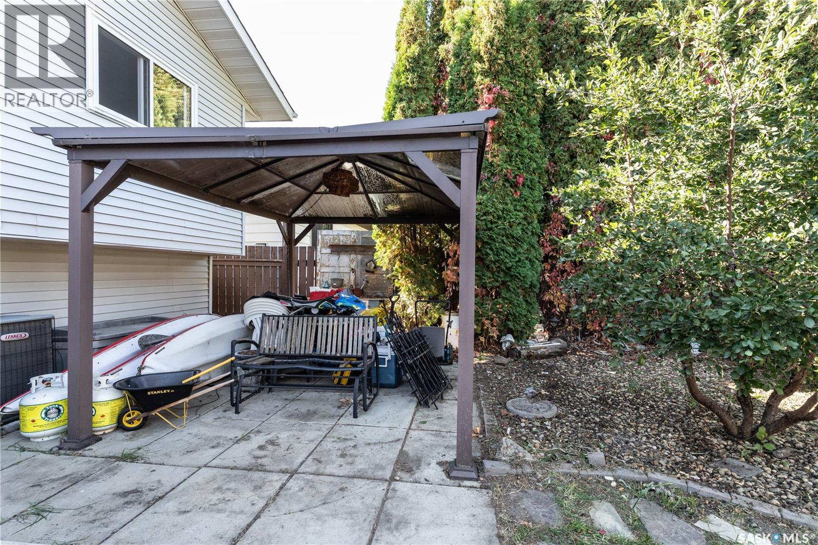 Welcome to this charming 4-level split nestled on a quiet street in Confederation Park. This bright and inviting 3 bedroom, 2 bathroom home has been thoughtfully updated with some fresh paint, as well as brand new Ecoline windows, furnace, water heater and humidifier-all done in 2025! The shingles are around 6 years old as the current owner believes they were done in 2019.The backyard is a private oasis featuring mature peach, cherry and apple trees, plus a gazebo on the patio, perfect for summer evenings. In the front yard, you'll enjoy established strawberry plants that add to the home's unique charm. With it's functional layout, modern updates, and well-established yard, this property offers comfort and convenience in a family-friendly location. Call today to view in person! (id:44393)