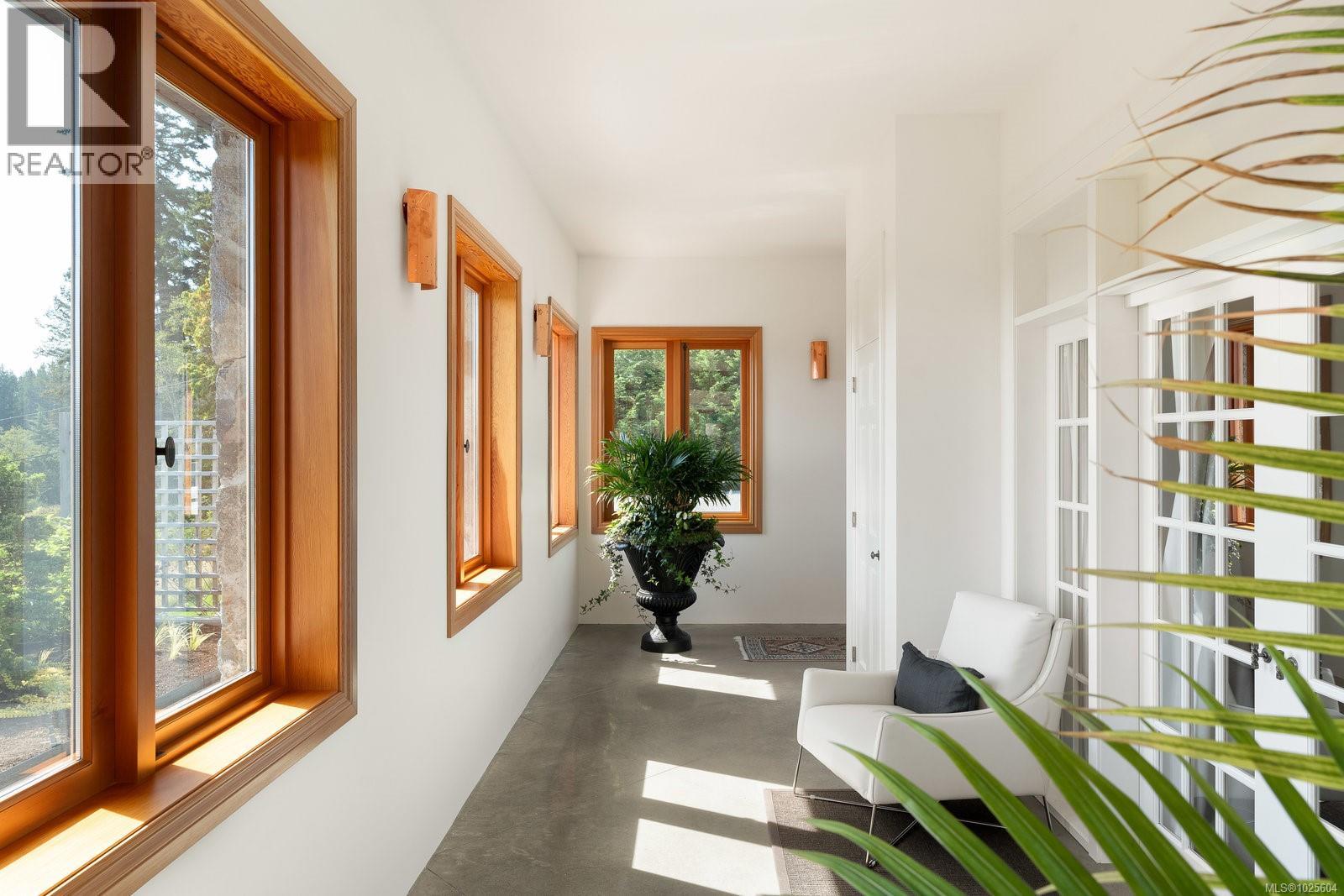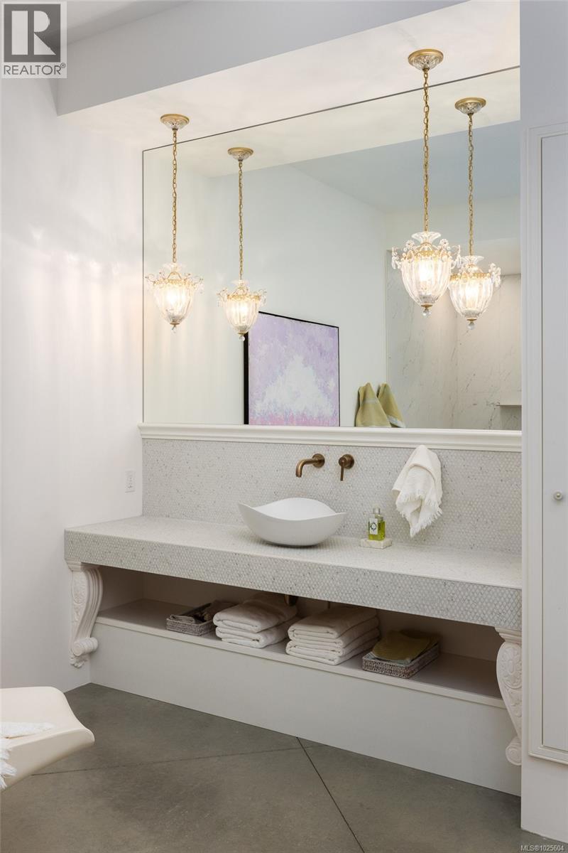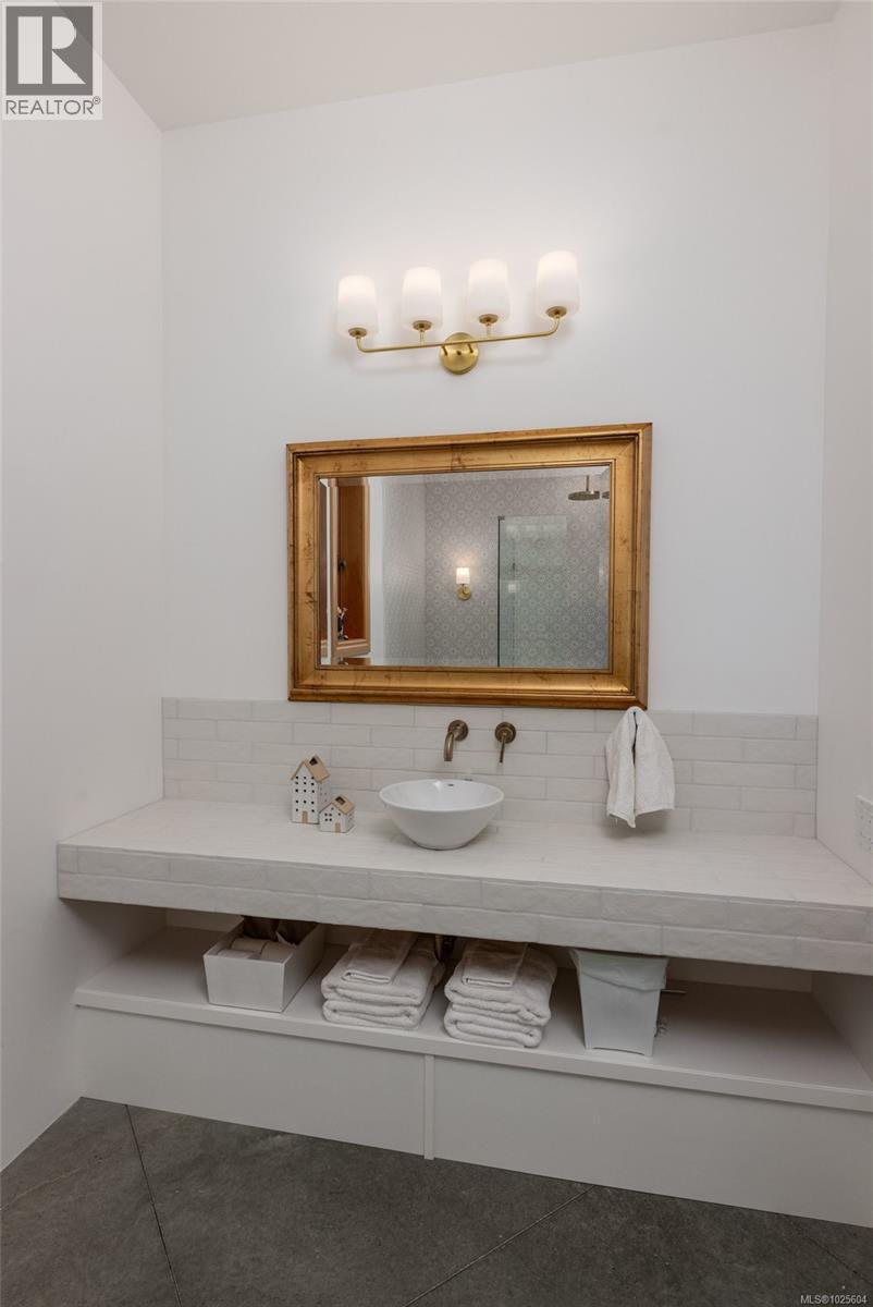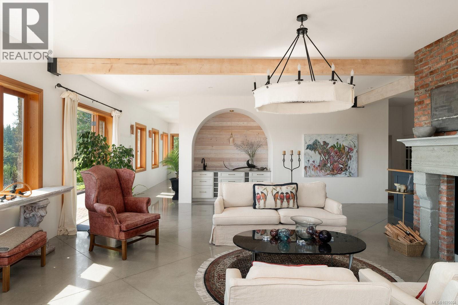 Nestled on 2.4 acres of gently rolling hillside, this exceptional Metchosin estate combines a spacious 4,000 plus square foot single-level home with a 1,380 square foot detached building featuring an art studio complete with its own bathroom, plus a workshop and garage. The exterior reflects timeless French provincial elegance, with a granite façade, wrought iron detailing, and a concrete water feature that immediately signals the level of craftsmanship inside. Inside, the home blends warmth with artistry. Polished concrete floors, exposed ceiling beams, reclaimed brick accents, and inlaid wood detailing create a layered, inviting atmosphere rarely seen in modern construction. The expansive great room is centered around a bespoke fireplace and opens to the patio through multiple custom French doors, making it ideal for both entertaining and everyday living. The kitchen is thoughtfully designed, featuring a dedicated prep area that complements the main cooking space for convenience and functionality. The primary suite provides a serene retreat, offering comfort and privacy for even the most discerning homeowner. Geothermal heating enhances energy efficiency and lowers the home’s environmental impact. From every vantage point, the property offers sweeping vistas across Haro Strait to the Olympic Mountains, providing a dramatic and inspiring natural backdrop to this one-of-a-kind estate. (id:44393)