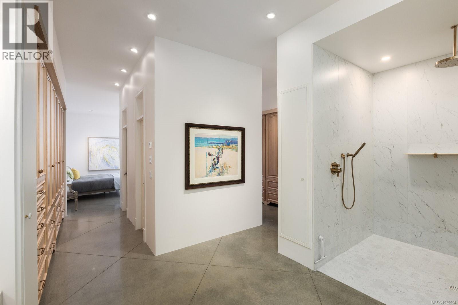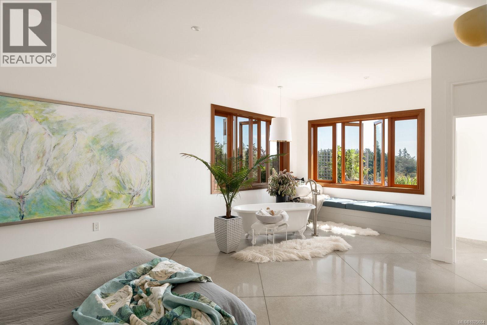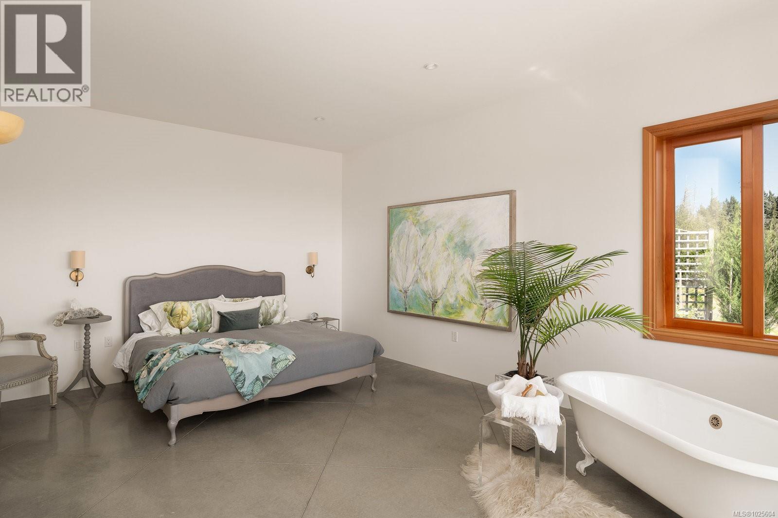 Nestled on 2.4 acres of gently rolling hillside, this exceptional Metchosin estate combines a spacious 4,000 plus square foot single-level home with a 1,380 square foot detached building featuring an art studio complete with its own bathroom, plus a workshop and garage. The exterior reflects timeless French provincial elegance, with a granite façade, wrought iron detailing, and a concrete water feature that immediately signals the level of craftsmanship inside. Inside, the home blends warmth with artistry. Polished concrete floors, exposed ceiling beams, reclaimed brick accents, and inlaid wood detailing create a layered, inviting atmosphere rarely seen in modern construction. The expansive great room is centered around a bespoke fireplace and opens to the patio through multiple custom French doors, making it ideal for both entertaining and everyday living. The kitchen is thoughtfully designed, featuring a dedicated prep area that complements the main cooking space for convenience and functionality. The primary suite provides a serene retreat, offering comfort and privacy for even the most discerning homeowner. Geothermal heating enhances energy efficiency and lowers the home’s environmental impact. From every vantage point, the property offers sweeping vistas across Haro Strait to the Olympic Mountains, providing a dramatic and inspiring natural backdrop to this one-of-a-kind estate. (id:44393)