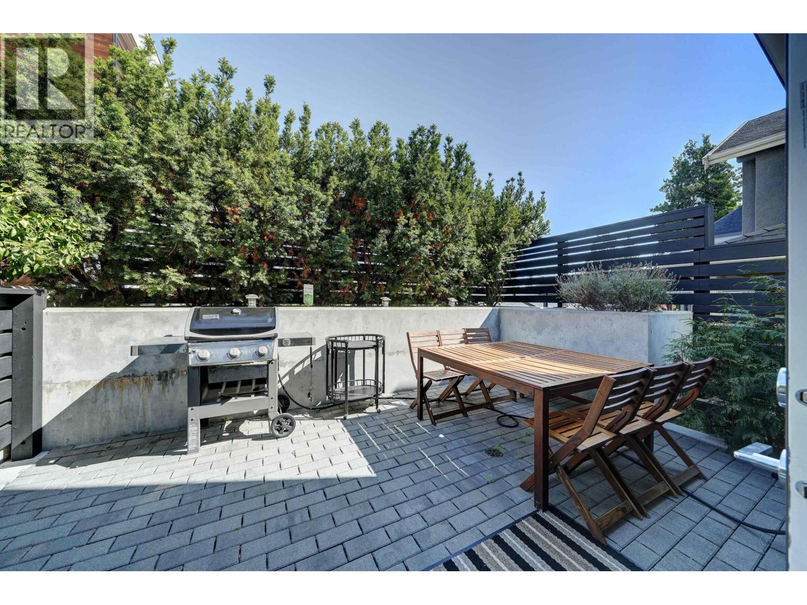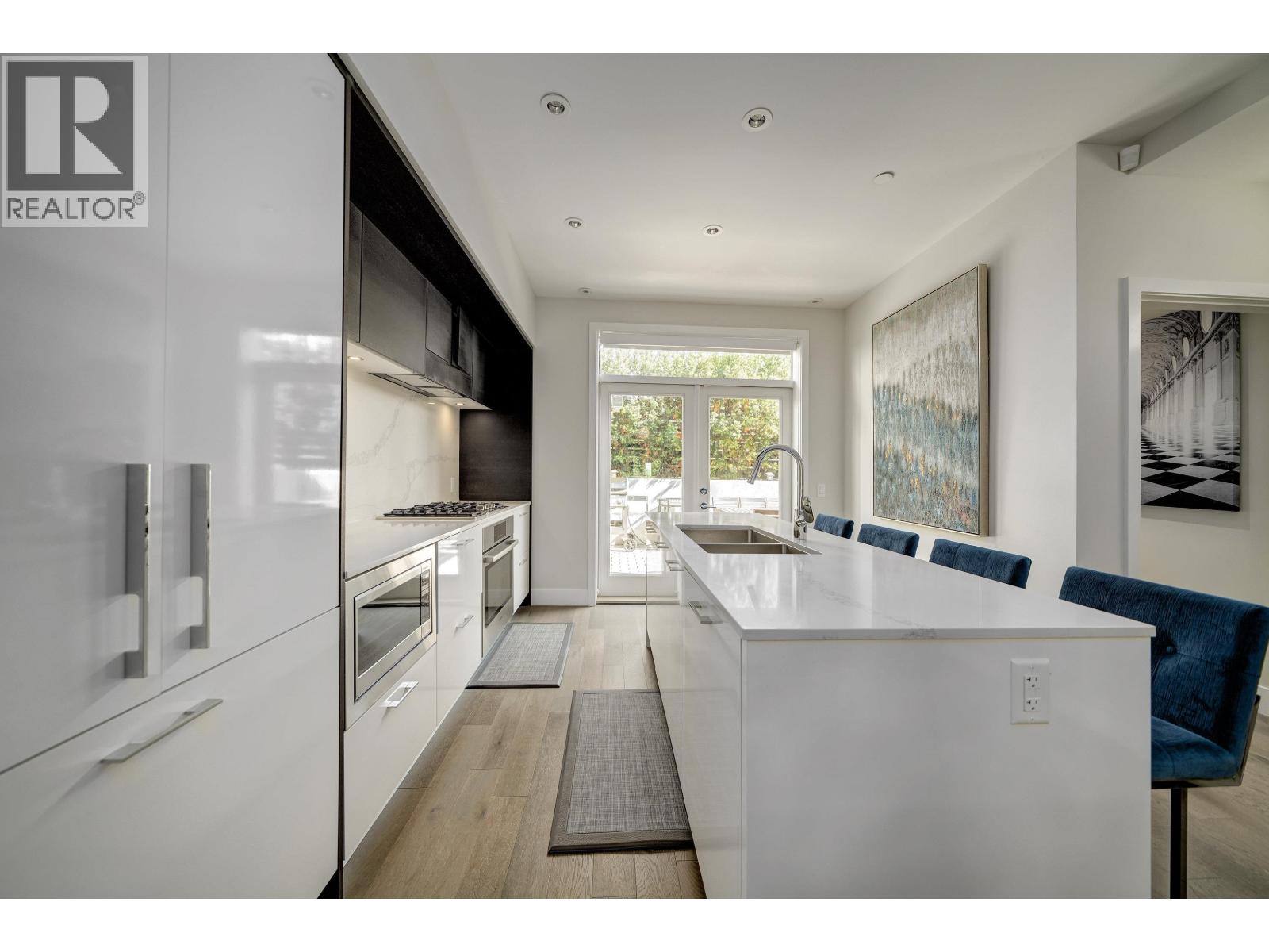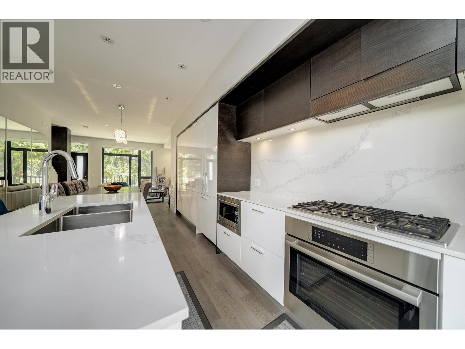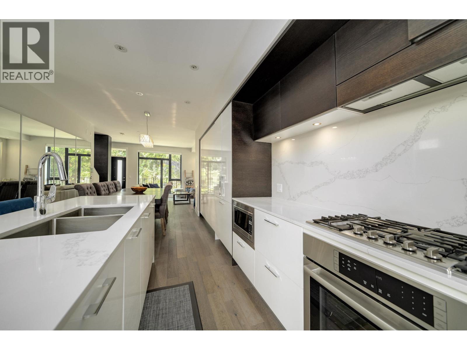 DETACHED and FURNISHED 3-story Townhouse with 1859 SF open plan. No shared walls. The finishes are contemporary and include; Bosch appliances, integrated cabinetry, 9' ceilings, engineered hardwood floors, heated bathroom floors, quartz counters, great storage, built-ins and central air-conditioning. The rooms are spacious and bright with large picture windows and contemporary window coverings. Outdoor spaces include; front entrance patio, large back patio and large balcony from primary bedroom. The patio access for kitchen to outdoor space is a wall to ceiling sliding system creating a full opening to kitchen and outdoor area.The basement features a large walk-in laundry and separate storage area - direct access to your parking. (id:44393)