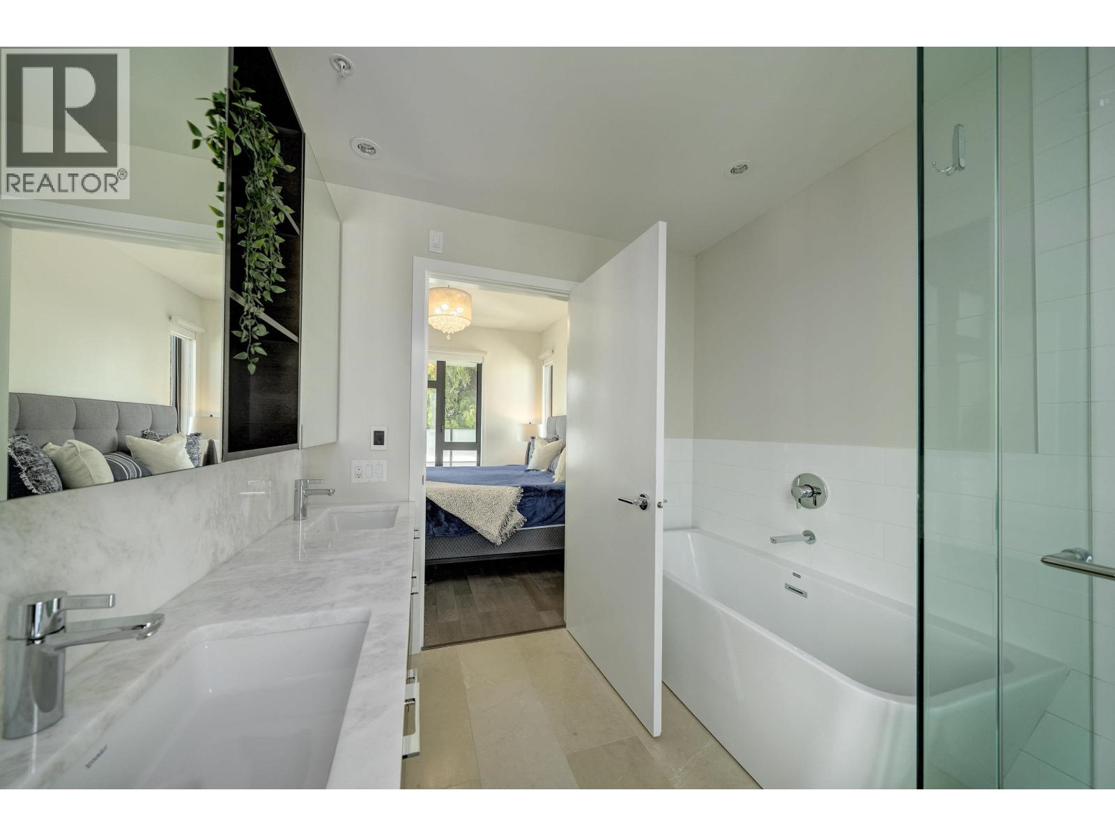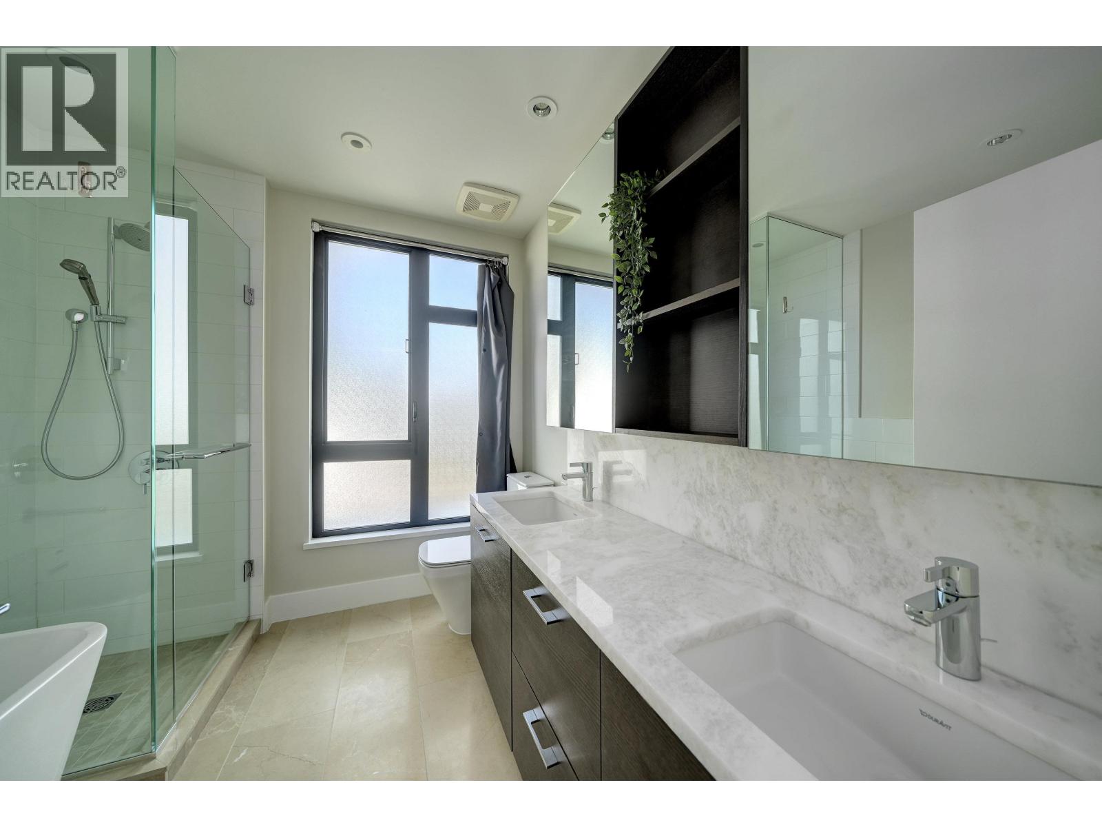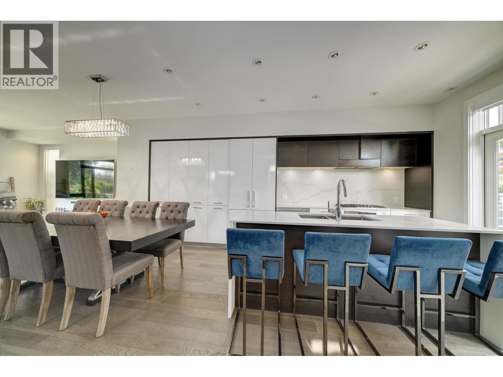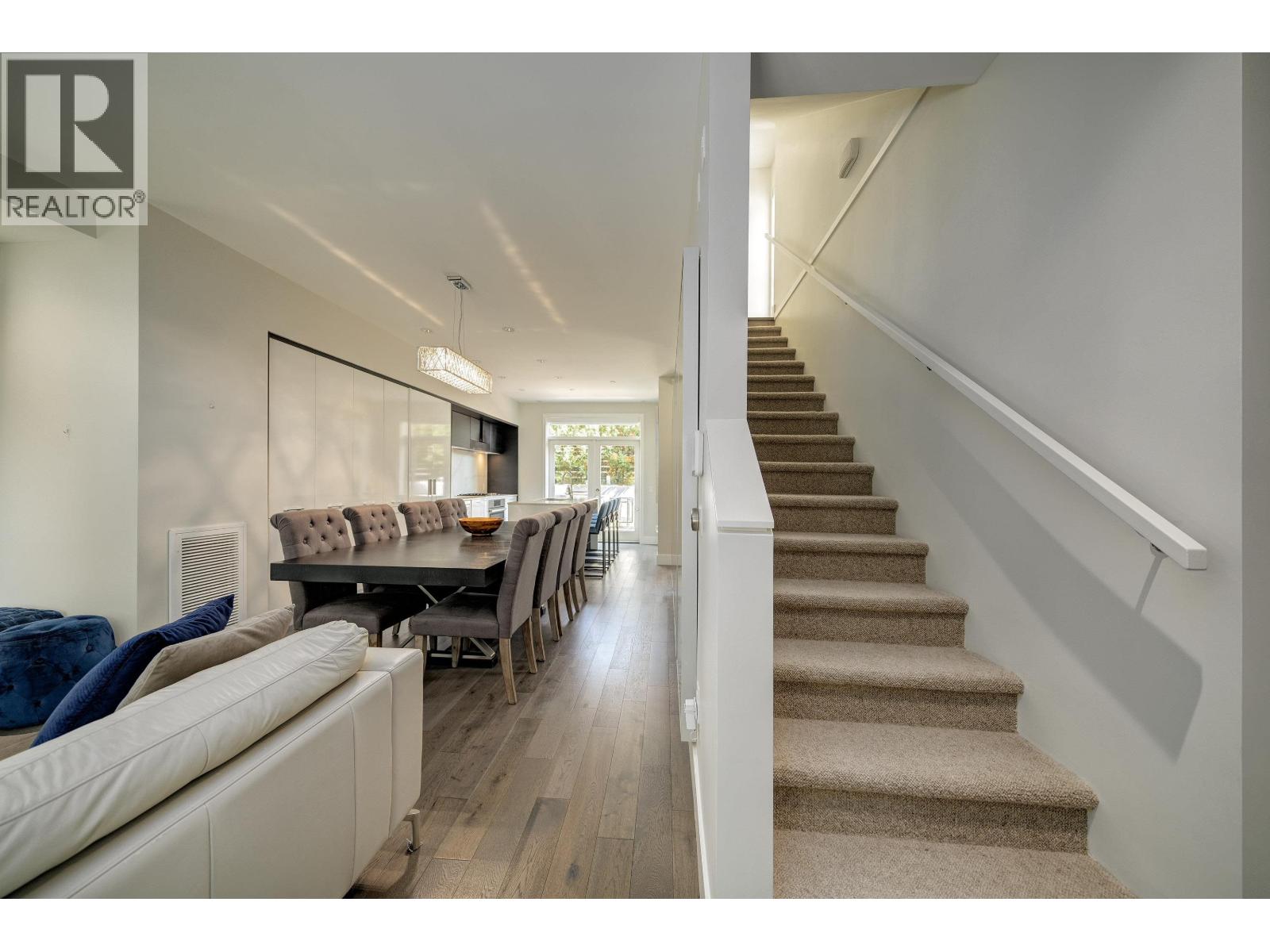 DETACHED and FURNISHED 3-story Townhouse with 1859 SF open plan. No shared walls. The finishes are contemporary and include; Bosch appliances, integrated cabinetry, 9' ceilings, engineered hardwood floors, heated bathroom floors, quartz counters, great storage, built-ins and central air-conditioning. The rooms are spacious and bright with large picture windows and contemporary window coverings. Outdoor spaces include; front entrance patio, large back patio and large balcony from primary bedroom. The patio access for kitchen to outdoor space is a wall to ceiling sliding system creating a full opening to kitchen and outdoor area.The basement features a large walk-in laundry and separate storage area - direct access to your parking. (id:44393)