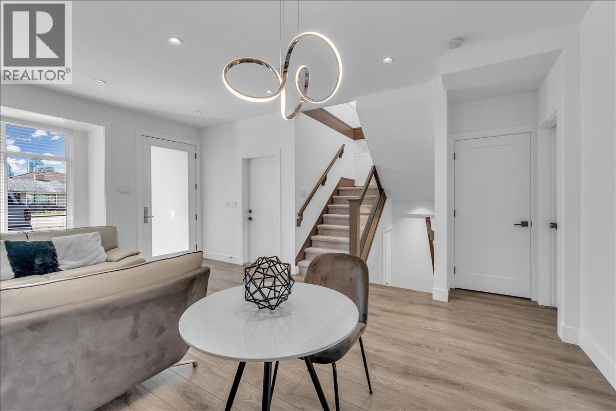 Welcome to this beautifully built duplex by PD Moore Homes Inc., ideally located in East Burnaby. Thoughtfully designed, it offers forced air heating, rough-in for air conditioning, stainless steel appliances, heat recovery ventilation, and a cozy gas fireplace. The home includes a spacious backyard, a one-car garage with plenty of driveway parking, and is roughed-in for a one-bedroom suite, providing flexibility for additional living space or rental income. Just minutes to Edmonds SkyTrain, Highgate Village shopping, and a variety of schools including Twelfth Avenue Elementary, New Westminster Secondary, and St. Thomas More Collegiate, this home is perfect for families seeking both convenience and quality. (id:44393)