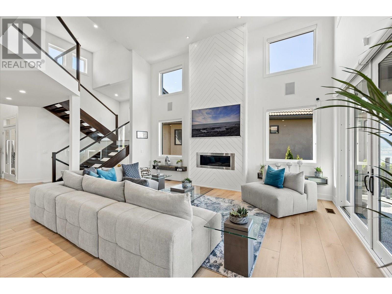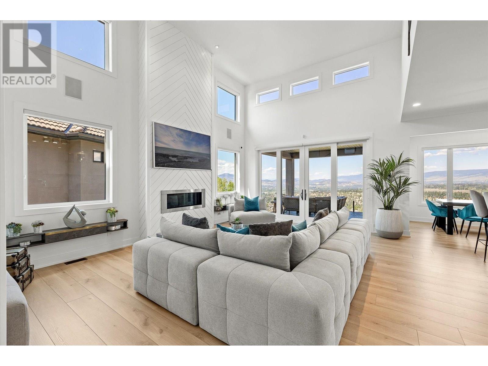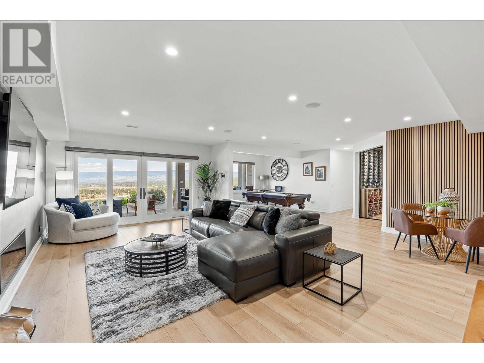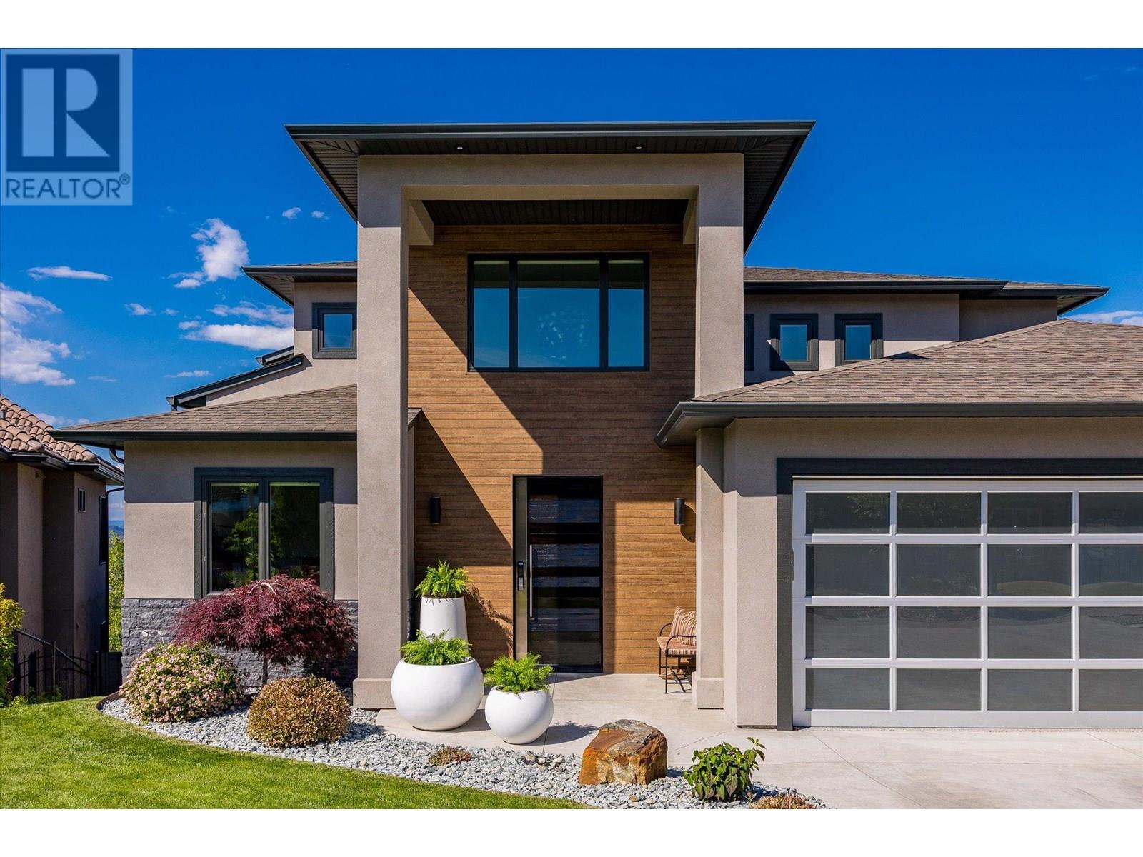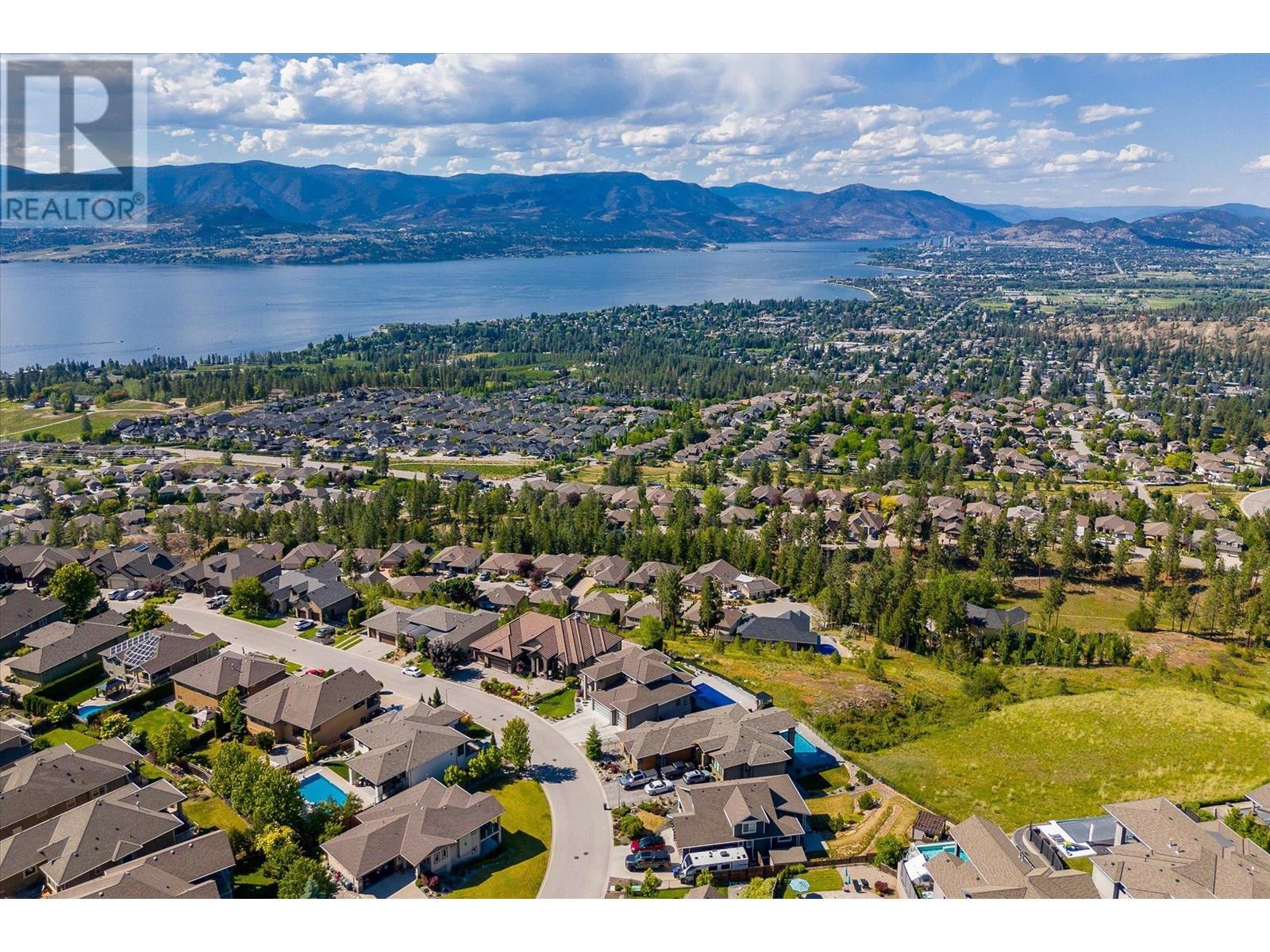Welcome to this fully updated, exquisite 5 bedroom + den, 4 bathroom home, where no detail has been overlooked. As you step through the grand entrance, you are greeted by soaring vaulted ceilings and a chef's kitchen, complete with top-of-the line appliances and a butler's pantry. The heart of this home showcases breathtaking 180-degree vistas, seeing all of Kelowna, creating a mesmerizing backdrop for everyday living. The opulent primary suite is tucked away in a private corner of the main floor, offering a tranquil sanctuary with stunning lake views and a spa- like ensuite. Two additional generously sized bedrooms are located upstairs, providing ample space and privacy for family and guests. The lower walk-out level is an entertainer's paradise, featuring a sophisticated whiskey tasting room, an exquisite wine cellar, a stylish bar, a spacious rec room, and a state-of-the-art theatre room. This level seamlessly transitions to a private backyard and pool area, where the panoramic views are simply unmatched. Completing this magnificent property are four garage spots, including a double garage and a tandem garage, equipped with EV charging and ample space for a boat or RV. With plenty of parking, convenience and luxury are ensured at every turn. This home combines elegance, functionality, and breathtaking scenery, making it a true masterpiece. (id:44393)