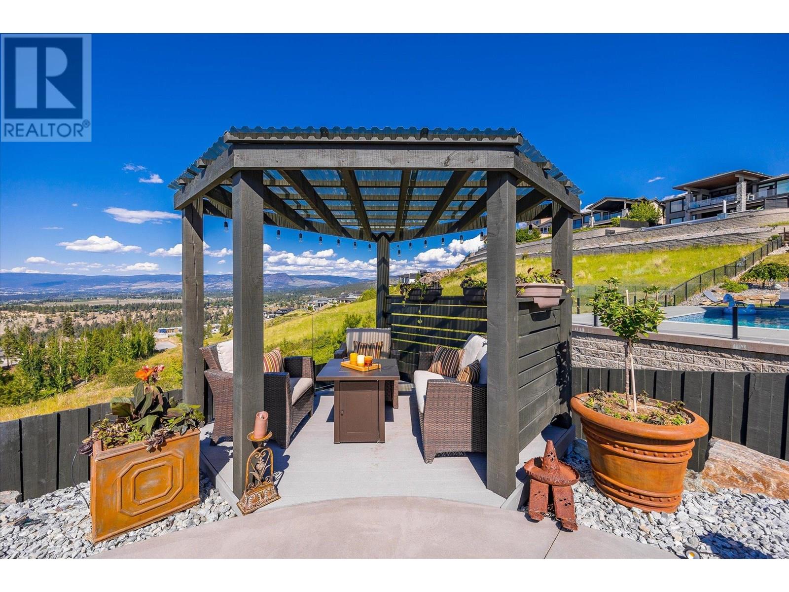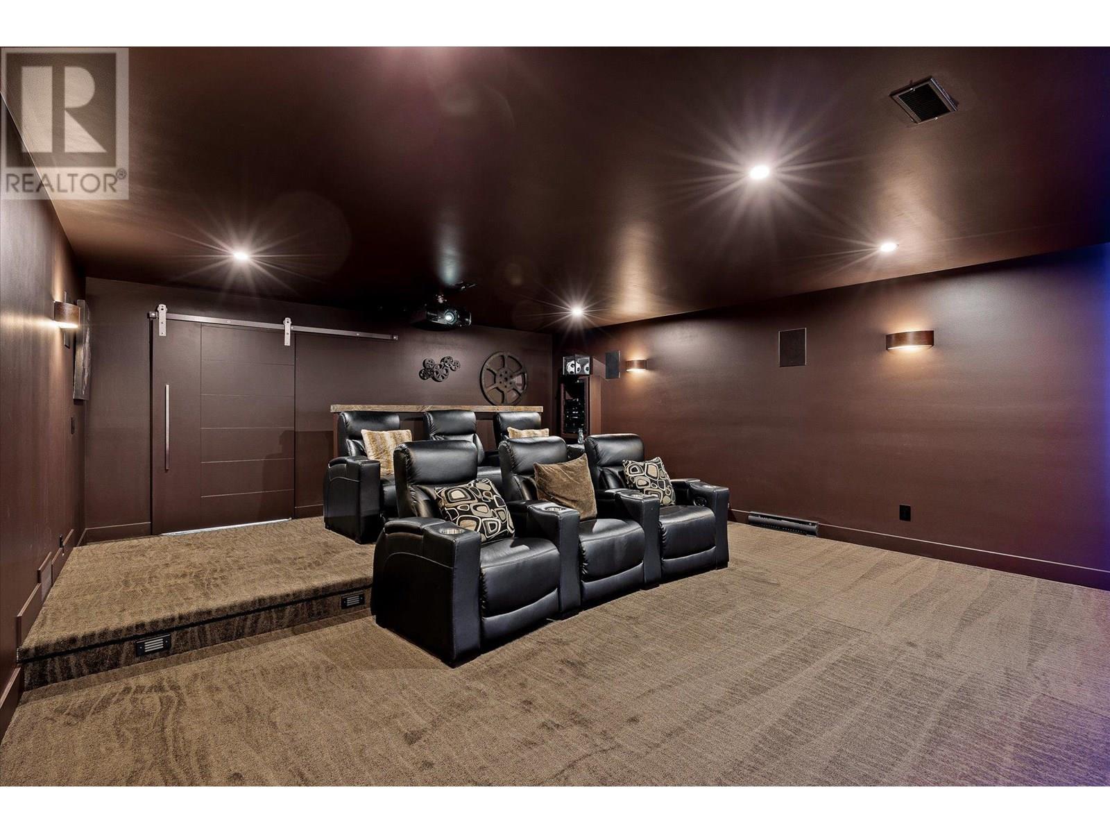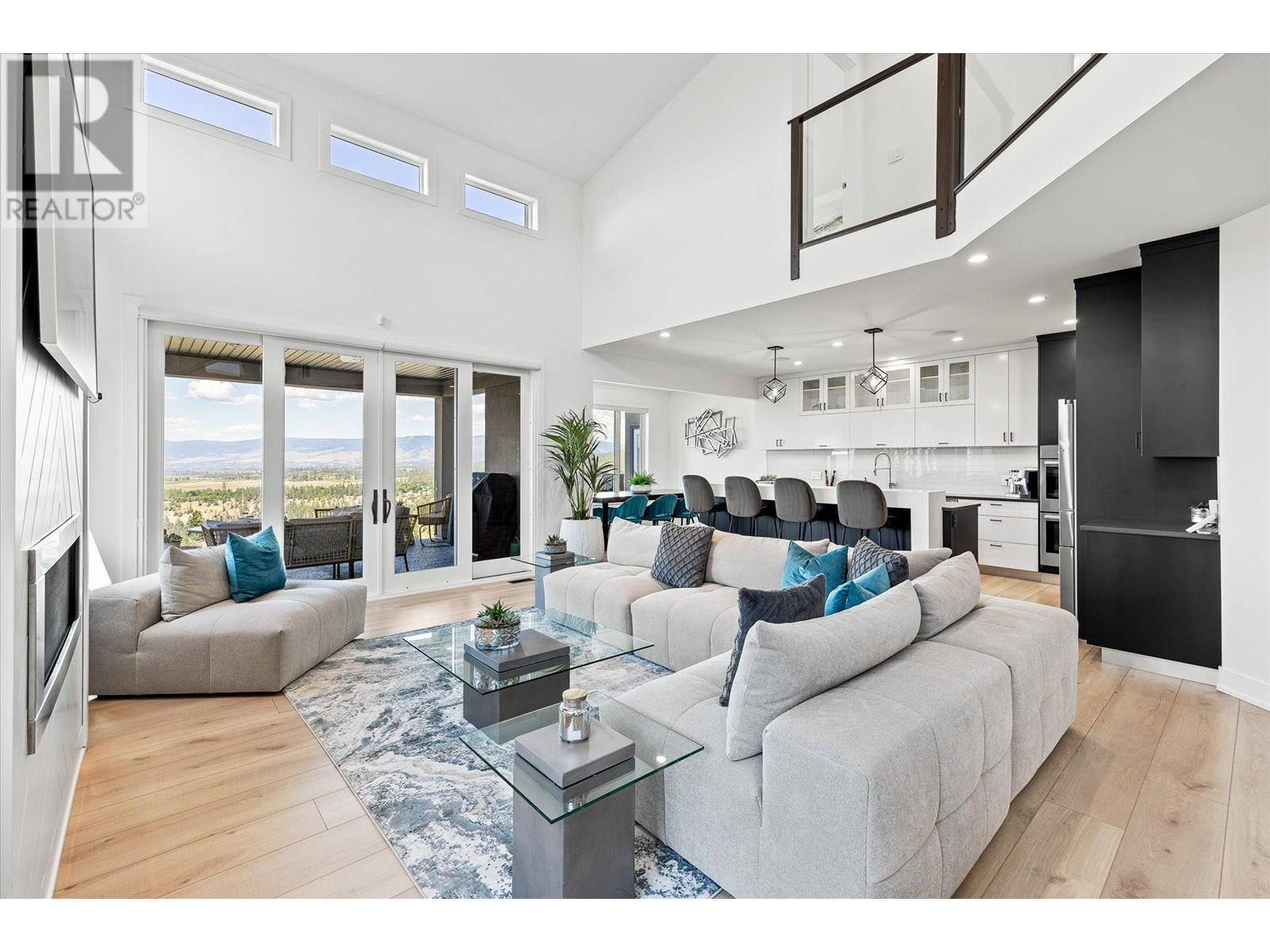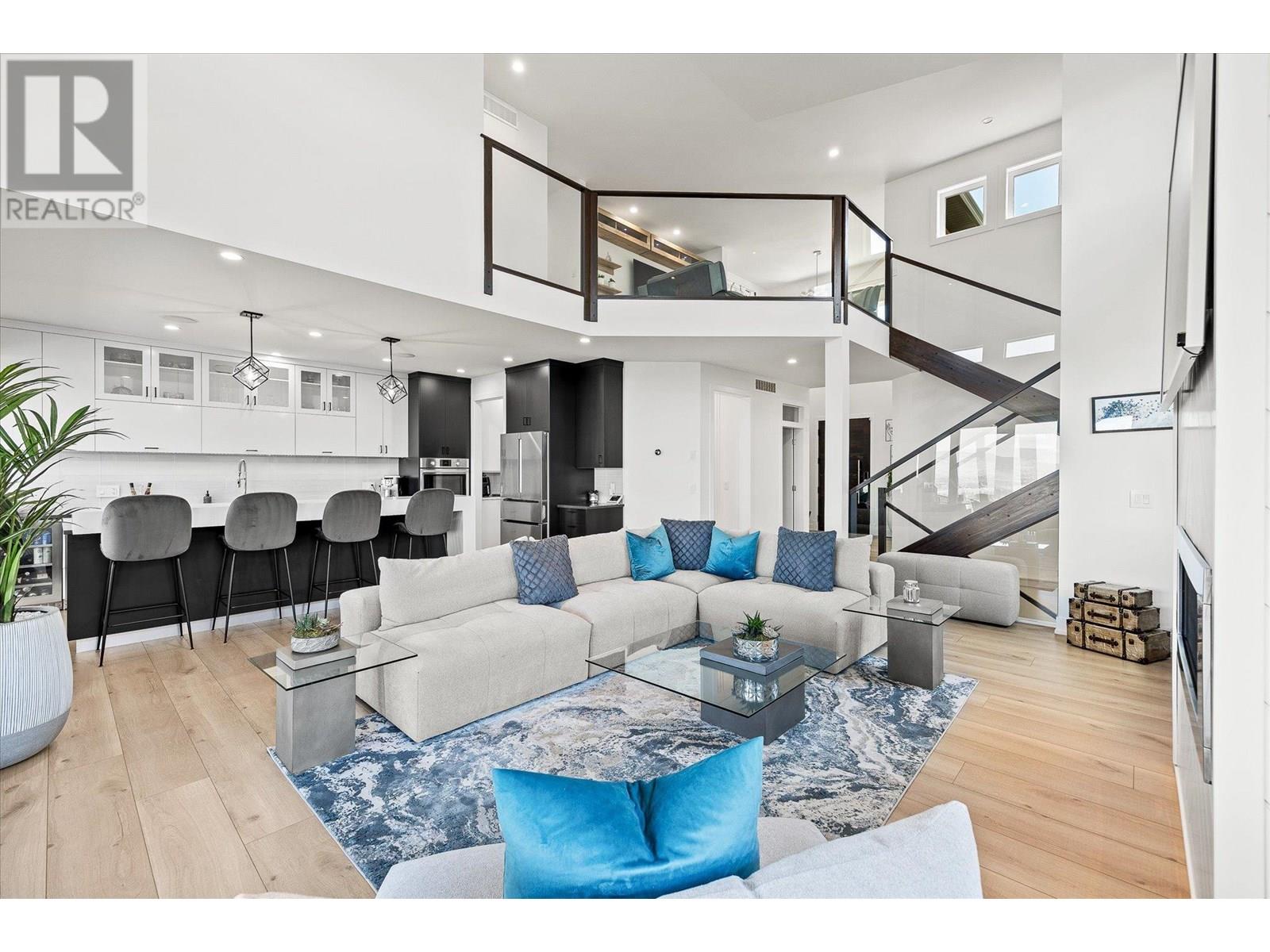 Welcome to this fully updated, exquisite 5 bedroom + den, 4 bathroom home, where no detail has been overlooked. As you step through the grand entrance, you are greeted by soaring vaulted ceilings and a chef's kitchen, complete with top-of-the line appliances and a butler's pantry. The heart of this home showcases breathtaking 180-degree vistas, seeing all of Kelowna, creating a mesmerizing backdrop for everyday living. The opulent primary suite is tucked away in a private corner of the main floor, offering a tranquil sanctuary with stunning lake views and a spa- like ensuite. Two additional generously sized bedrooms are located upstairs, providing ample space and privacy for family and guests. The lower walk-out level is an entertainer's paradise, featuring a sophisticated whiskey tasting room, an exquisite wine cellar, a stylish bar, a spacious rec room, and a state-of-the-art theatre room. This level seamlessly transitions to a private backyard and pool area, where the panoramic views are simply unmatched. Completing this magnificent property are four garage spots, including a double garage and a tandem garage, equipped with EV charging and ample space for a boat or RV. With plenty of parking, convenience and luxury are ensured at every turn. This home combines elegance, functionality, and breathtaking scenery, making it a true masterpiece. (id:44393)