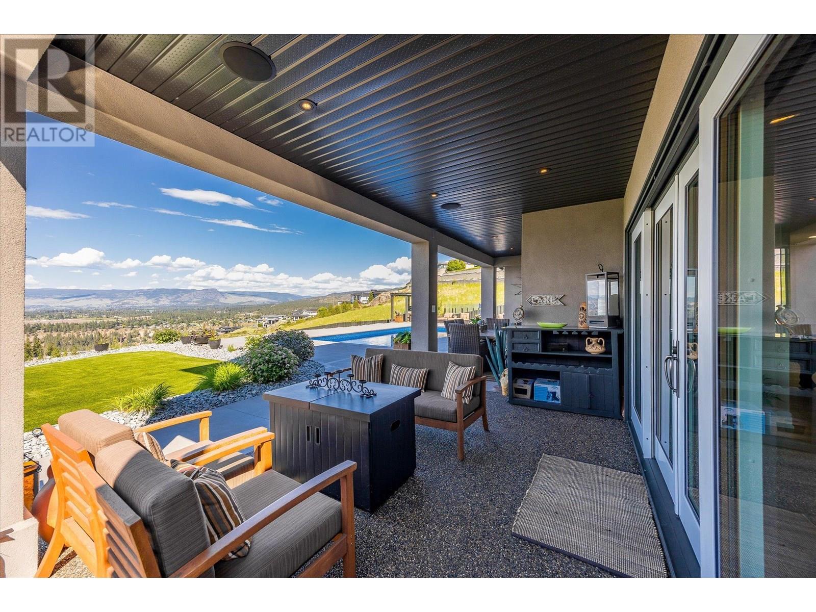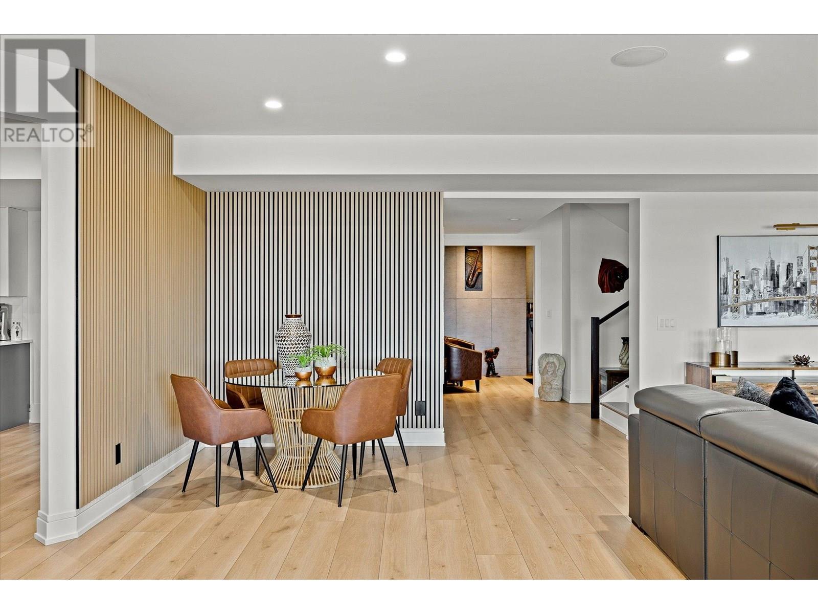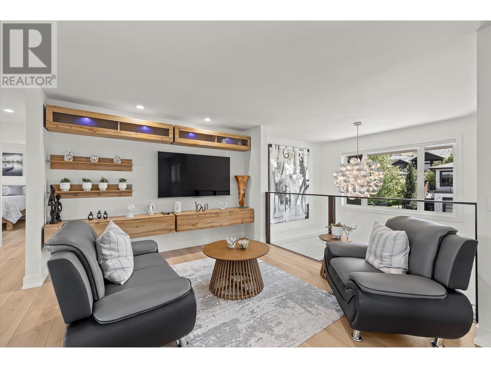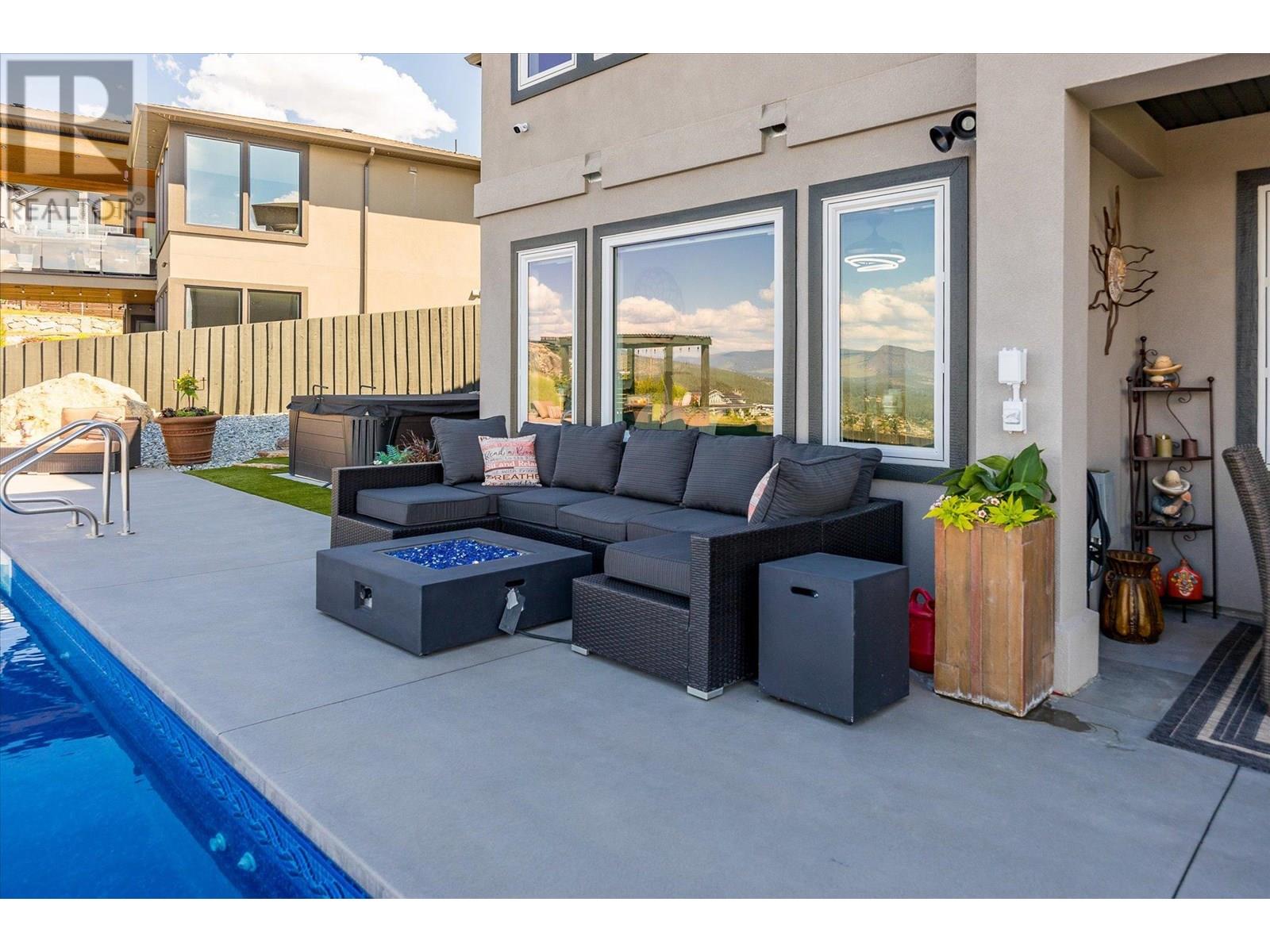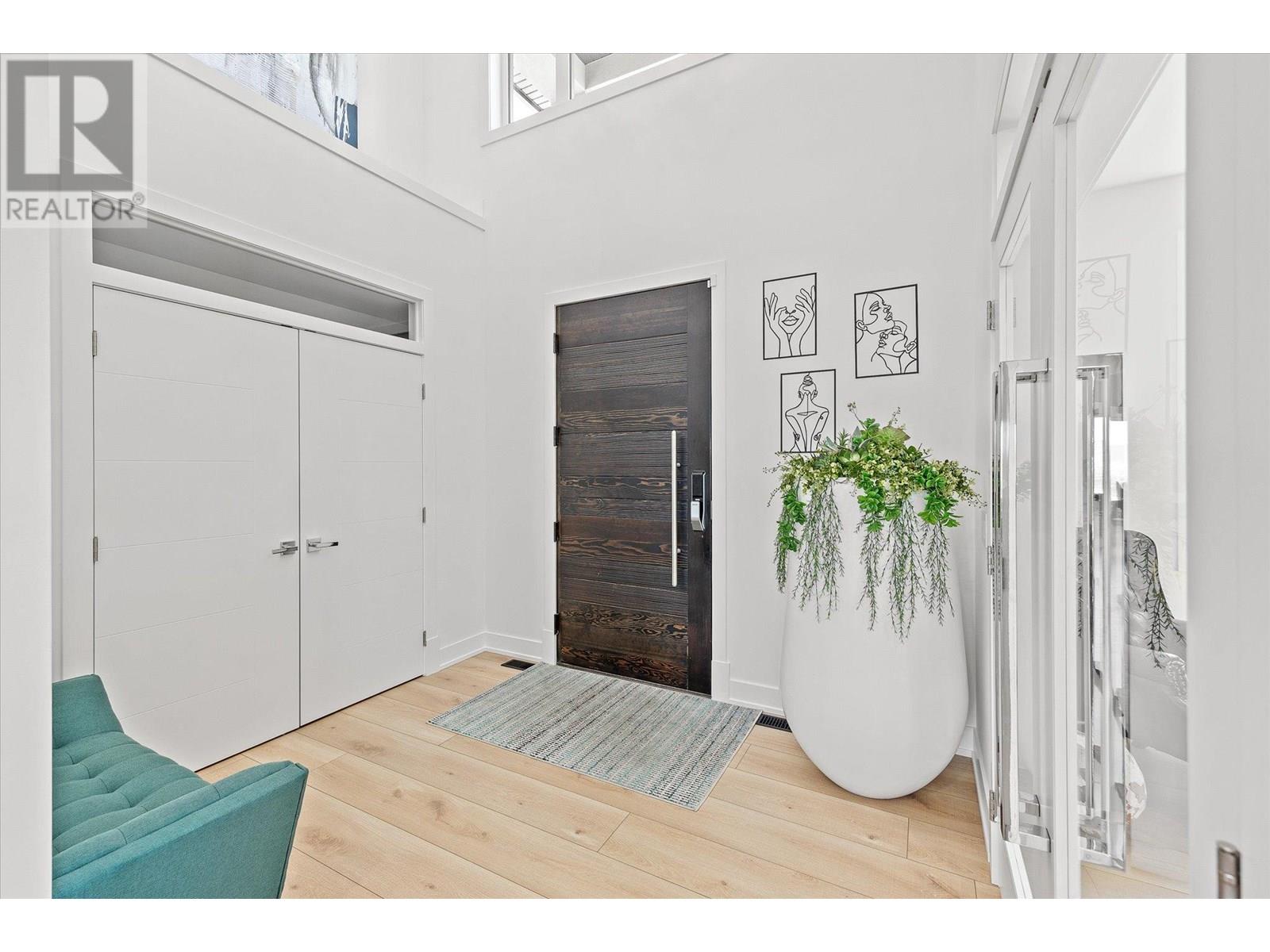 Welcome to this fully updated, exquisite 5 bedroom + den, 4 bathroom home, where no detail has been overlooked. As you step through the grand entrance, you are greeted by soaring vaulted ceilings and a chef's kitchen, complete with top-of-the line appliances and a butler's pantry. The heart of this home showcases breathtaking 180-degree vistas, seeing all of Kelowna, creating a mesmerizing backdrop for everyday living. The opulent primary suite is tucked away in a private corner of the main floor, offering a tranquil sanctuary with stunning lake views and a spa- like ensuite. Two additional generously sized bedrooms are located upstairs, providing ample space and privacy for family and guests. The lower walk-out level is an entertainer's paradise, featuring a sophisticated whiskey tasting room, an exquisite wine cellar, a stylish bar, a spacious rec room, and a state-of-the-art theatre room. This level seamlessly transitions to a private backyard and pool area, where the panoramic views are simply unmatched. Completing this magnificent property are four garage spots, including a double garage and a tandem garage, equipped with EV charging and ample space for a boat or RV. With plenty of parking, convenience and luxury are ensured at every turn. This home combines elegance, functionality, and breathtaking scenery, making it a true masterpiece. (id:44393)