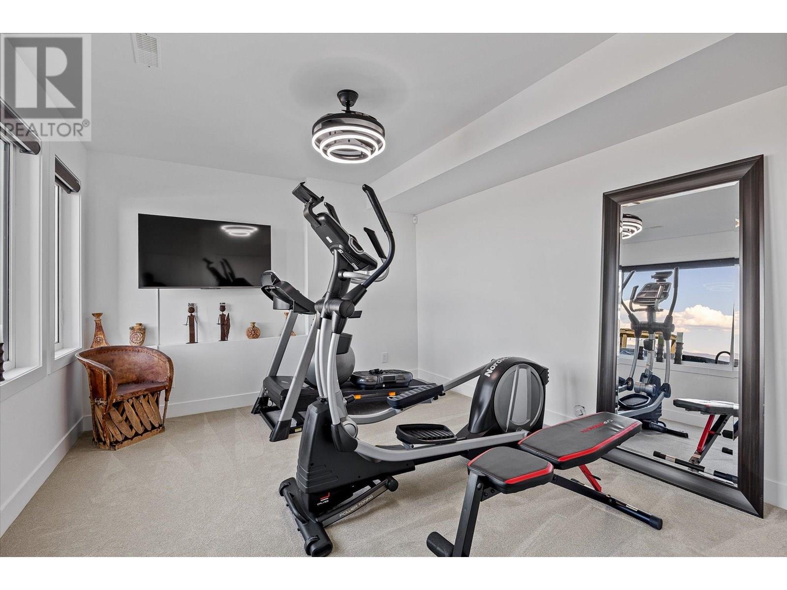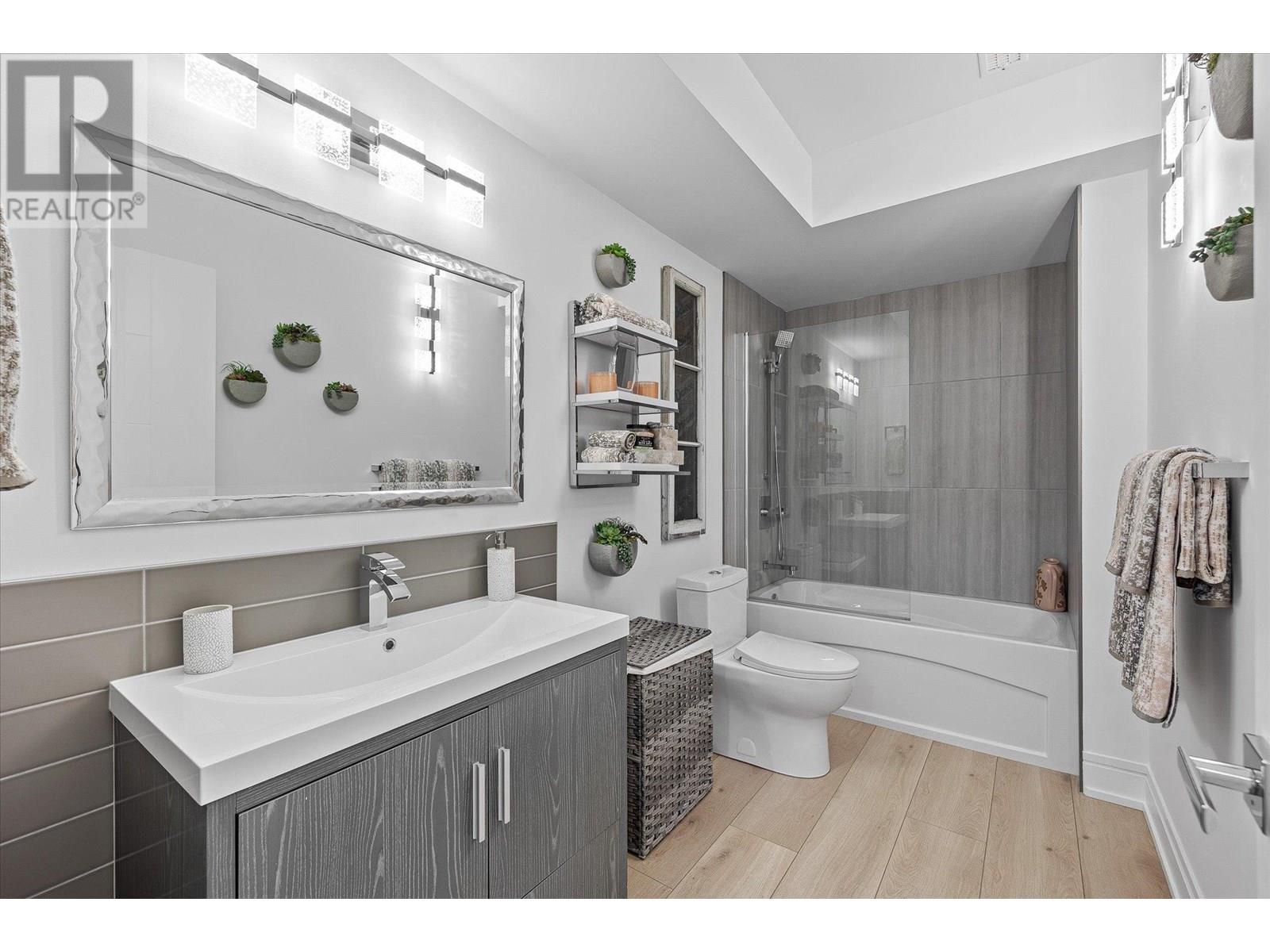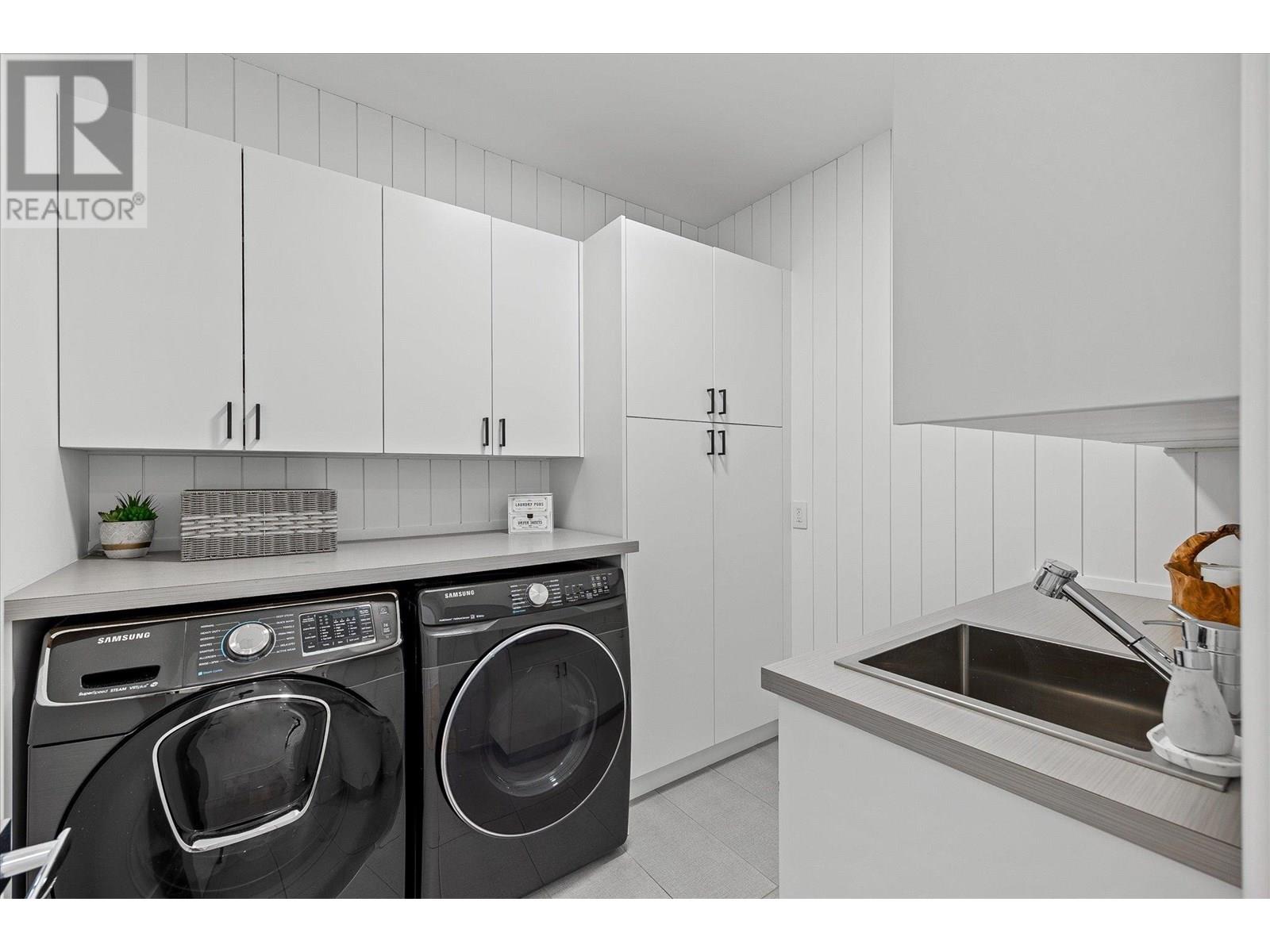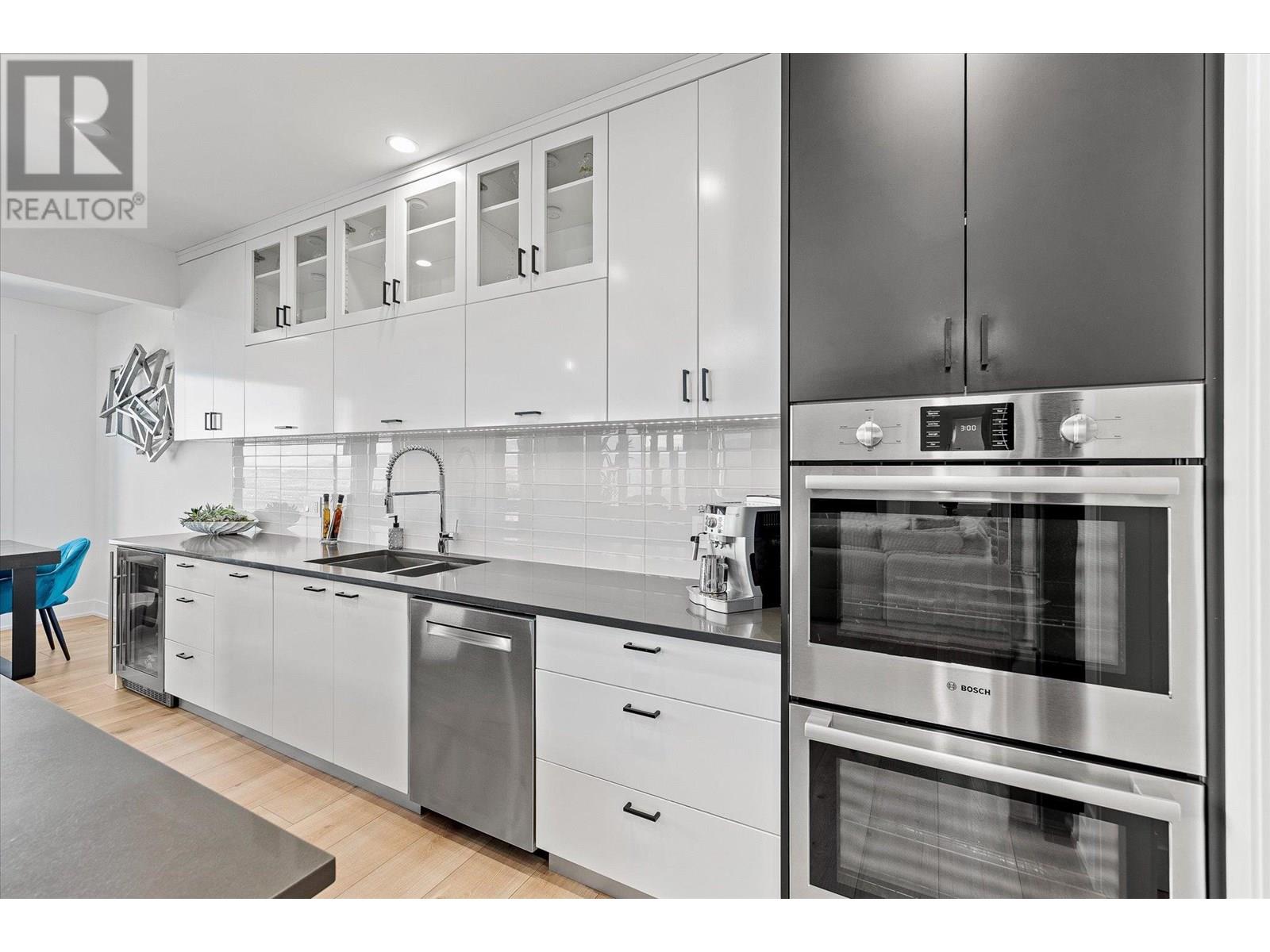 Welcome to this fully updated, exquisite 5 bedroom + den, 4 bathroom home, where no detail has been overlooked. As you step through the grand entrance, you are greeted by soaring vaulted ceilings and a chef's kitchen, complete with top-of-the line appliances and a butler's pantry. The heart of this home showcases breathtaking 180-degree vistas, seeing all of Kelowna, creating a mesmerizing backdrop for everyday living. The opulent primary suite is tucked away in a private corner of the main floor, offering a tranquil sanctuary with stunning lake views and a spa- like ensuite. Two additional generously sized bedrooms are located upstairs, providing ample space and privacy for family and guests. The lower walk-out level is an entertainer's paradise, featuring a sophisticated whiskey tasting room, an exquisite wine cellar, a stylish bar, a spacious rec room, and a state-of-the-art theatre room. This level seamlessly transitions to a private backyard and pool area, where the panoramic views are simply unmatched. Completing this magnificent property are four garage spots, including a double garage and a tandem garage, equipped with EV charging and ample space for a boat or RV. With plenty of parking, convenience and luxury are ensured at every turn. This home combines elegance, functionality, and breathtaking scenery, making it a true masterpiece. (id:44393)