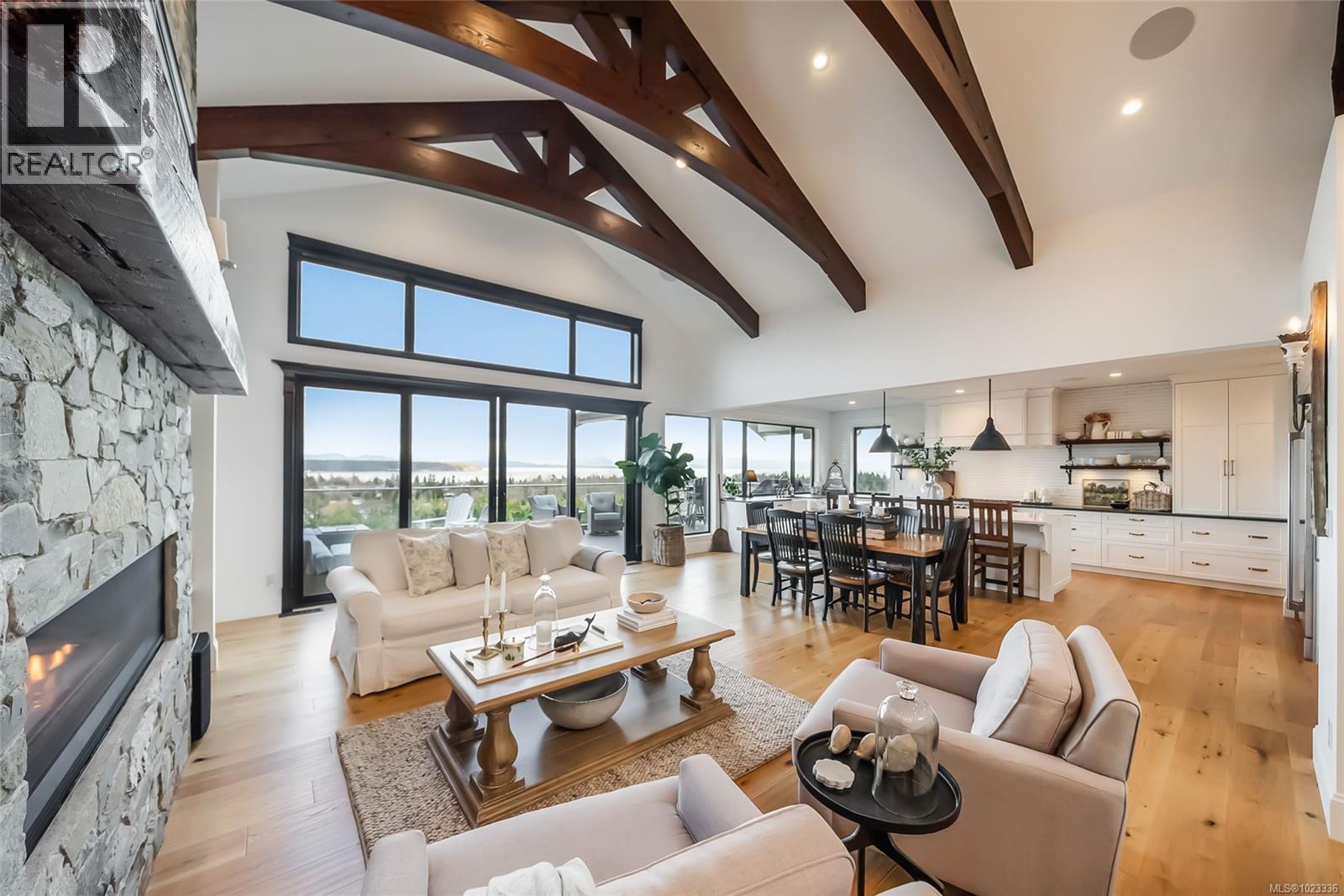 This breathtaking custom-built home was designed with intention and finished to perfection by Twelve Oaks Construction Ltd. offering panoramic ocean views that will leave you speechless. The living room is a showstopper, with vaulted ceilings showcasing old-growth custom curved exposed trusses and a sleek linear gas fireplace framed in real stone. The kitchen is a chef’s paradise—sprawling and stylish, with a shiplap ceiling, an oversized quartz-topped island, a full-size fridge and freezer, a Wolf six-burner dual-fuel range, a glass-front entertainment fridge, and a walk-in prep pantry. The primary suite feels straight out of a design magazine, featuring a reclaimed brick accent wall that frames the ocean view window, plus a spa-inspired ensuite with a walk-in tiled shower and a freestanding soaker tub. Downstairs, the bright walkout basement impresses with 10-foot ceilings, a cozy family room with a gas fireplace and entertainment bar, a soundproof theatre room, a secondary primary suite with its own ensuite, a spacious guest room, a full bathroom, and a home gym. The attention to detail in this home is truly unmatched—it has to be experienced to be fully appreciated. Step inside and fall in love. (id:44393)