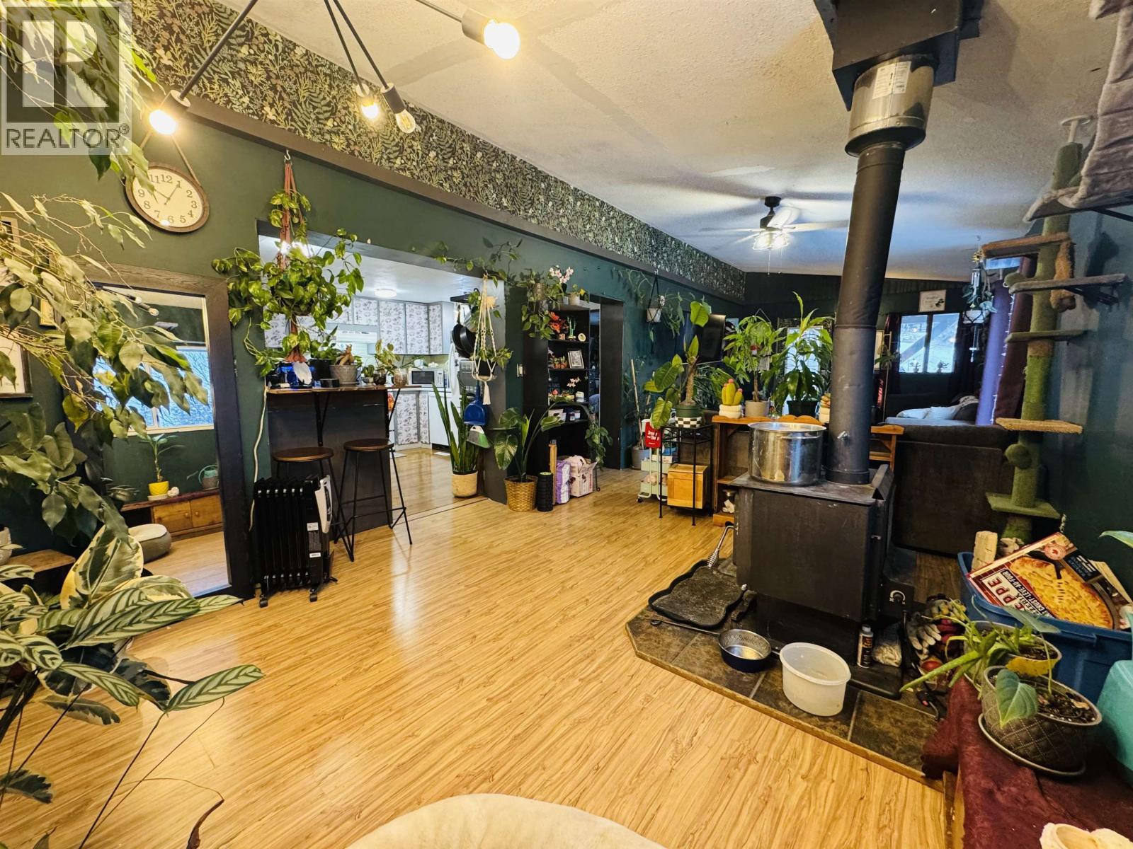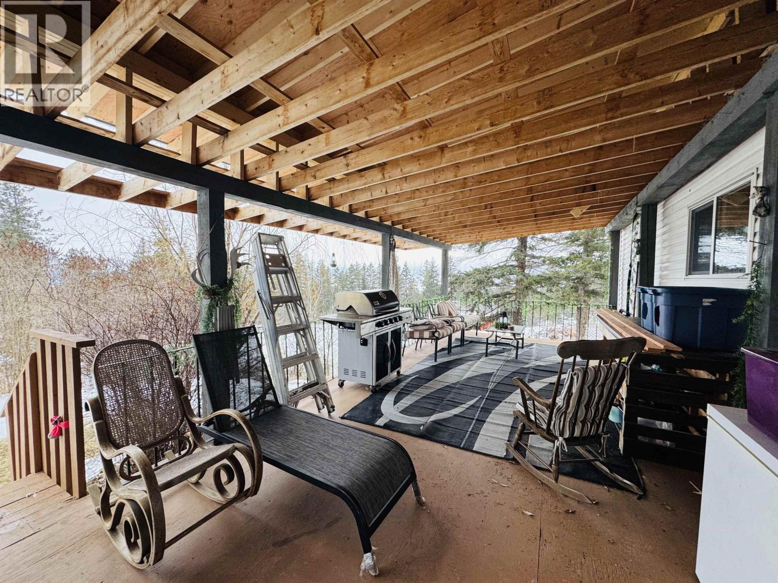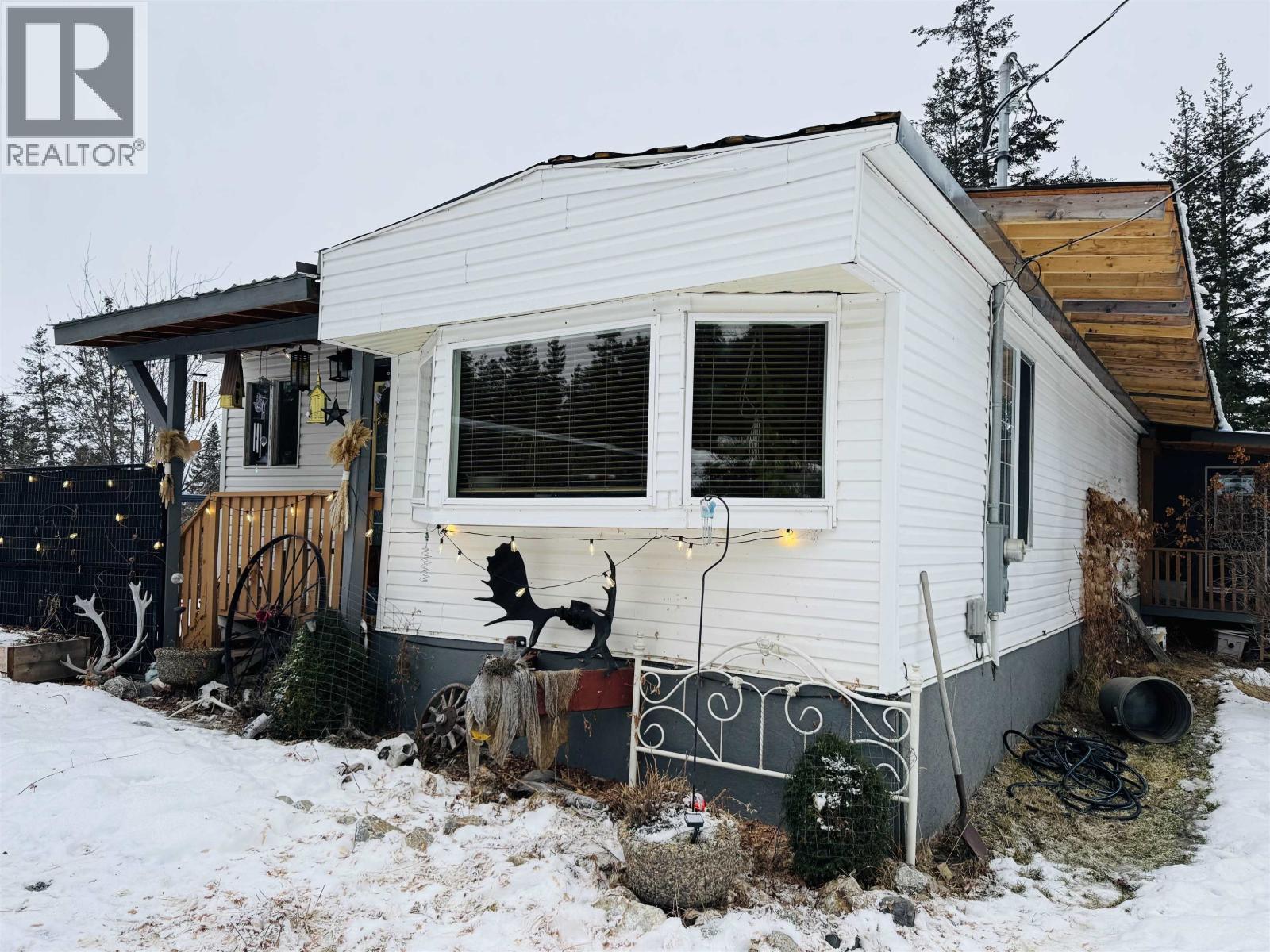 Charming and cozy home situated on 1.51 acres. The mobile home with large addition features 2 bedrooms, 1 bath, laundry room and a hobby room that could easily be made into a 3rd bedroom. The open concept living room is attached to a large covered deck ready for entertaining or relaxation. Property has work shops, hot tub and wood storage. Located in Alexis Creek with the convenience of being on municipal services. New Roof, all newer vinyl windows, furnace and HWT. Come check out this wonderful affordable home. (id:44393)