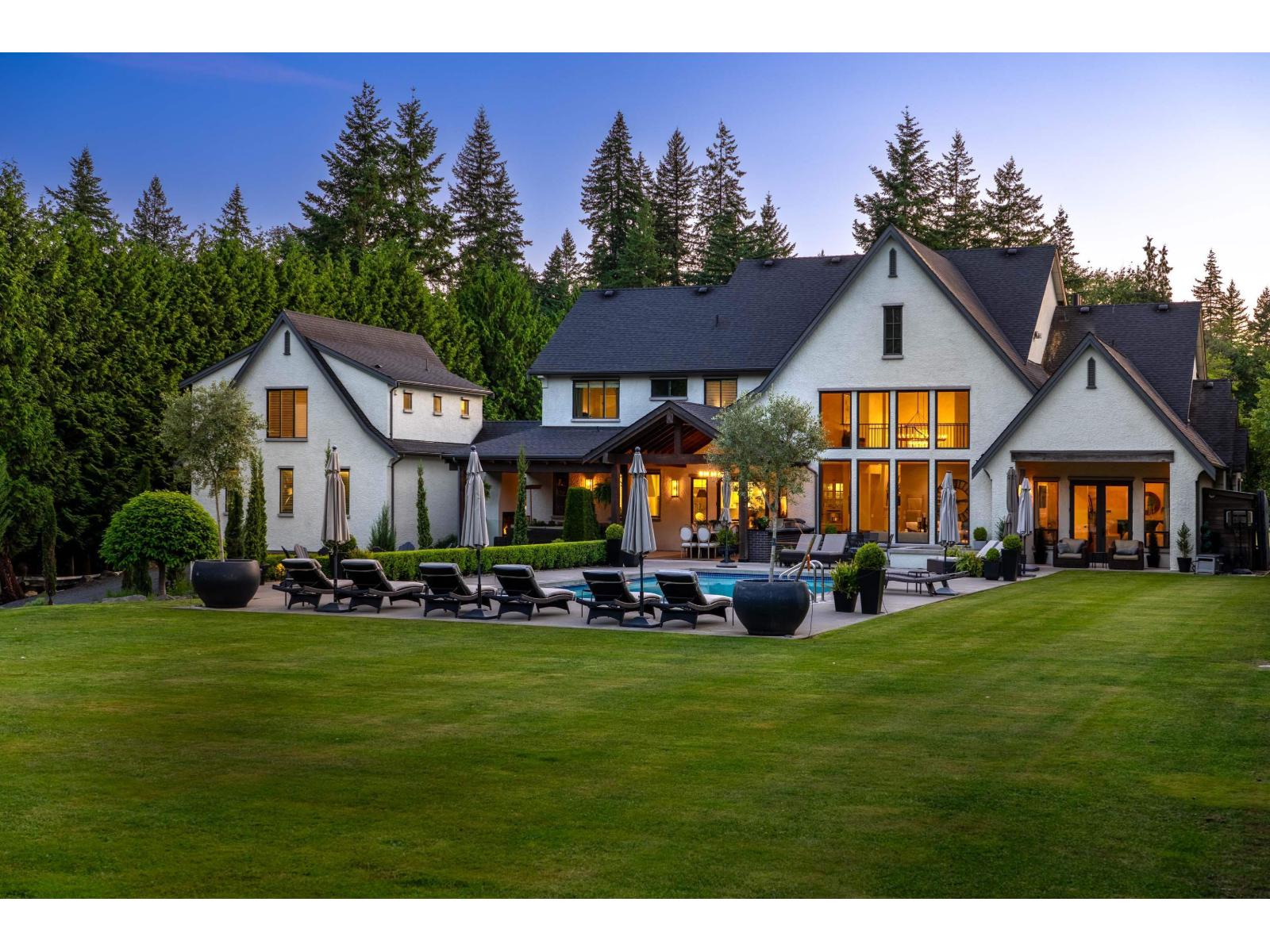One of Langley's finest gated estates on 2.5 private, manicured acres. This immaculate custom estate is built by Ridgewest Homes, and designed by Su Casa. A perfect blend of luxury, comfort, and function, 8 beds, 7 baths, primary on the main, vaulted great room, private temp controlled wine/scotch tasting room, gym, theatre, plus a 1-bed suite. Unique underground tunnel leads to a bunker-style garage. Resort-style backyard with 20x40 concrete pool, built-in hot tub, California-style sport court, firepit, and covered patio with full outdoor kitchen and fireplace. 6 covered parking. Plans avail for accessory building, build your dream barn or shop! Minutes to Fort Langley, Thunderbird, and HWY 1. A true dream estate built for family, entertaining, and refined country living. (id:44393)