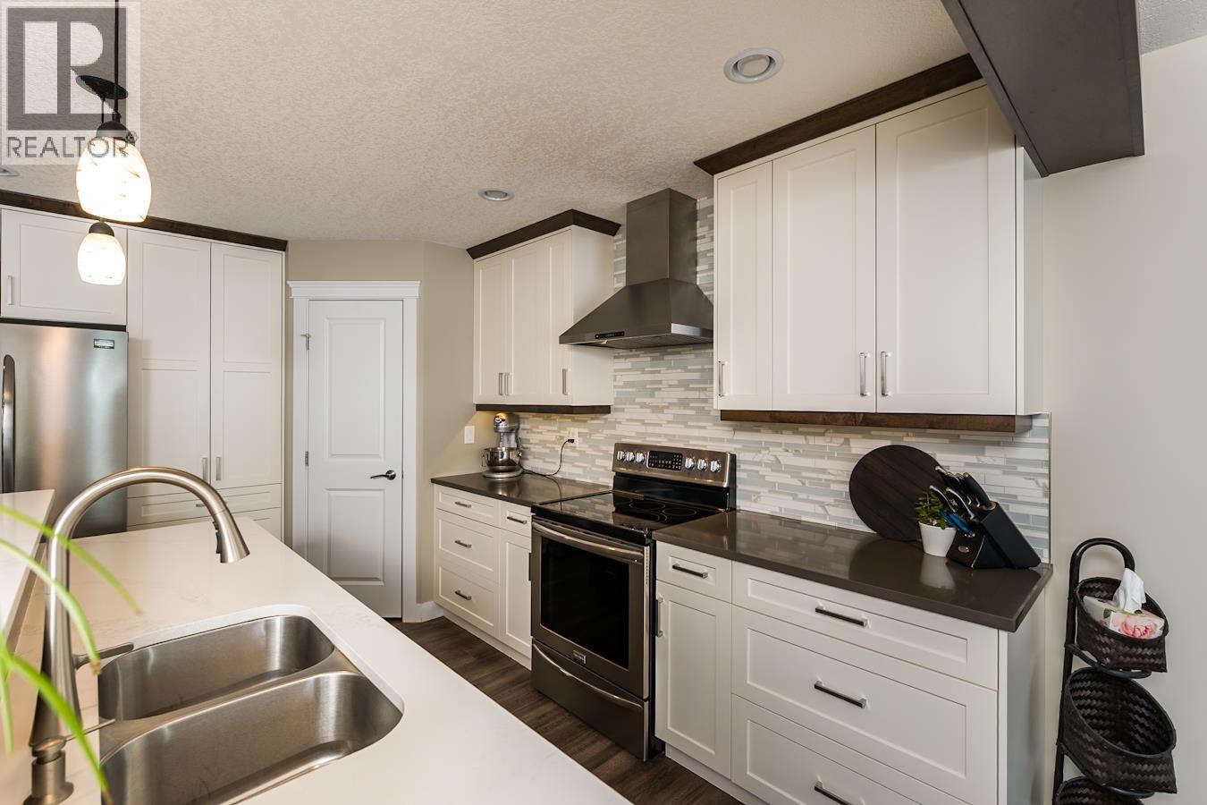 This custom-built 2017 home offers 5 bedrooms and 4 bathrooms, situated on an expansive 0.28-acre lot. It features a legal 1-bedroom suite with a separate entrance, making it ideal for extended family or rental income. The property boasts numerous upgrades, including triple-pane windows, a built-in vacuum system, a tankless hot water heater, and a high-efficiency furnace, ensuring comfort throughout the year. The main level showcases an upgraded kitchen with quartz countertops, enhanced cabinetry, and drawers, complemented by upgraded appliances. Off the kitchen, an oversized deck provides the perfect spot for relaxing in the hot tub. Outside, the double garage opens to an exposed aggregate driveway. The meticulously maintained yard is equipped with a 6-zone inground sprinkler system. (id:44393)