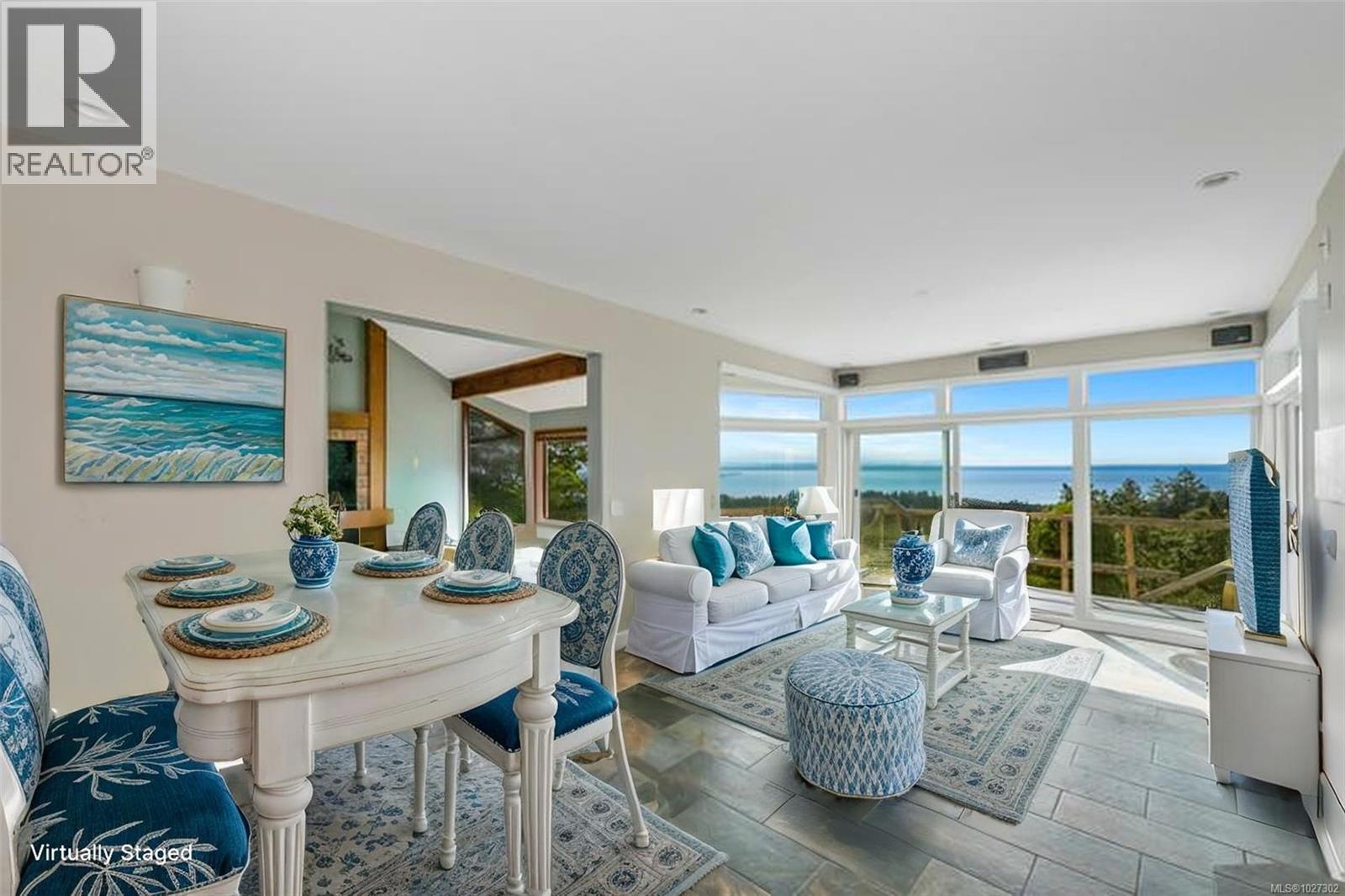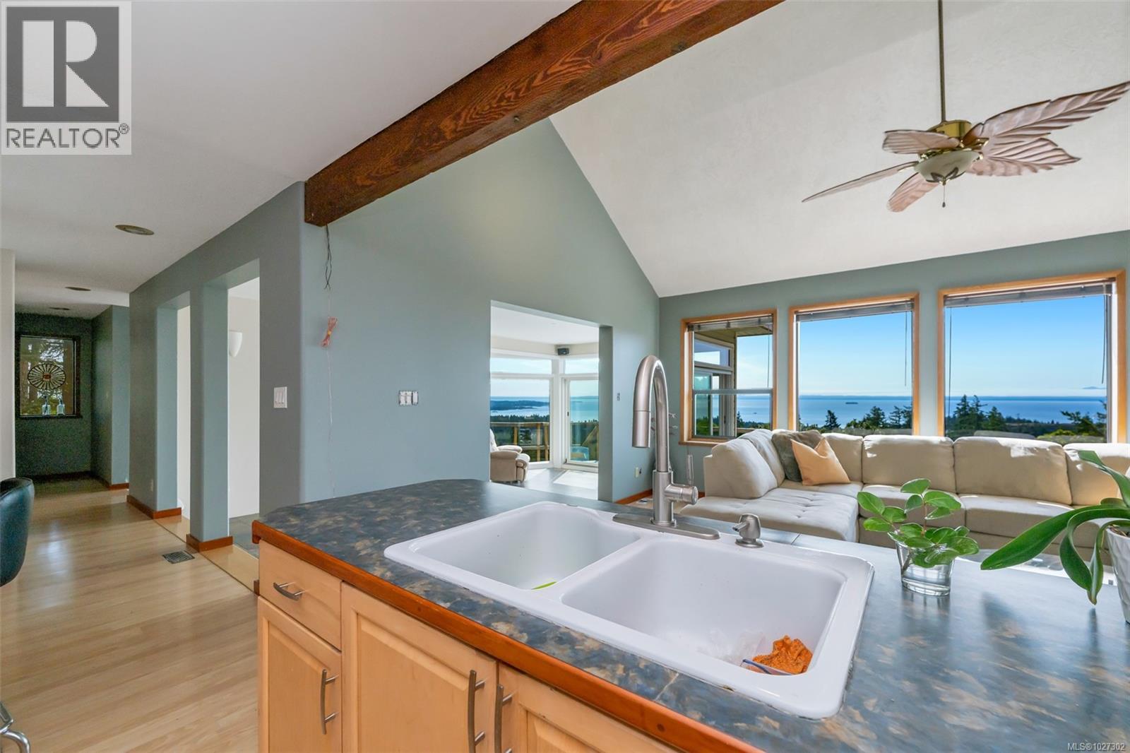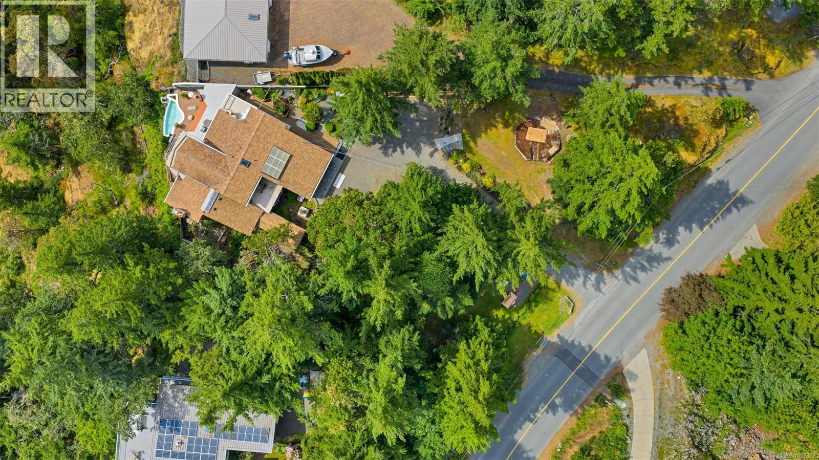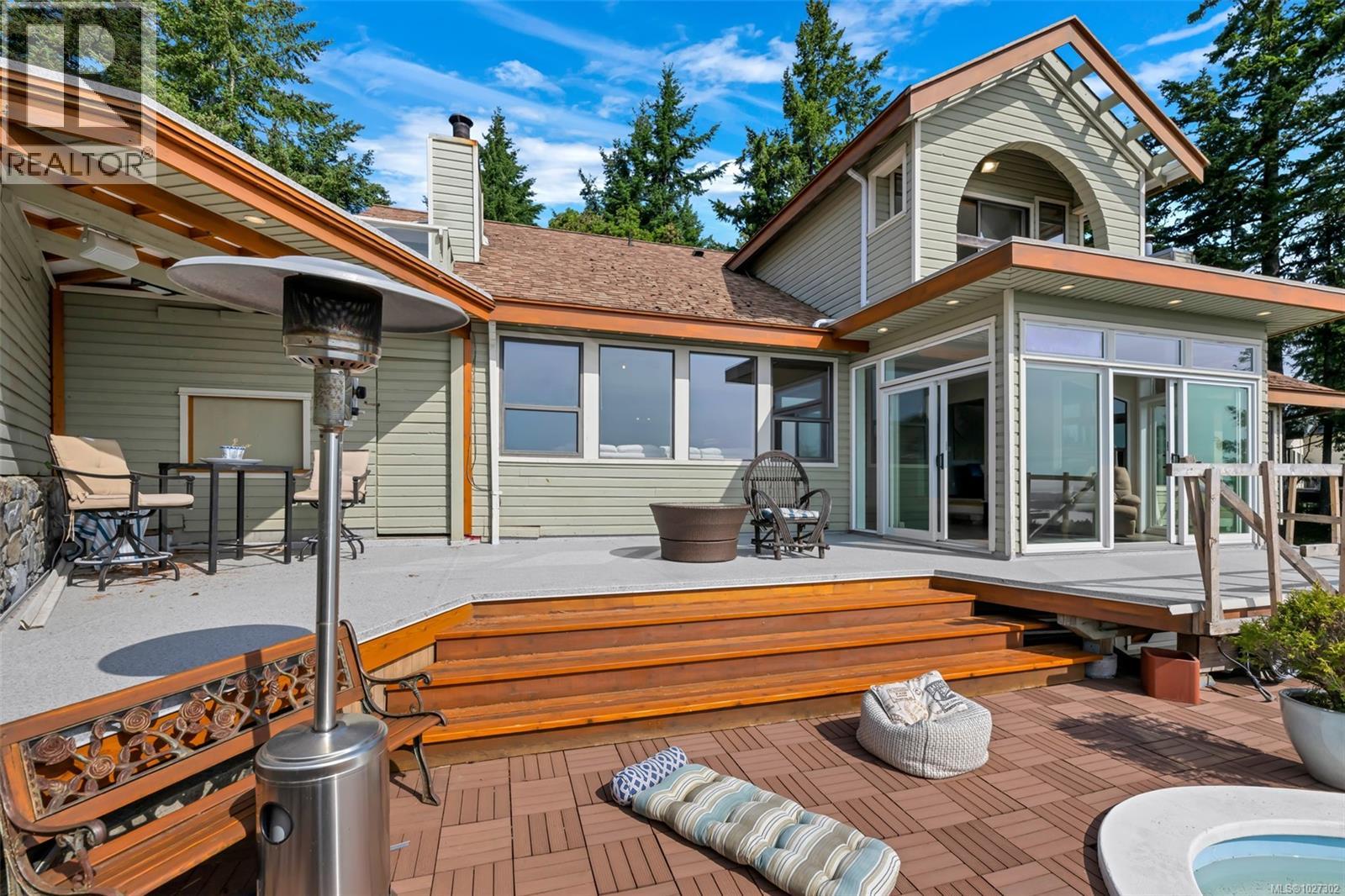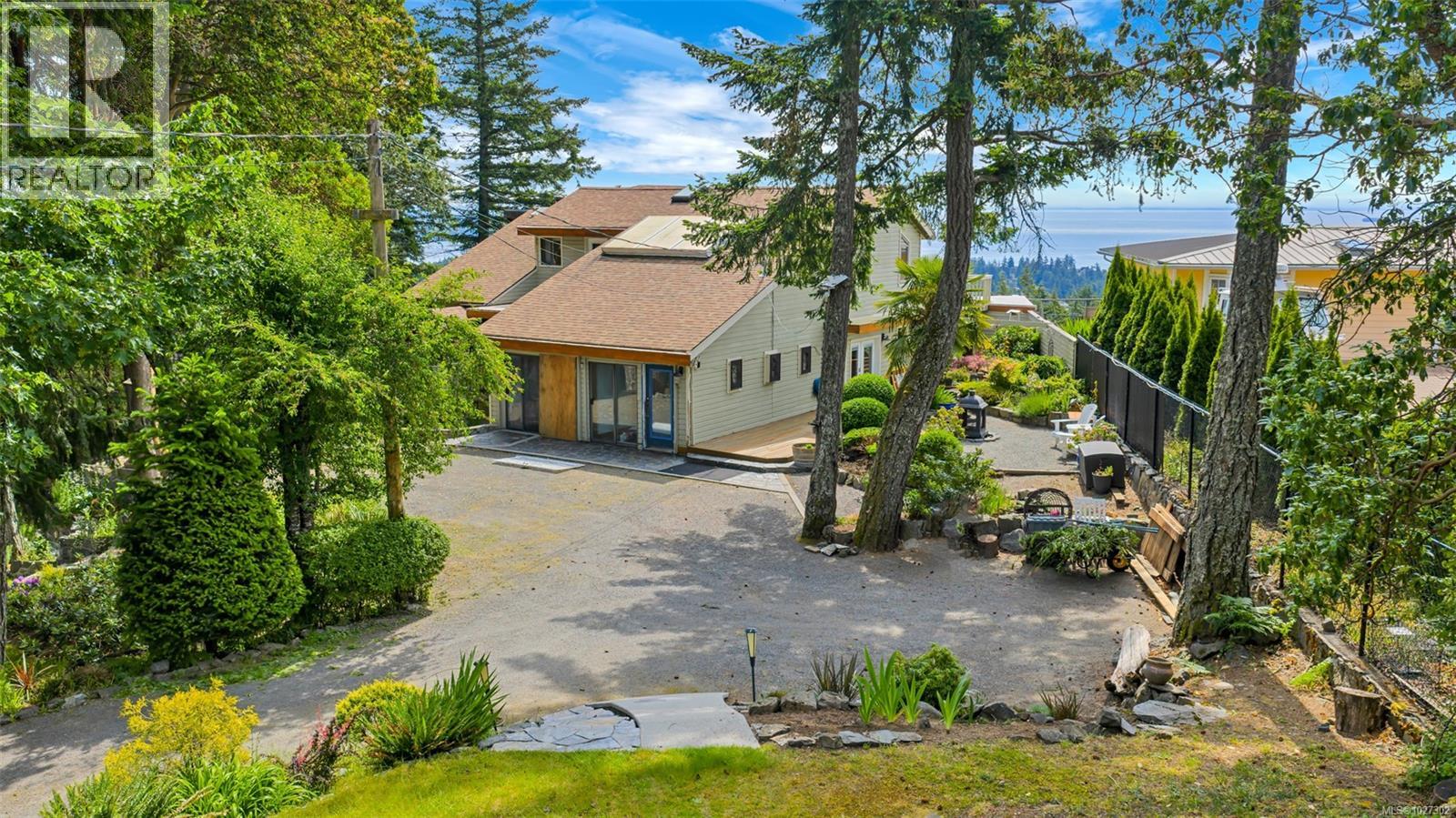 Perched atop prestigious Triangle Mountain, where sky meets sea, this extraordinary West Coast residence sits on a private 0.94-acre estate, offering truly unrivaled panoramic views. From the majestic Olympic Mountains across the Salish Sea to the glittering skyline of downtown Victoria, the outlook is nothing short of breathtaking. Thoughtfully designed to embrace natural light and showcase the ever-changing coastal backdrop, the main level features a dramatic dining area framed by floor-to-ceiling windows and finished with elegant slate tile flooring. The upper gallery landing overlooks the bright, expansive living spaces below, while a central skylight bathes the home in warm, natural light. Multiple wood-burning fireplaces add timeless character and warmth, complemented by durable tiled flooring that enhances both style and function. Upstairs, well-appointed bedrooms offer comfort and privacy, highlighted by a serene primary suite designed as a true retreat. Complete with a walk-in closet, ensuite bath, enclosed sunroom, and an intimate private deck, the suite provides front-row views to Victoria’s sparkling night lights. A conveniently located top-floor laundry area adds everyday practicality. Outdoors, tranquility unfolds across layered garden terraces, secluded sitting areas, and a soothing water feature nestled beside a mature palm tree. The private plunge pool is an unexpected luxury—perfect for relaxing while taking in the spectacular setting. While some deferred maintenance and updates present an opportunity for renewal, the architectural integrity, design vision, and exceptional location make this a rare offering. Properties with views of this caliber and nearly an acre of land atop Triangle Mountain seldom come available. This is your chance to restore, reimagine, and personalize a West Coast masterpiece in one of the region’s most elite settings. Let your vision bring new life to something truly extraordinary. (id:44393)