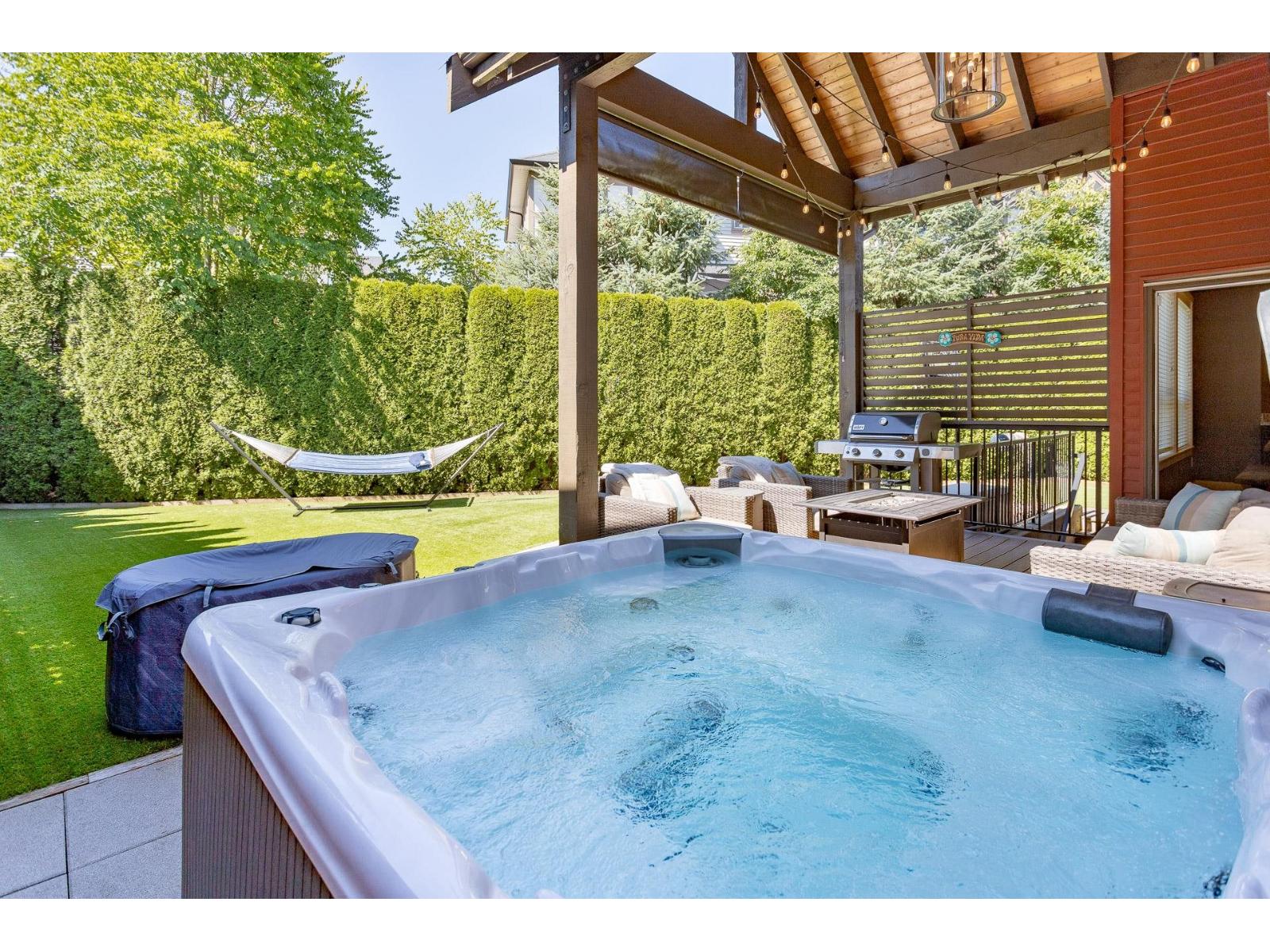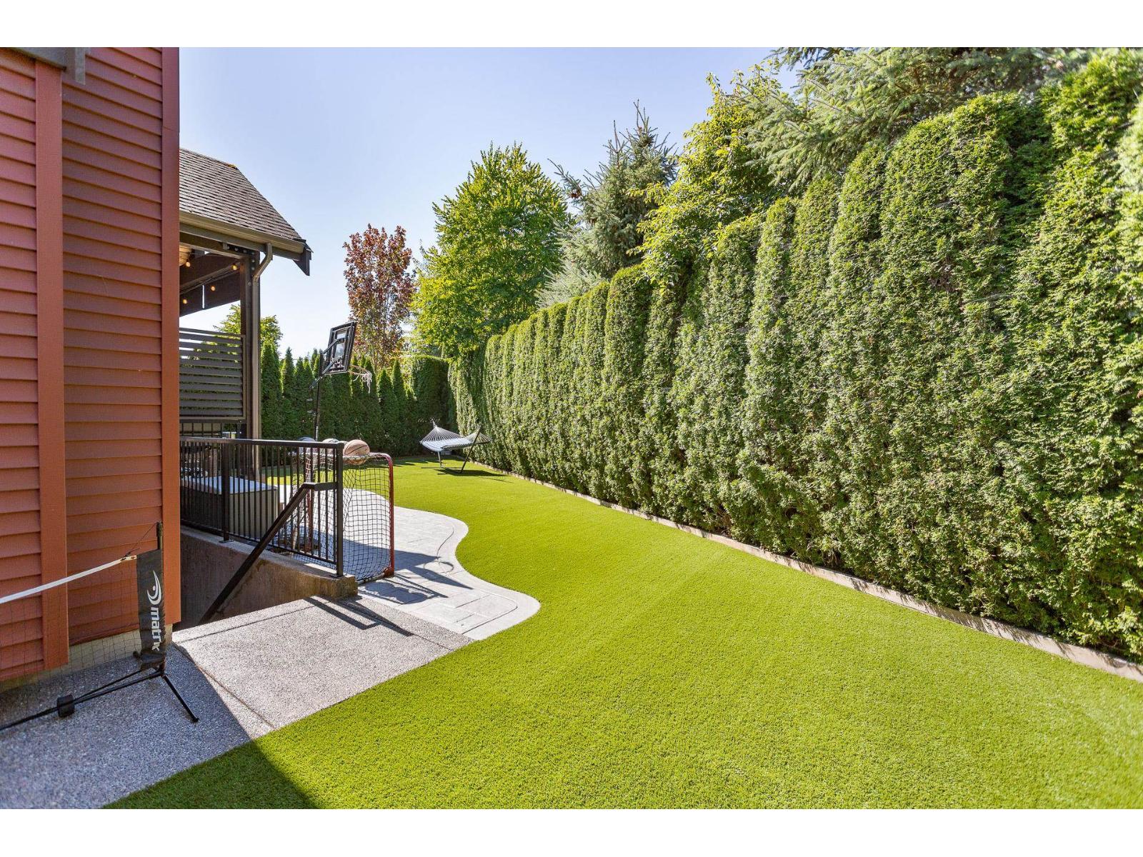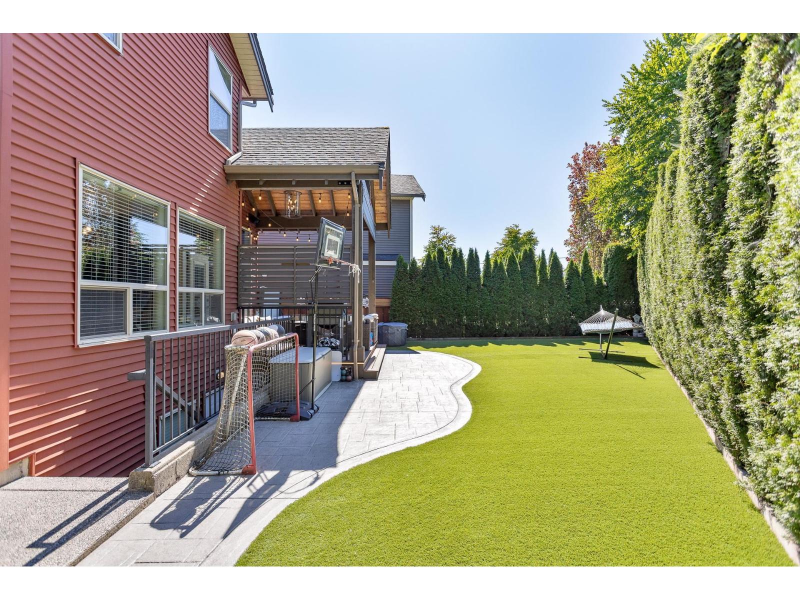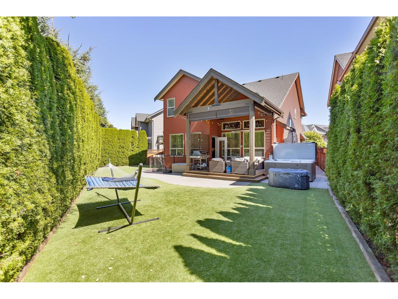 A stunning RAB home in Yorkson South. The great room offers a bright open space with oversized windows and double-height ceilings, a gourmet kitchen, granite counters and rich dark cabinetry. Dining area includes a built-in buffet/wine bar. Wired for surround sound and incl A/C for your comfort. Upstairs are four large bedrooms with a spa-inspired ensuite and walk-in closet. Downstairs has a rec room, exercise area, and an additional unfinished 500 sq ft for a potential mtg helper. The lot is one of the biggest in the neighborhood, featuring a large patio patio with a vaulted roof, chandelier, a built-in heater for year-round use and stamped concrete . As well as hot tub and low-maintenance turf, 12' privacy cedars w/ irrigation. Minutes from parks, schools, shopping and hwy access (id:44393)